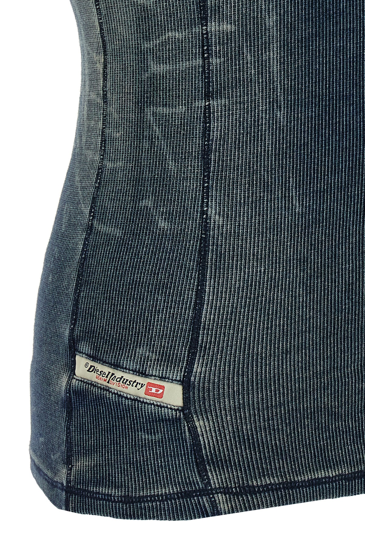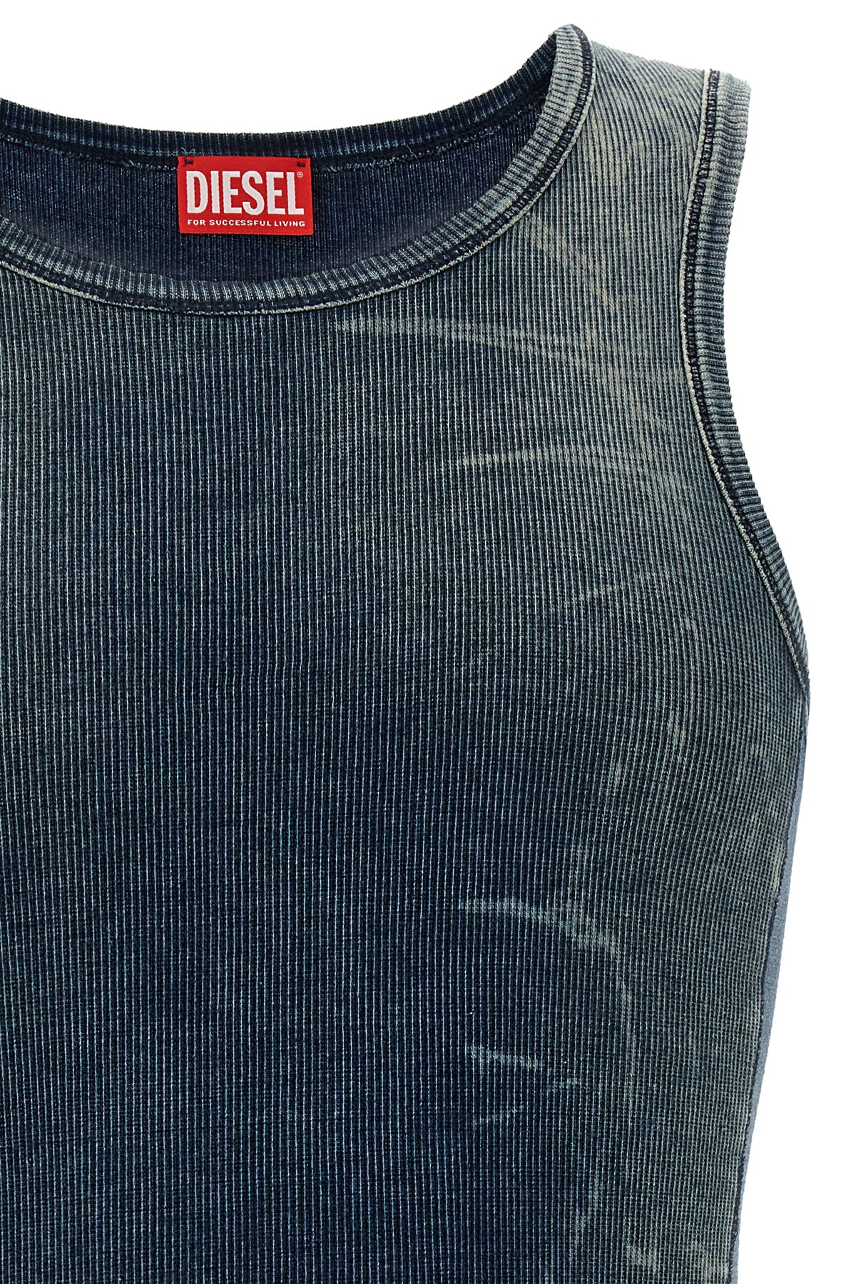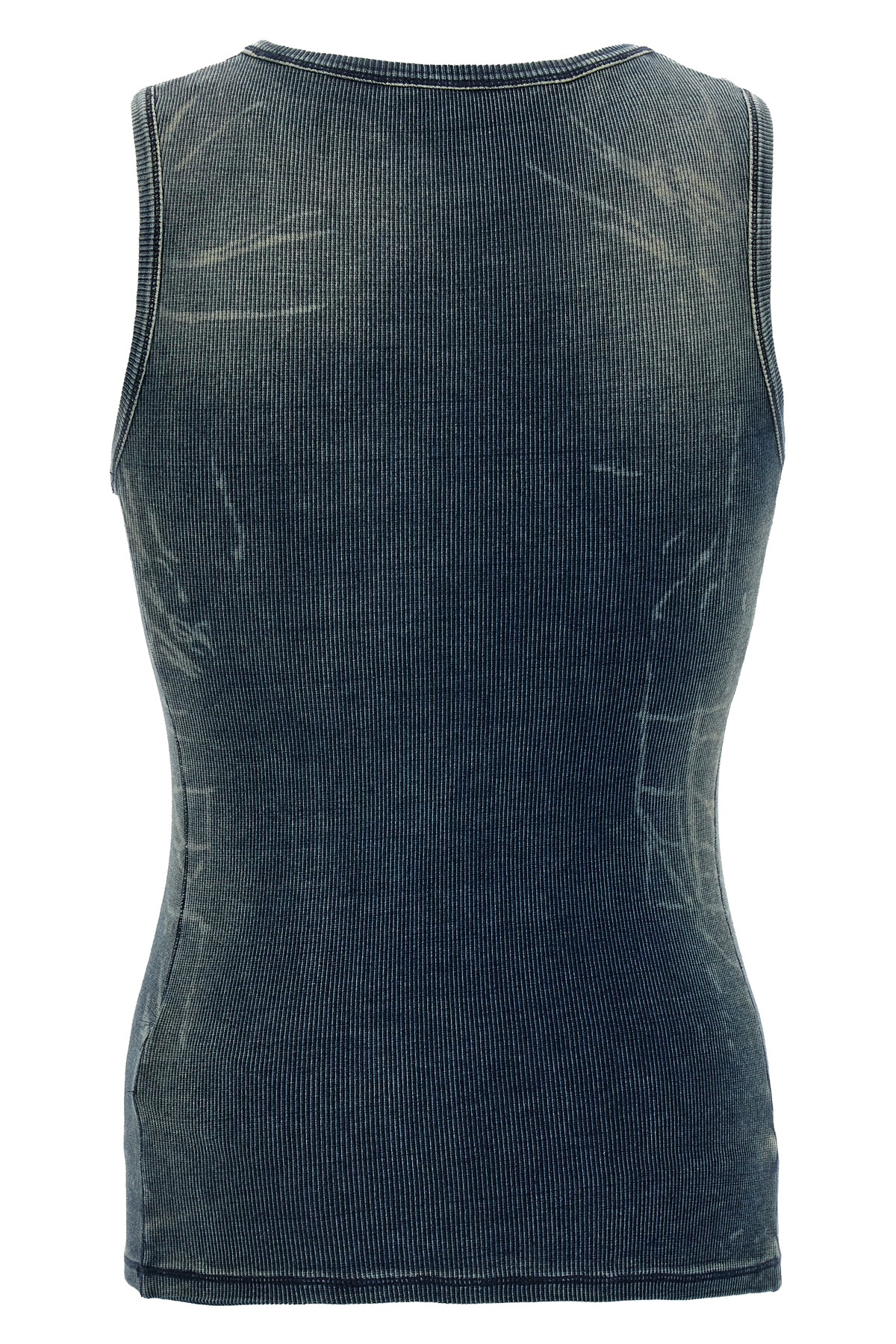 T-Go' tank top in ribbed indigo-dyed cotton jersey with trompe l'oeil denim and laser-print whiskering details and round neckline.