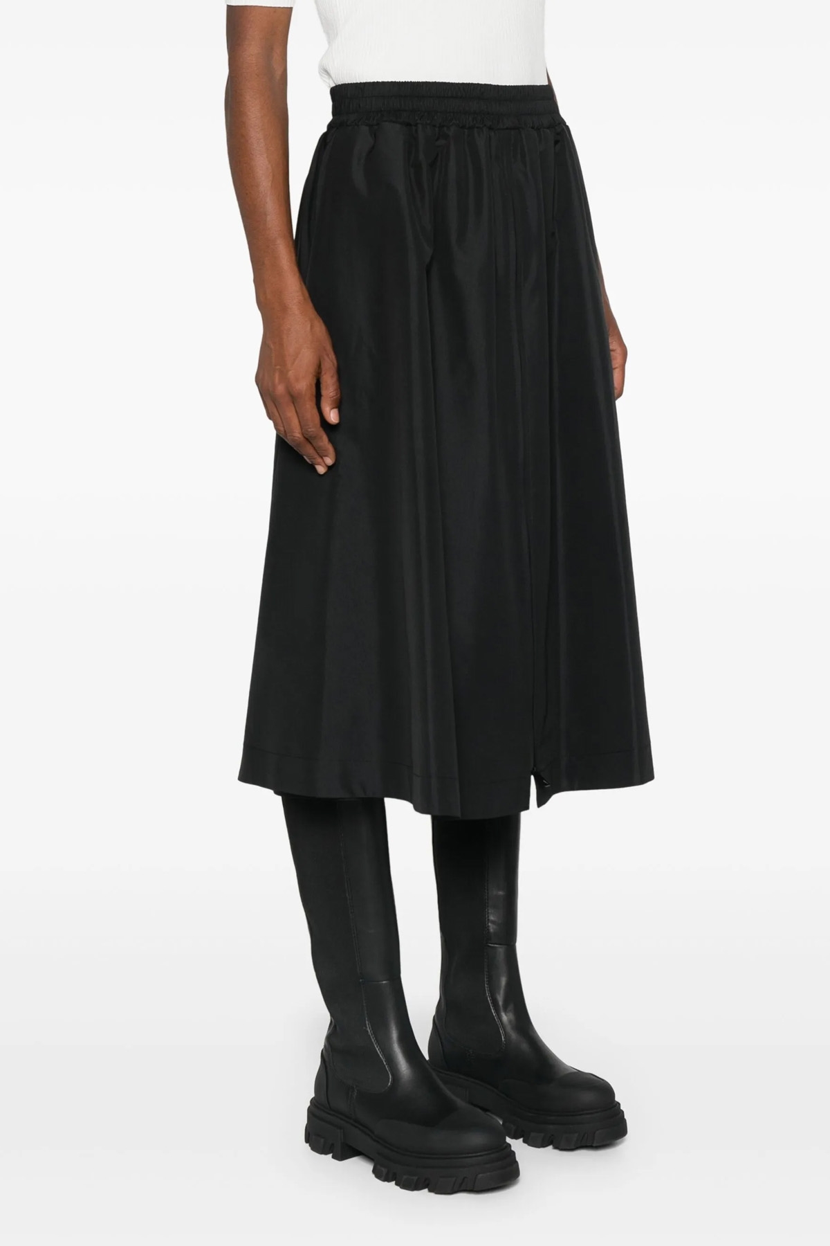 'Morena' midi skirt in technical nylon, Wheel model with front zip, elastic waistband, pockets.