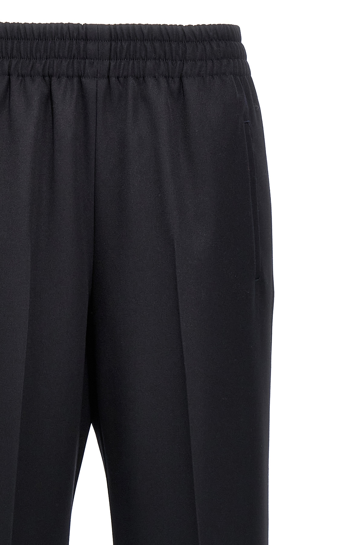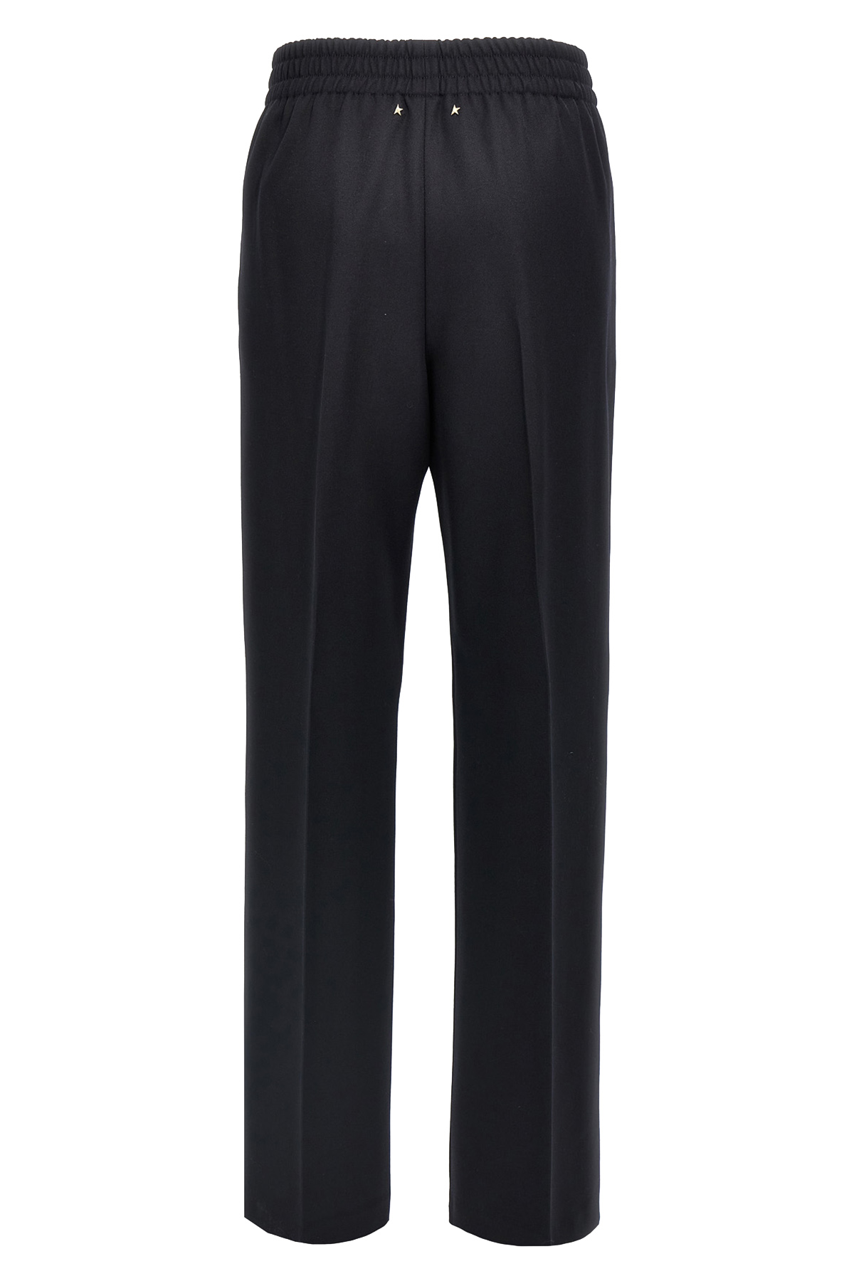 'Brittany' virgin wool blend trousers, wide straight leg, elastic waistband, pockets, stretched pleat. Coloring: dark midnight blue