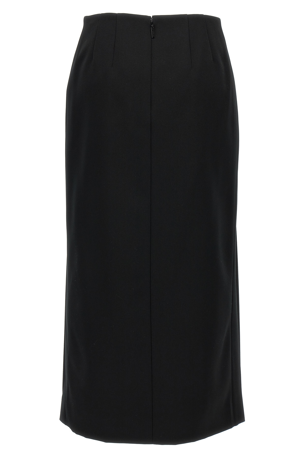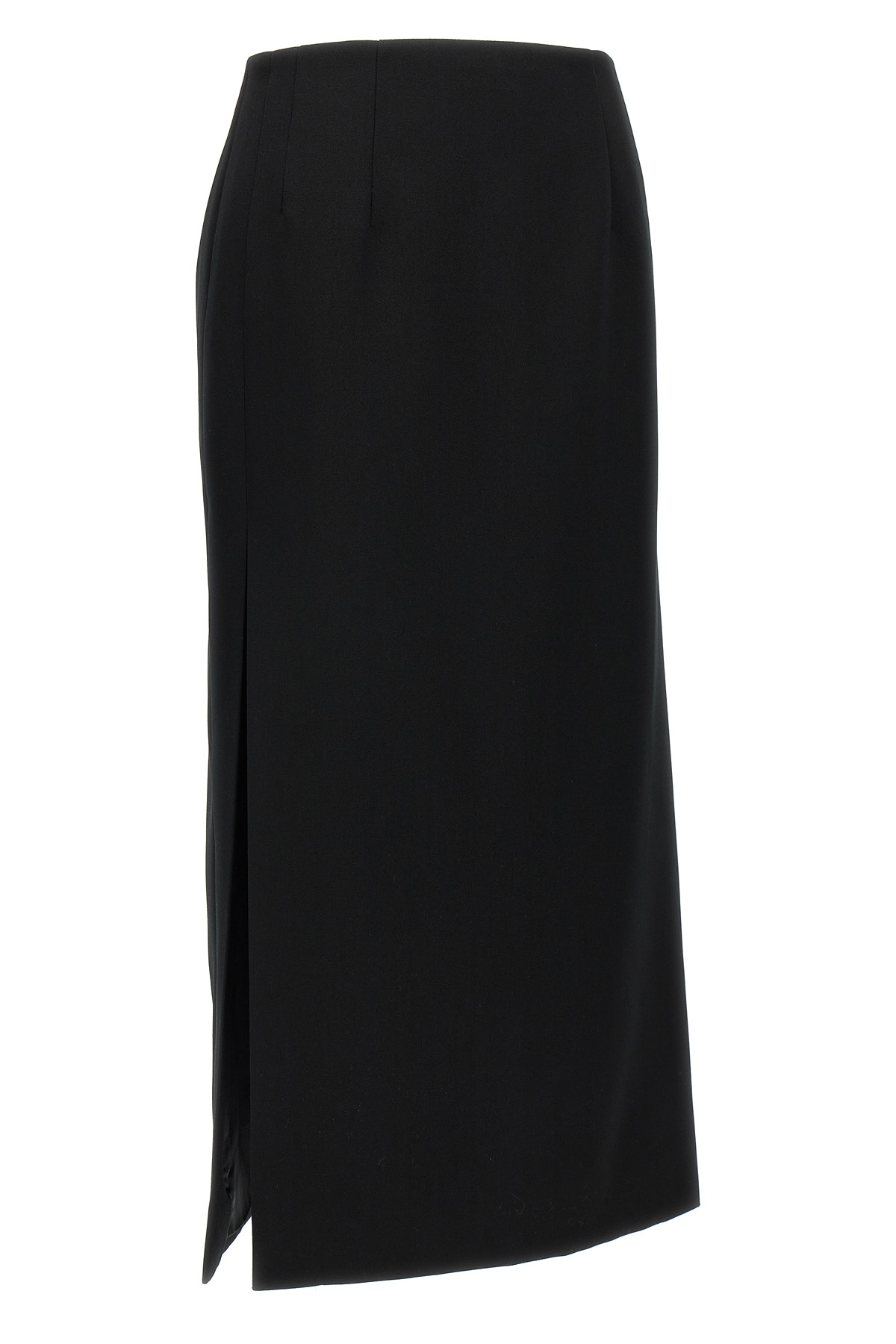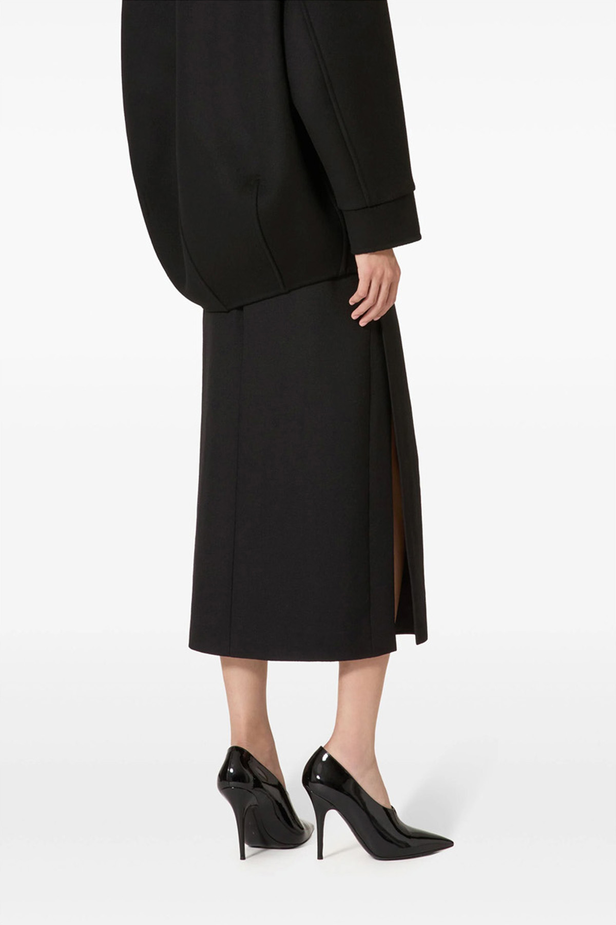 'Solid Grisaille' wool skirt, back zip closure, side slits.