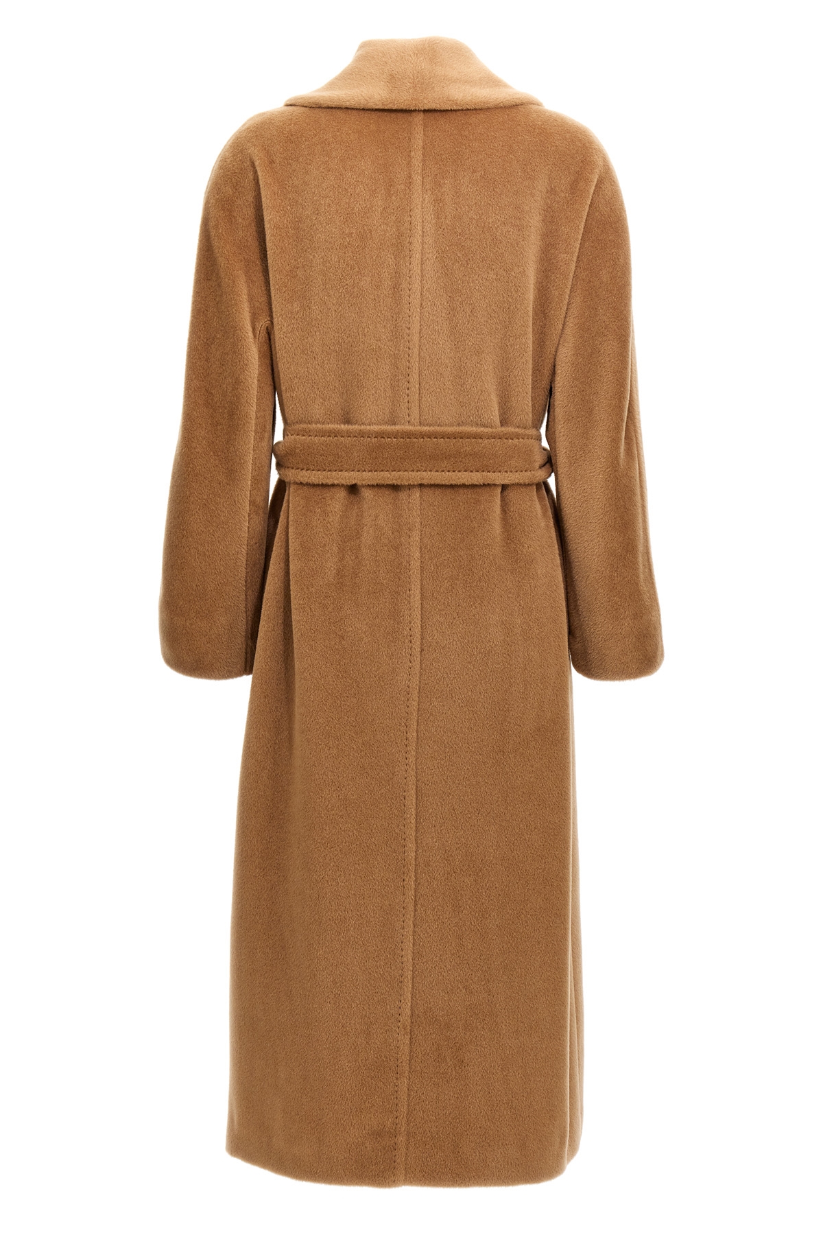 'Usa' coat in alpaca and wool blend with belt at the waist, pockets and long sleeves.