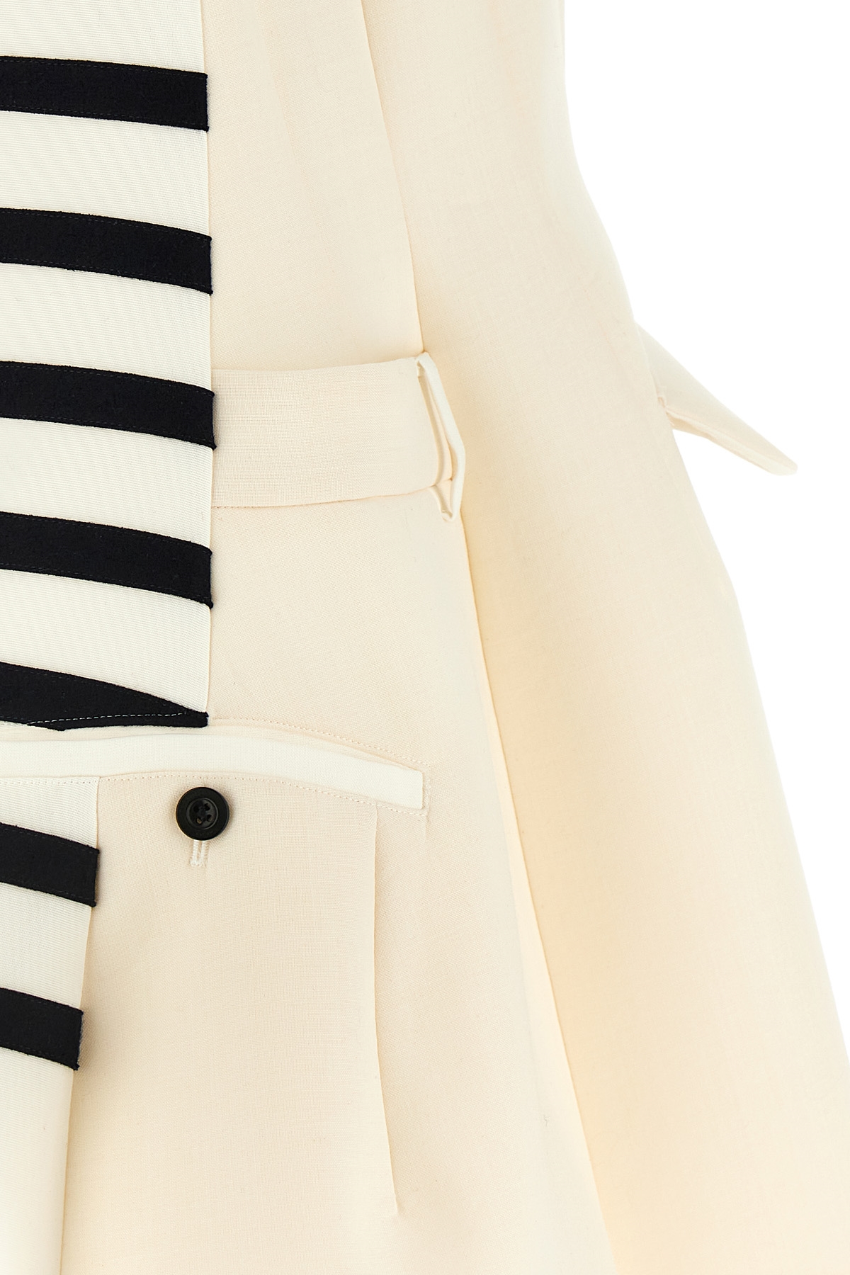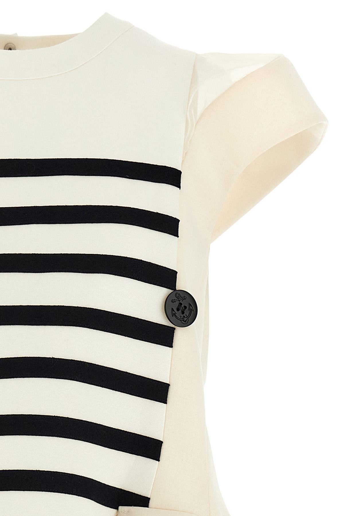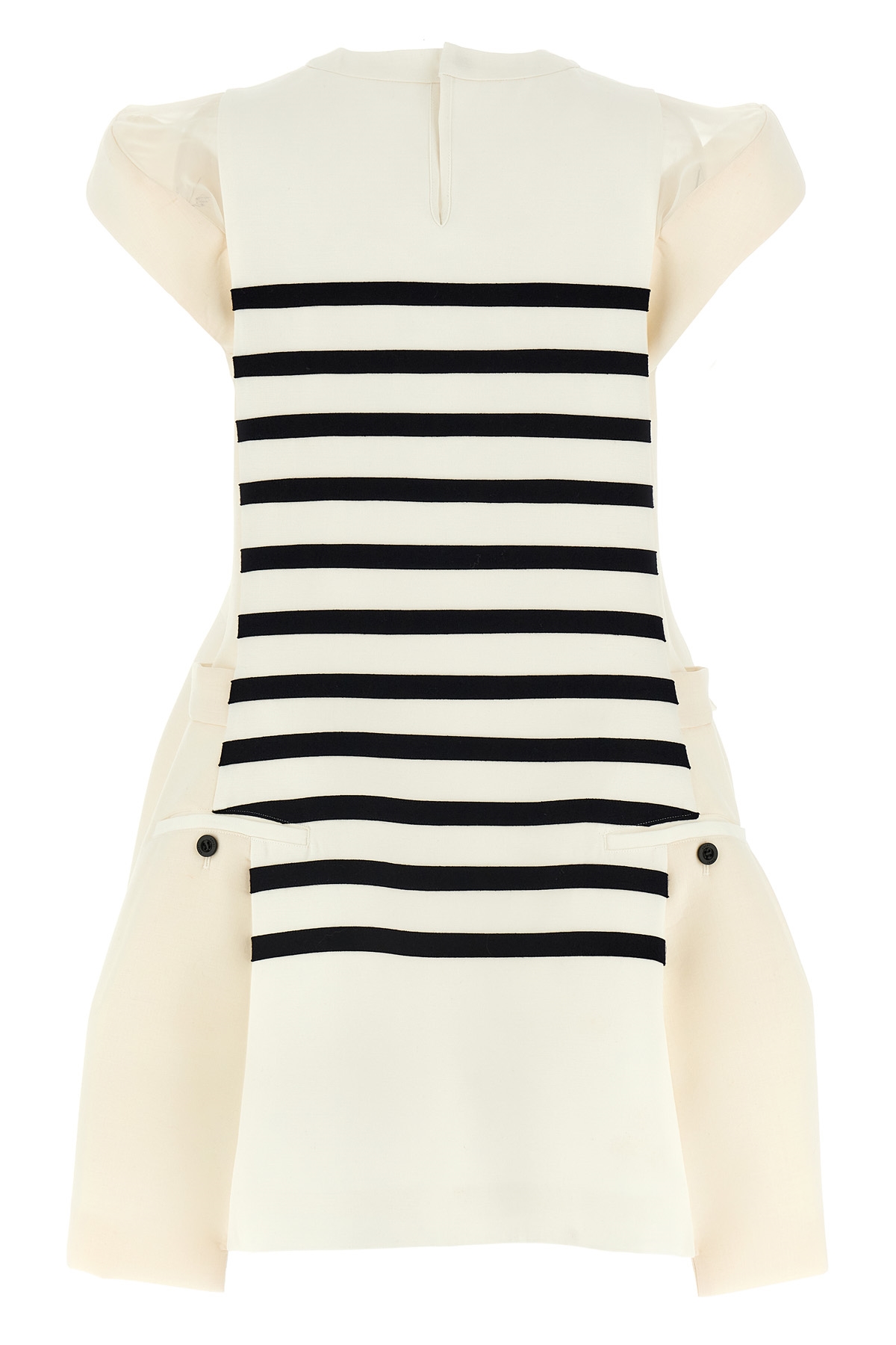 Mini dress in silk and cotton blend with contrasting details, asymmetrical structured model, short sleeves with organza insert, crew neck, front slits.