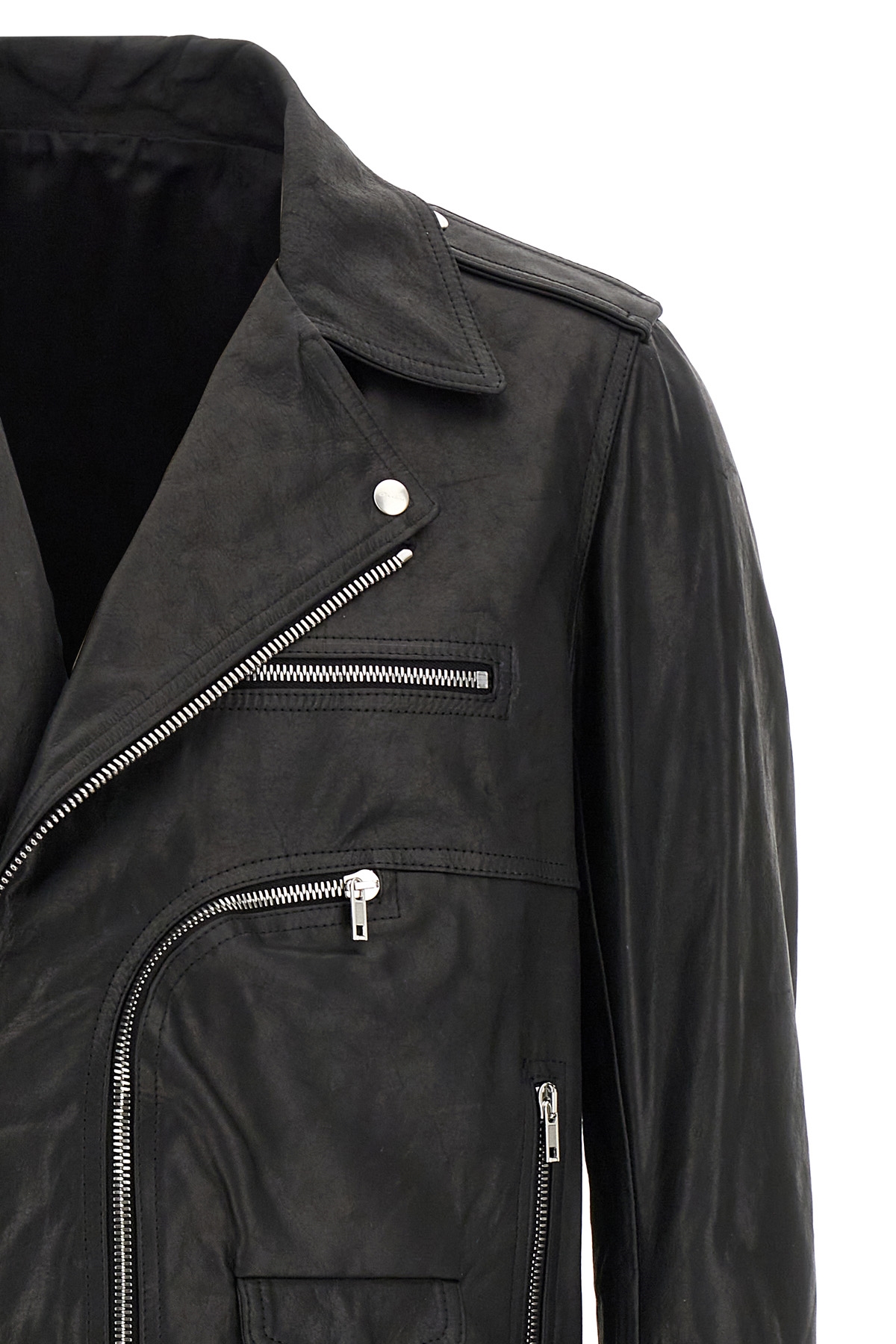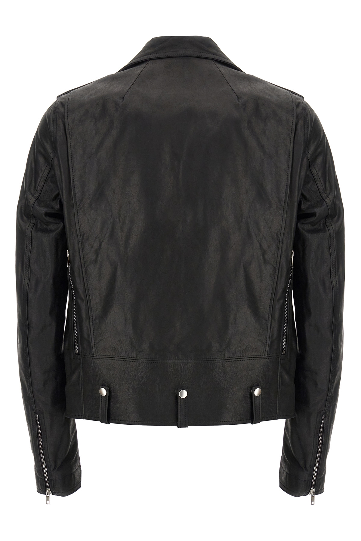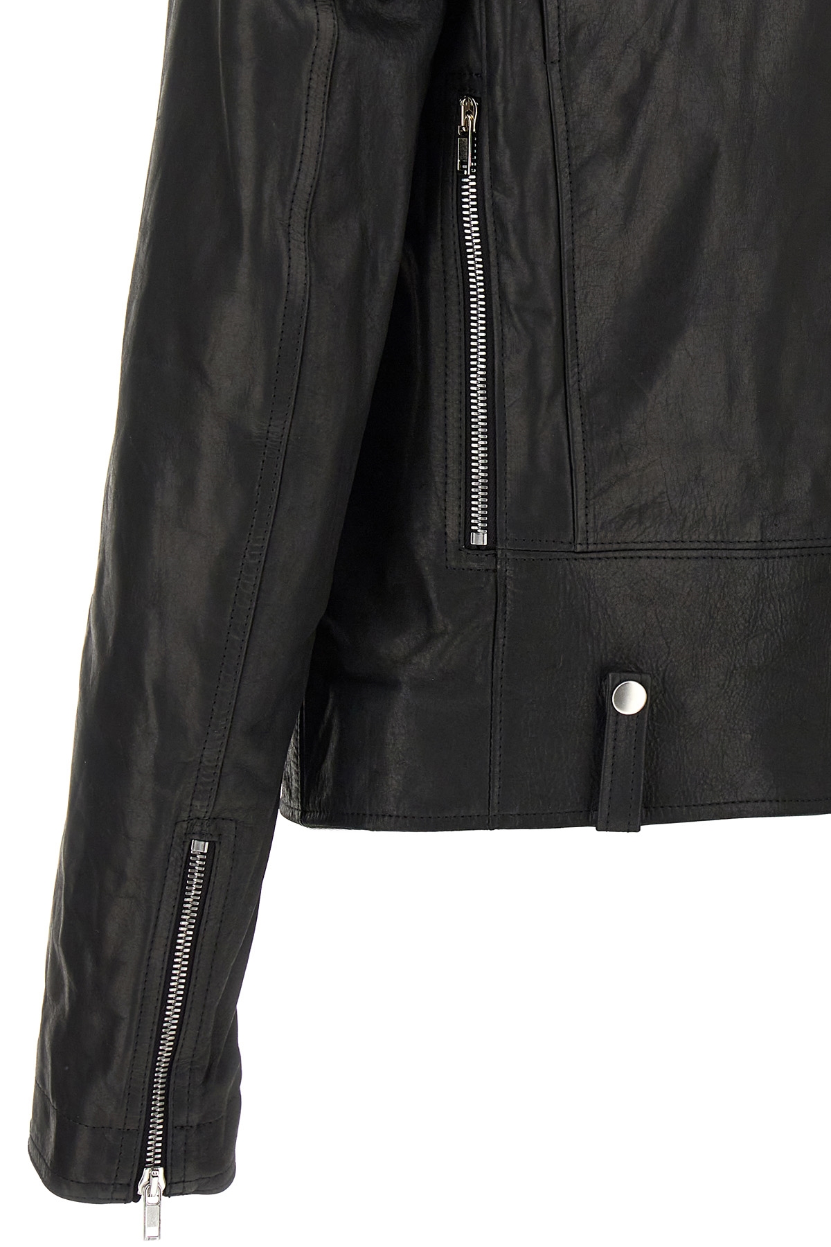 'Bauhaus Stooges' leather jacket with asymmetric front zip closure, pockets, long sleeves.
