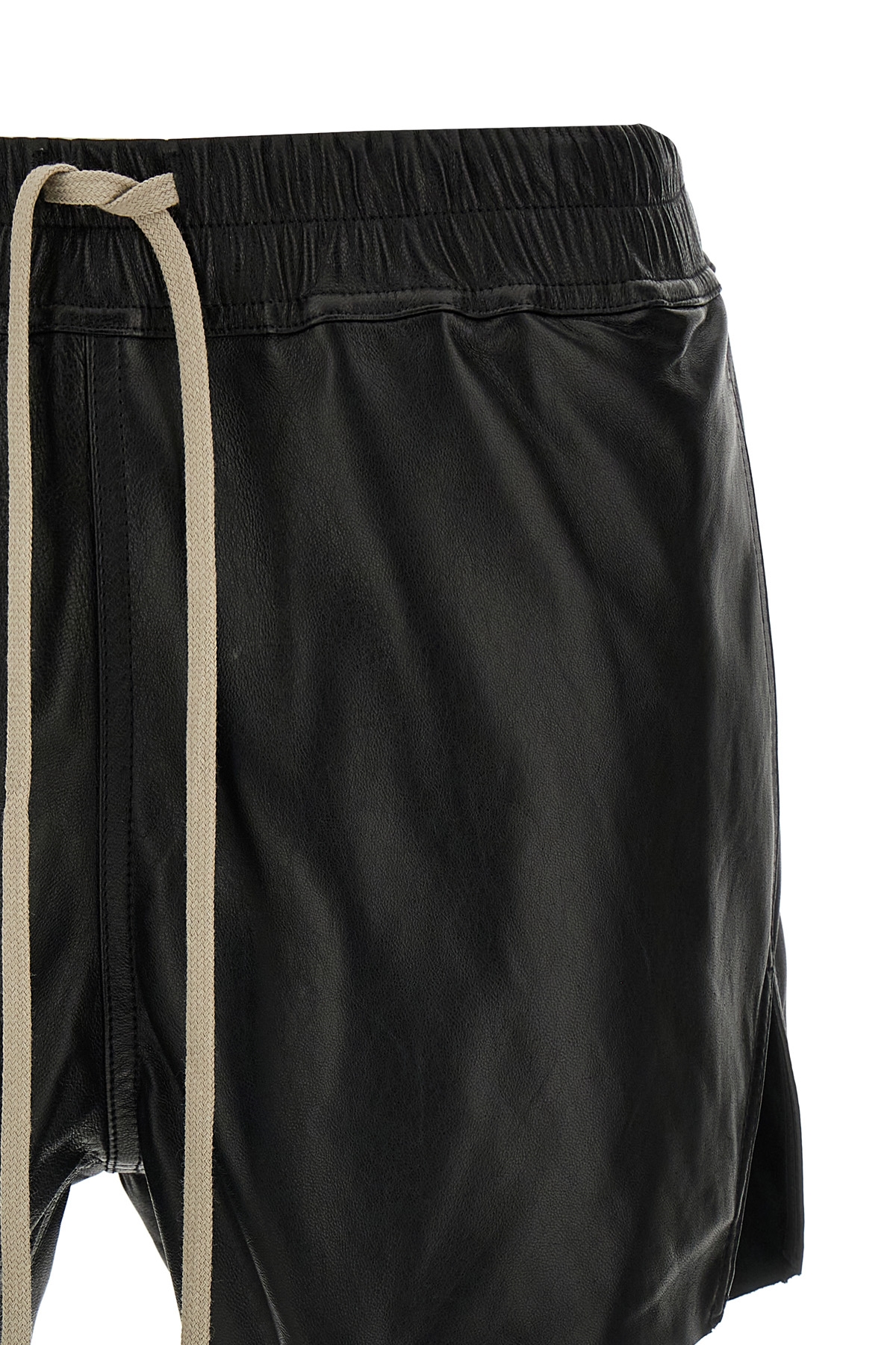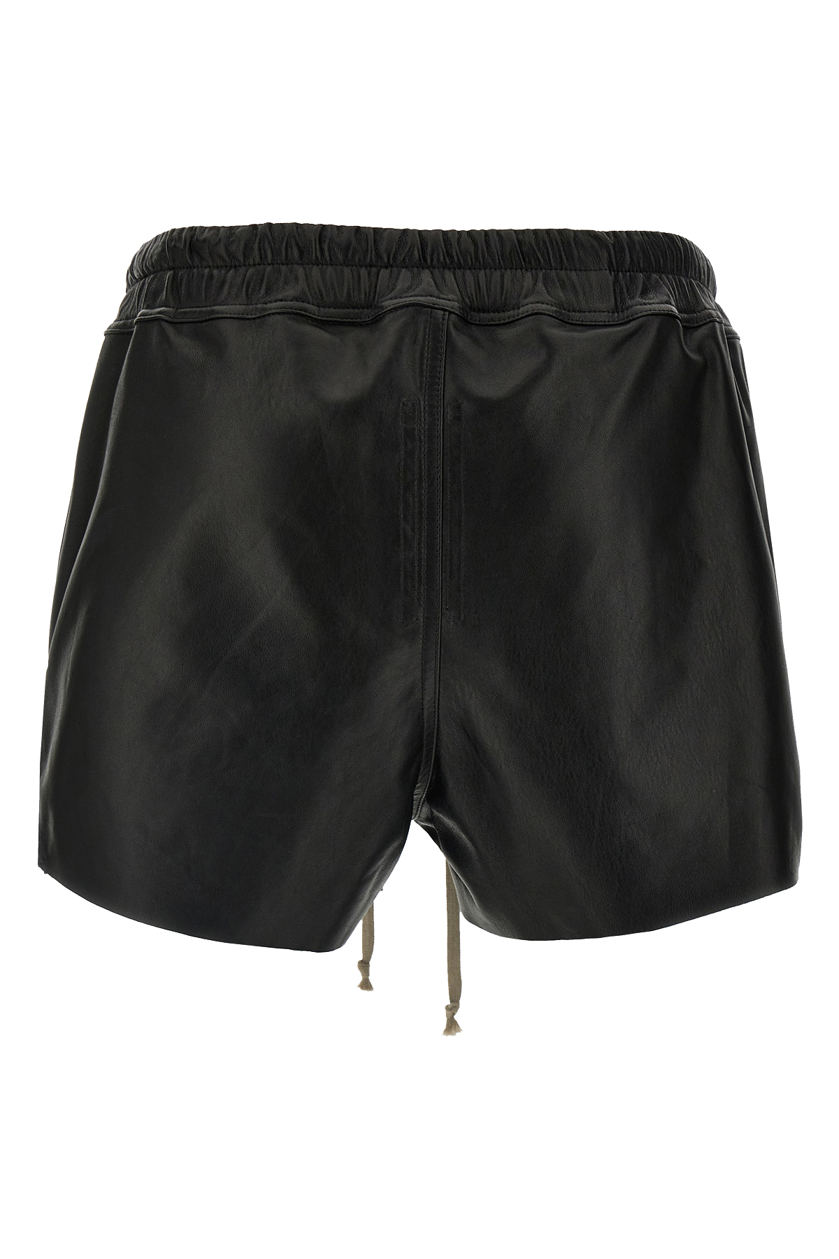 'Short Boxers' waxed lambskin shorts with slightly low crotch, asymmetrical leg with side splits, adjustable drawstring elastic at the waist, pockets.