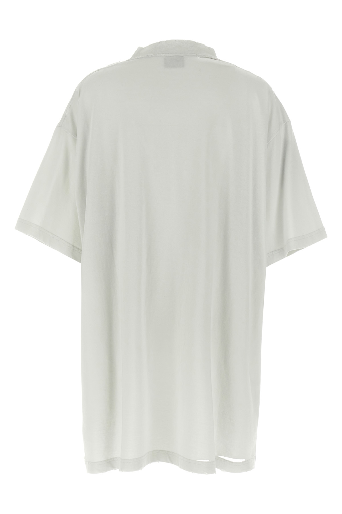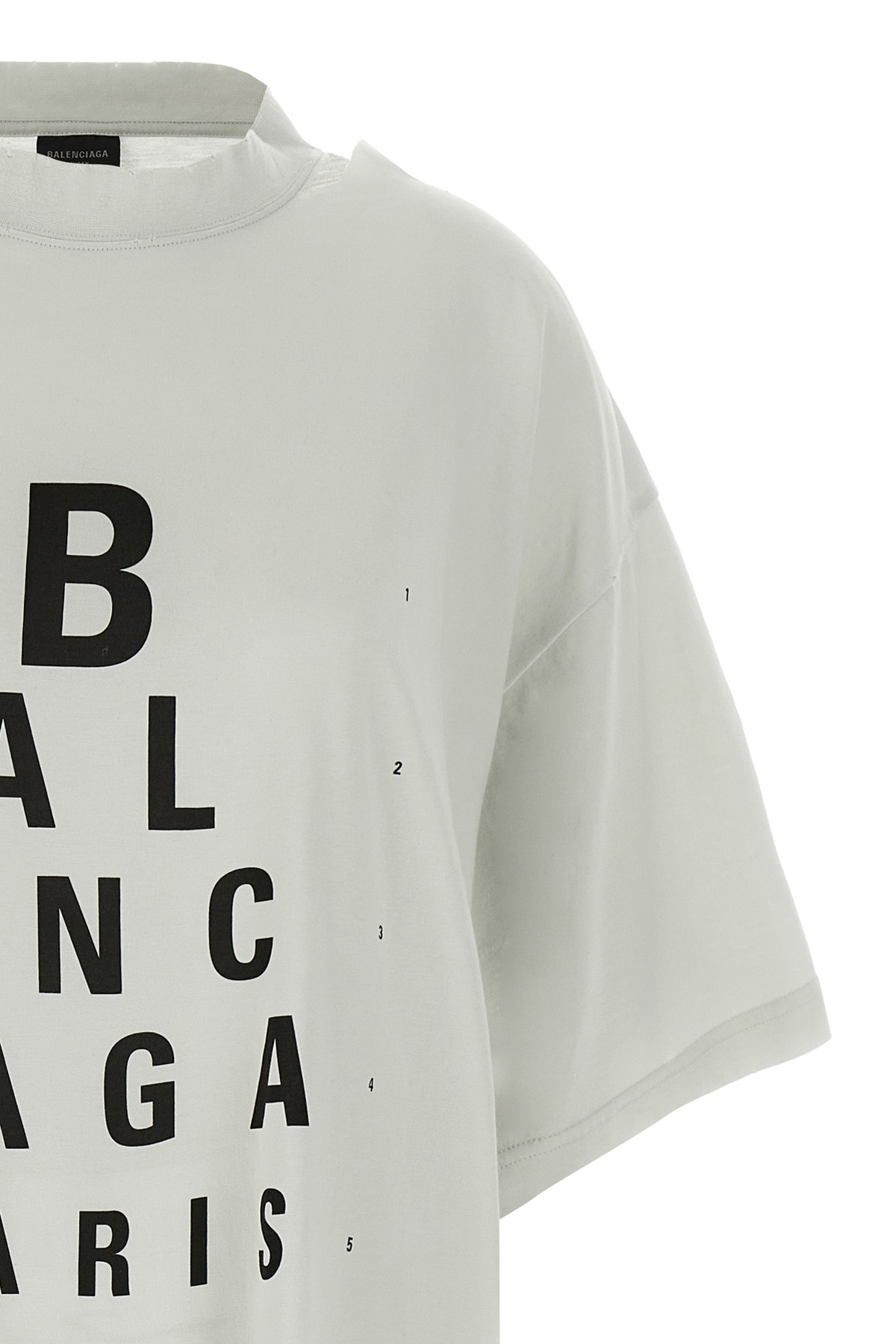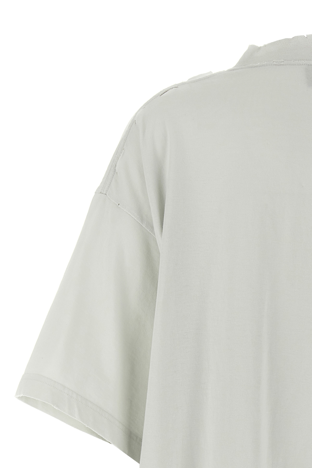 'Optical' used effect vintage tubular jersey t-shirt with rips, front print, crew neck, short sleeves.