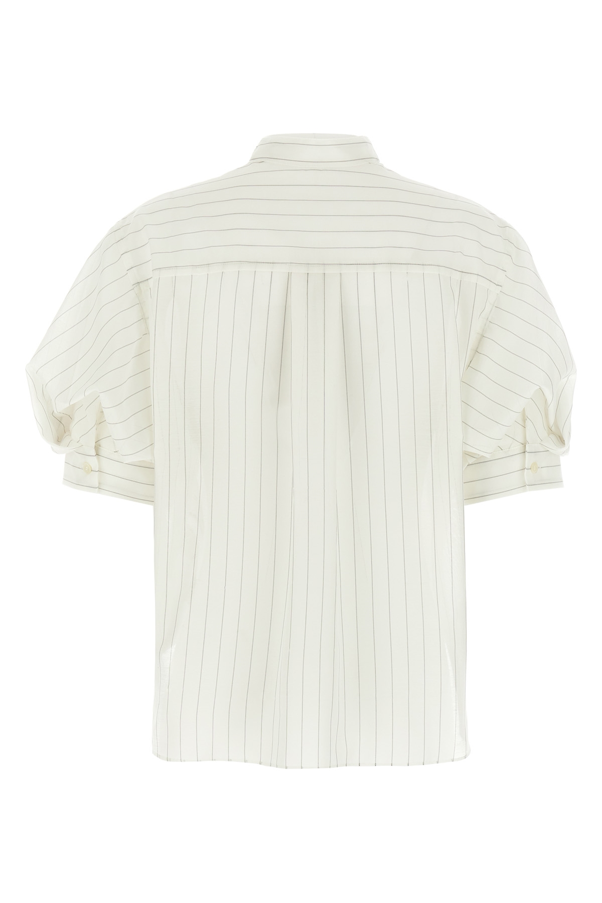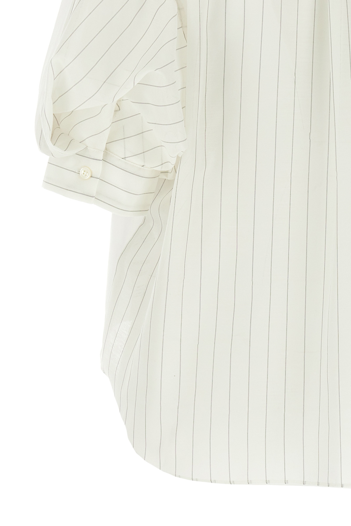 Solid color cotton jersey t-shirt with asymmetric pinstripe organza back panel, crew neck, chest pocket, balloon sleeves with cuff.
