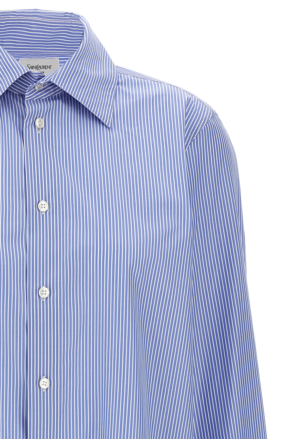 Striped cotton poplin shirt, front 'Cassandre' embroidery, front button closure, long cuffed sleeves.