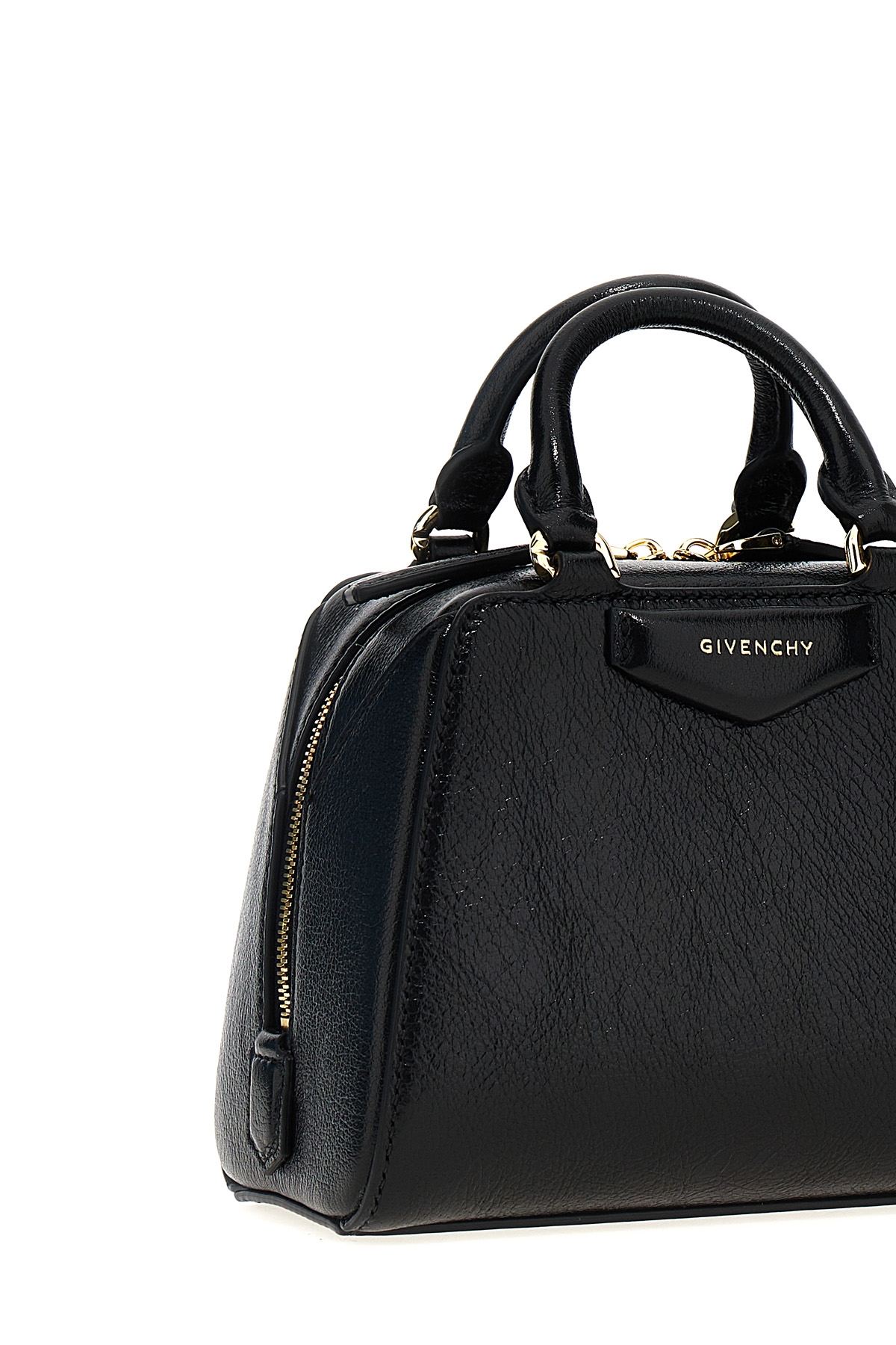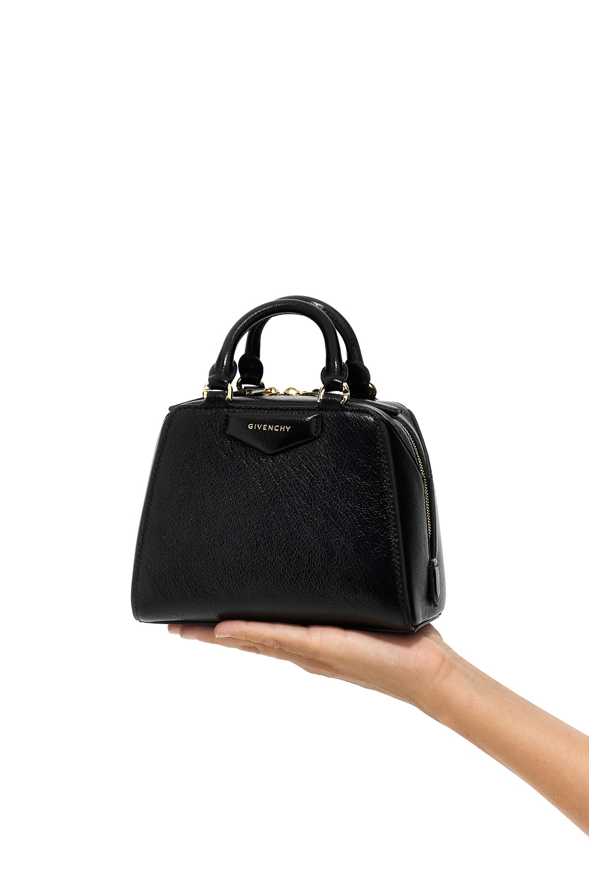 'Antigona Cube Nano' buffalo leather handbag with zip closure, double leather handle with metal details, adjustable and removable shoulder strap.