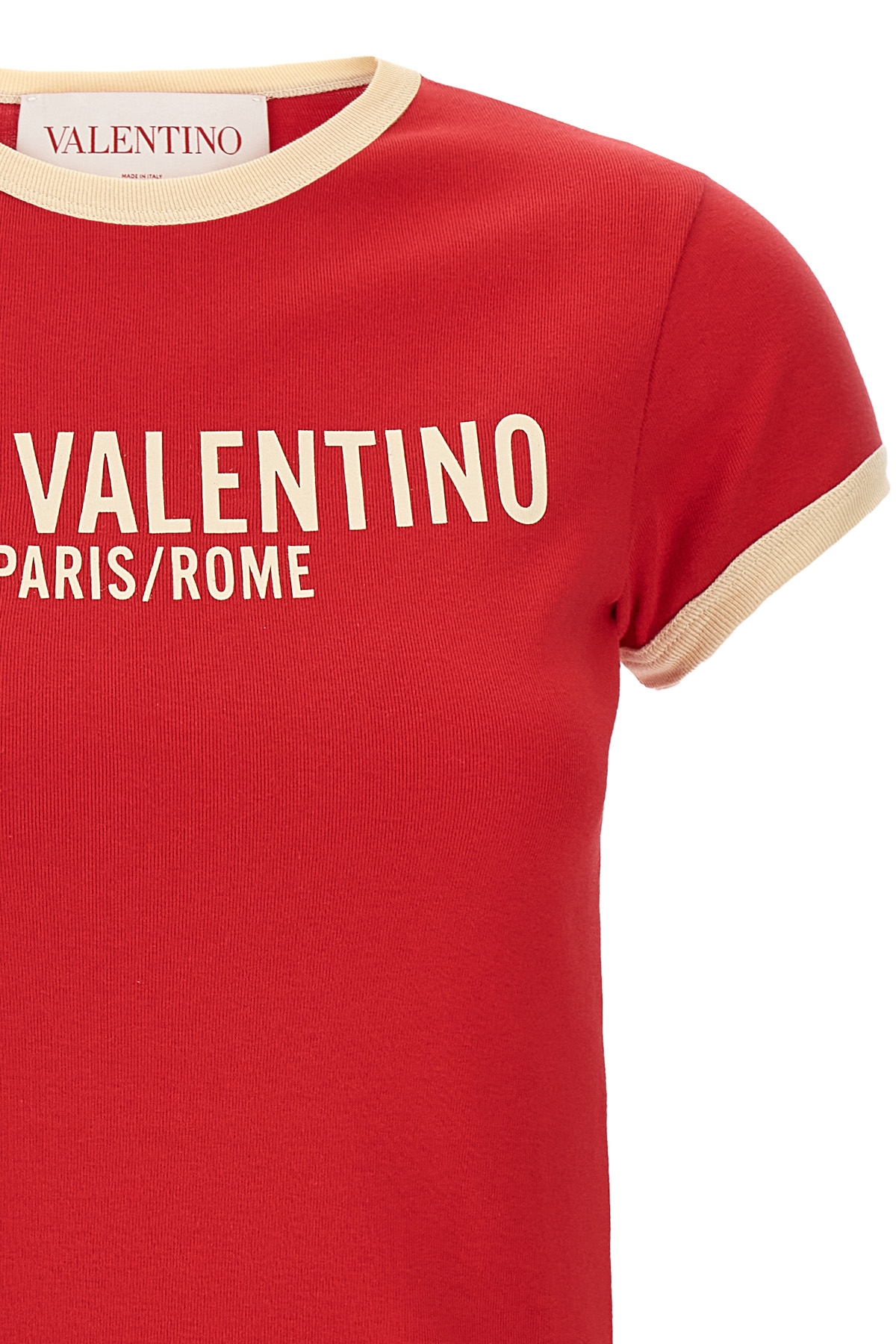 Cotton jersey T-shirt with contrasting details, front 'Chez Valentino' print, crew neck, and short sleeves.