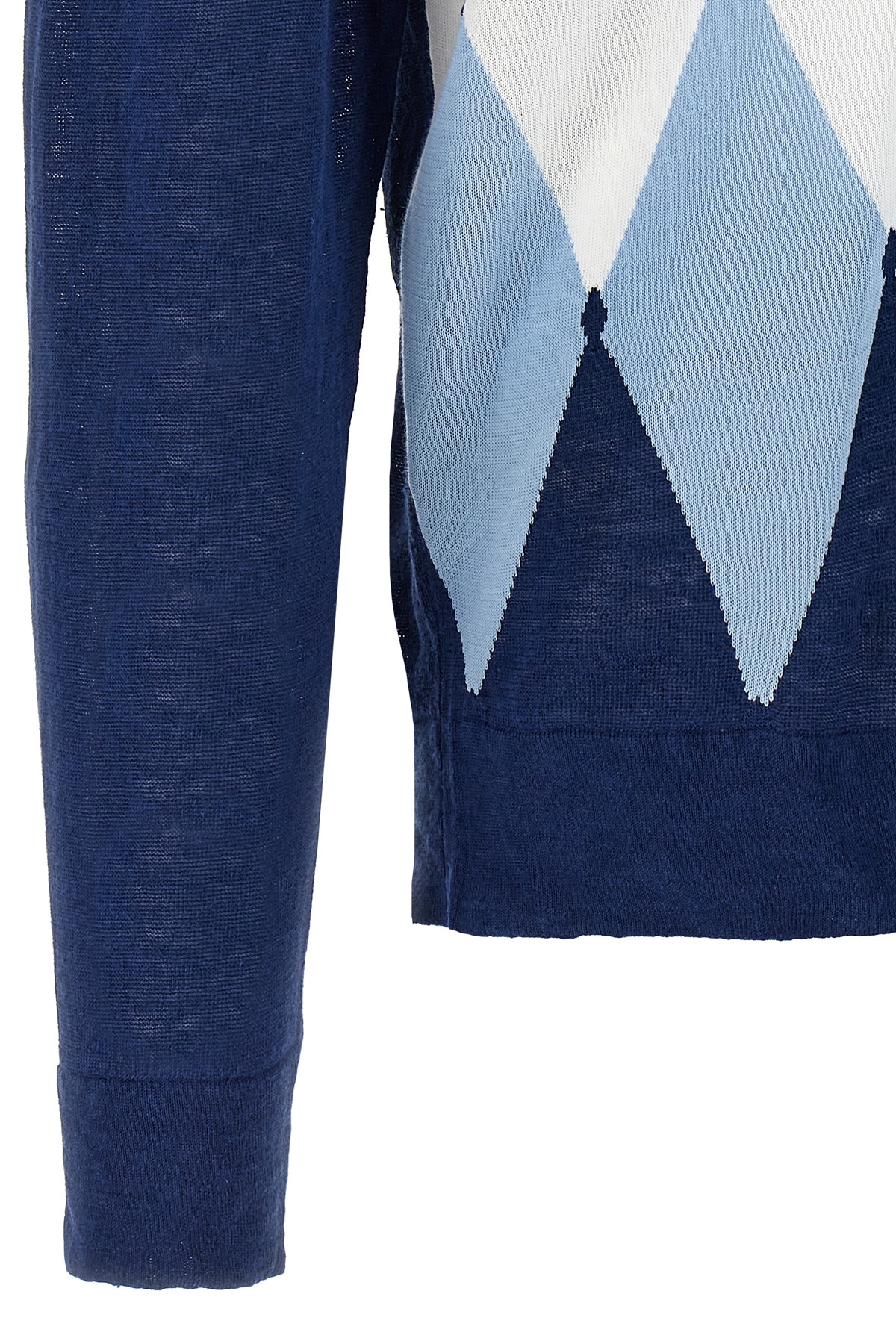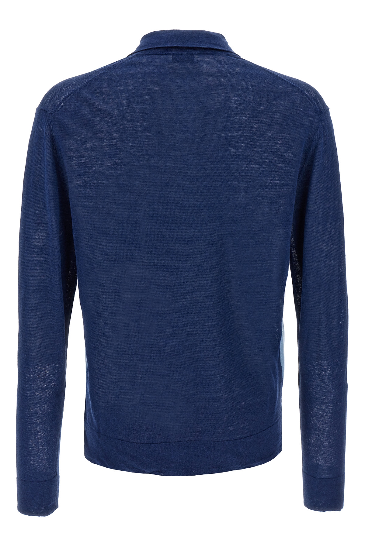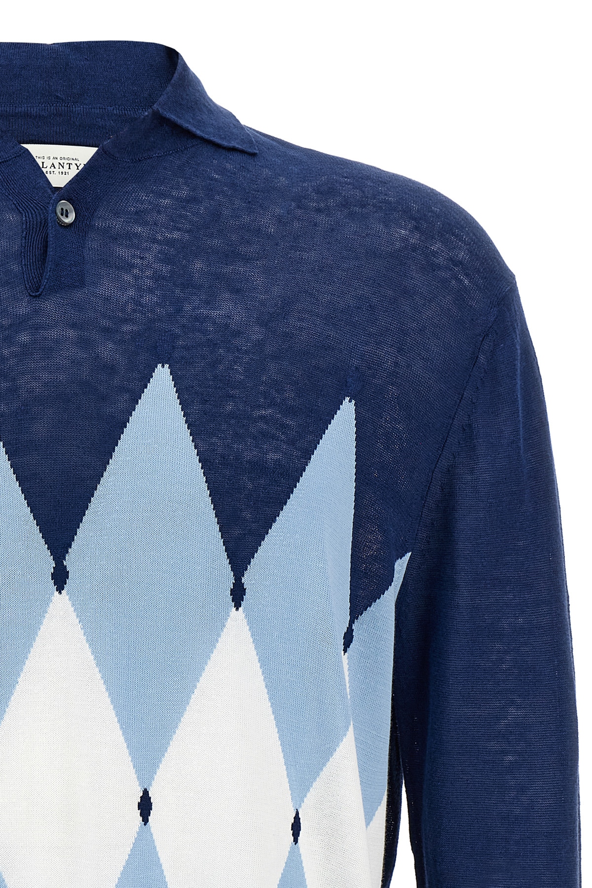 'Argyle' linen and cotton polo shirt with collar and buttons, long cuffed sleeves.
