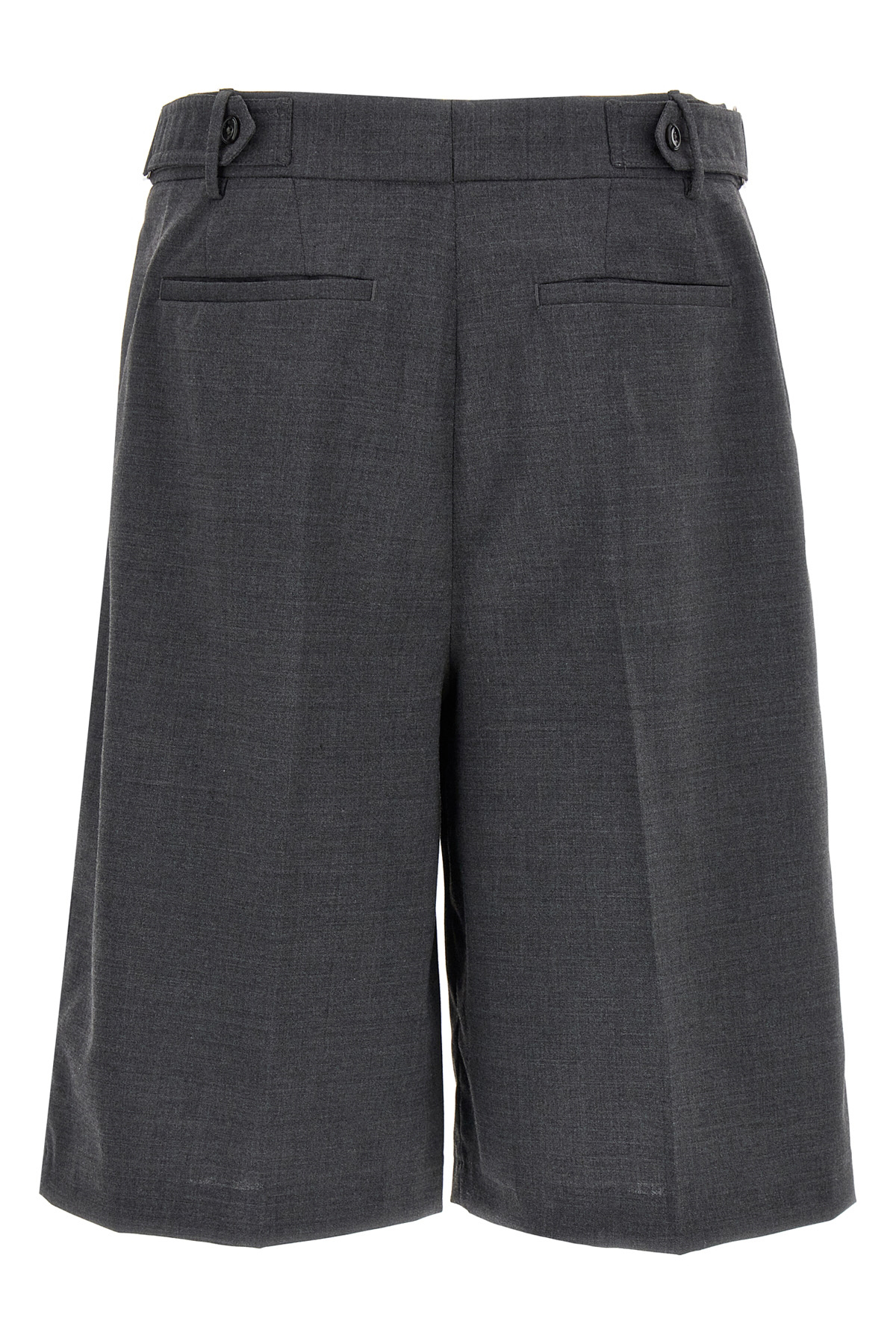Techno wool bermuda shorts, front button and hook closure, adjustable straps at the waist, pockets, ironed pleat, pleats.