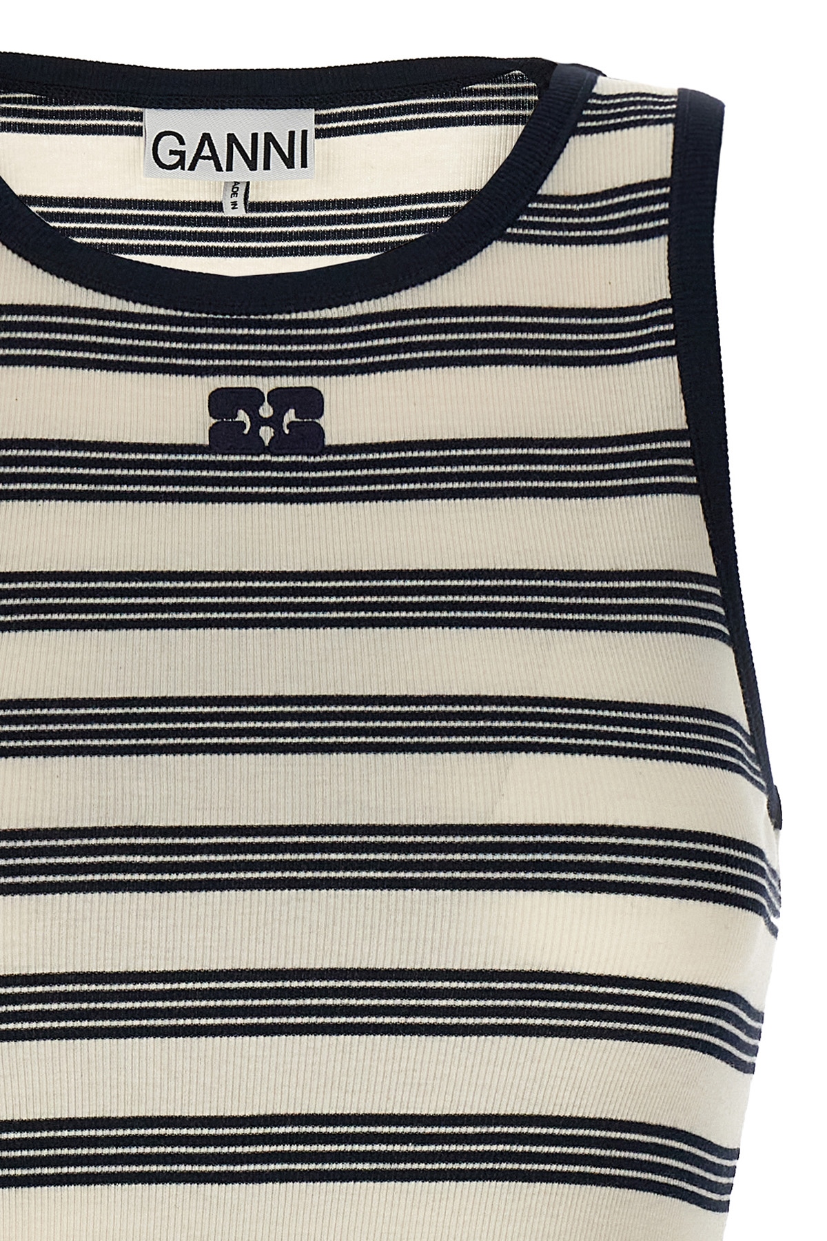 Stretch striped cotton tank top with front logo patch, crew neck. SUSTAINABLE: This product is made of organic cotton.