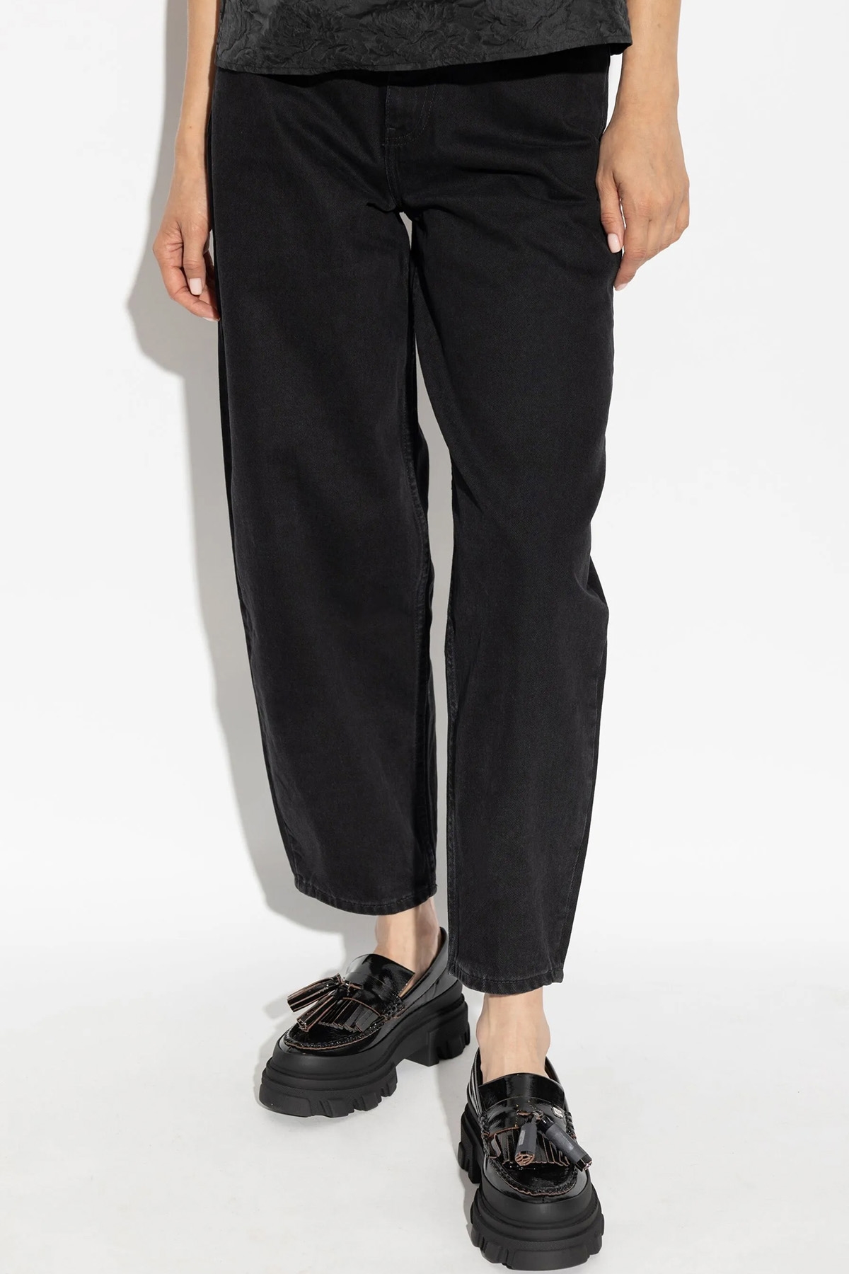 'Stary' cotton denim jeans, tight at the waist with curved leg silhouette and relaxed fit on the sides, back logo patch, front zip and button closure, five pockets. SUSTAINABLE: This product is made of organic cotton.
