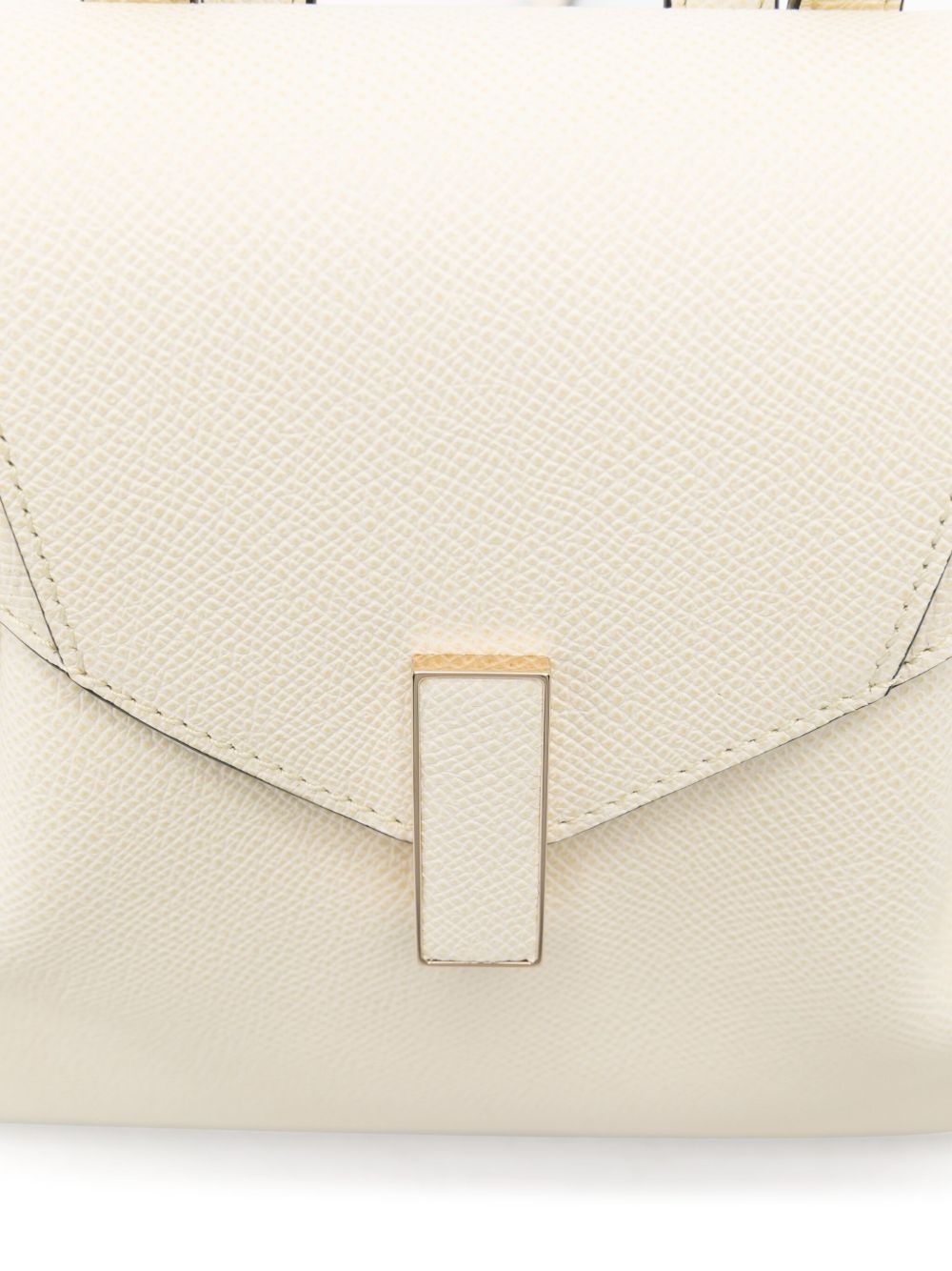 white foldover top with magnetic fastening single top handle two adjustable shoulder straps This piece comes complete with a protective dust bag.