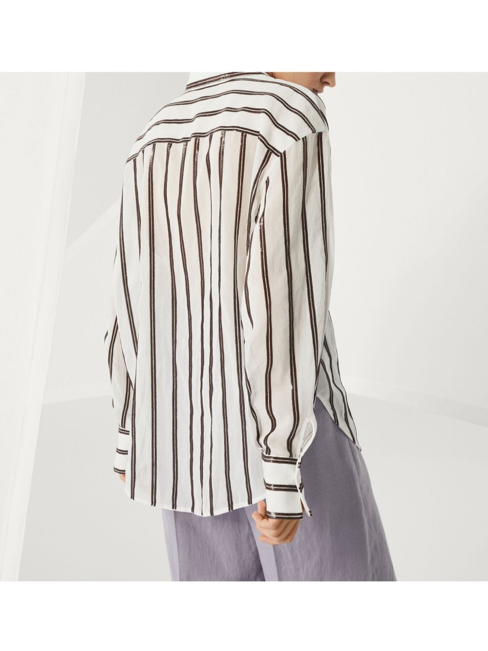 white front button fastening buttoned cuffs vertical stripe pattern classic collar