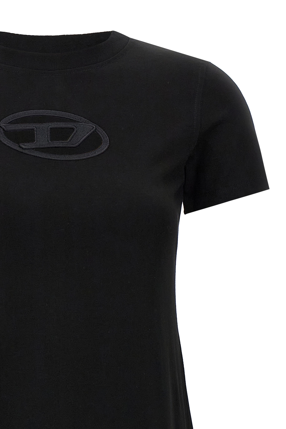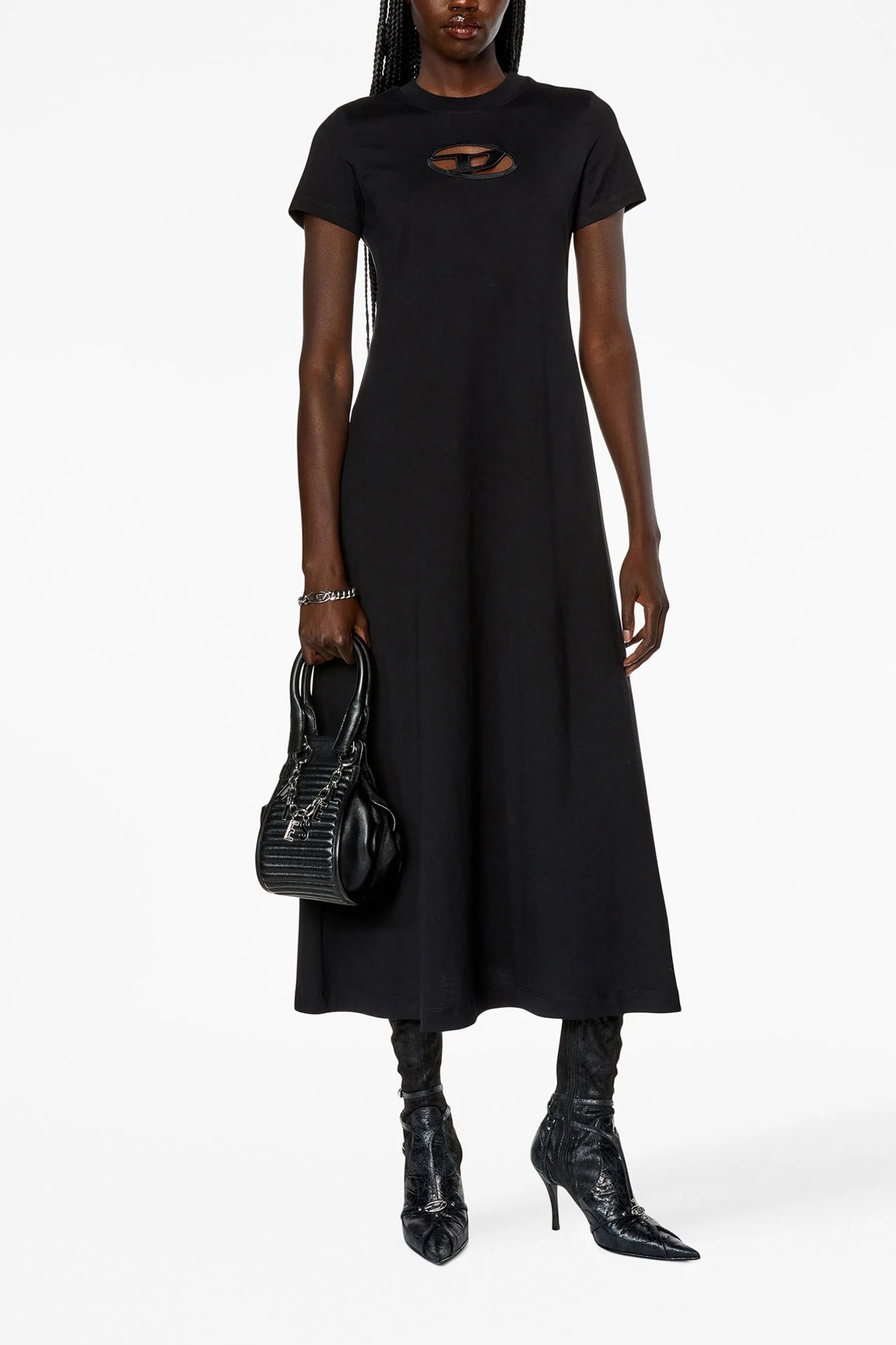 'D-Alin-Od' long dress in stretch cotton, front cut-out detail with Oval D logo, crew neck, short sleeves, wide skirt.
