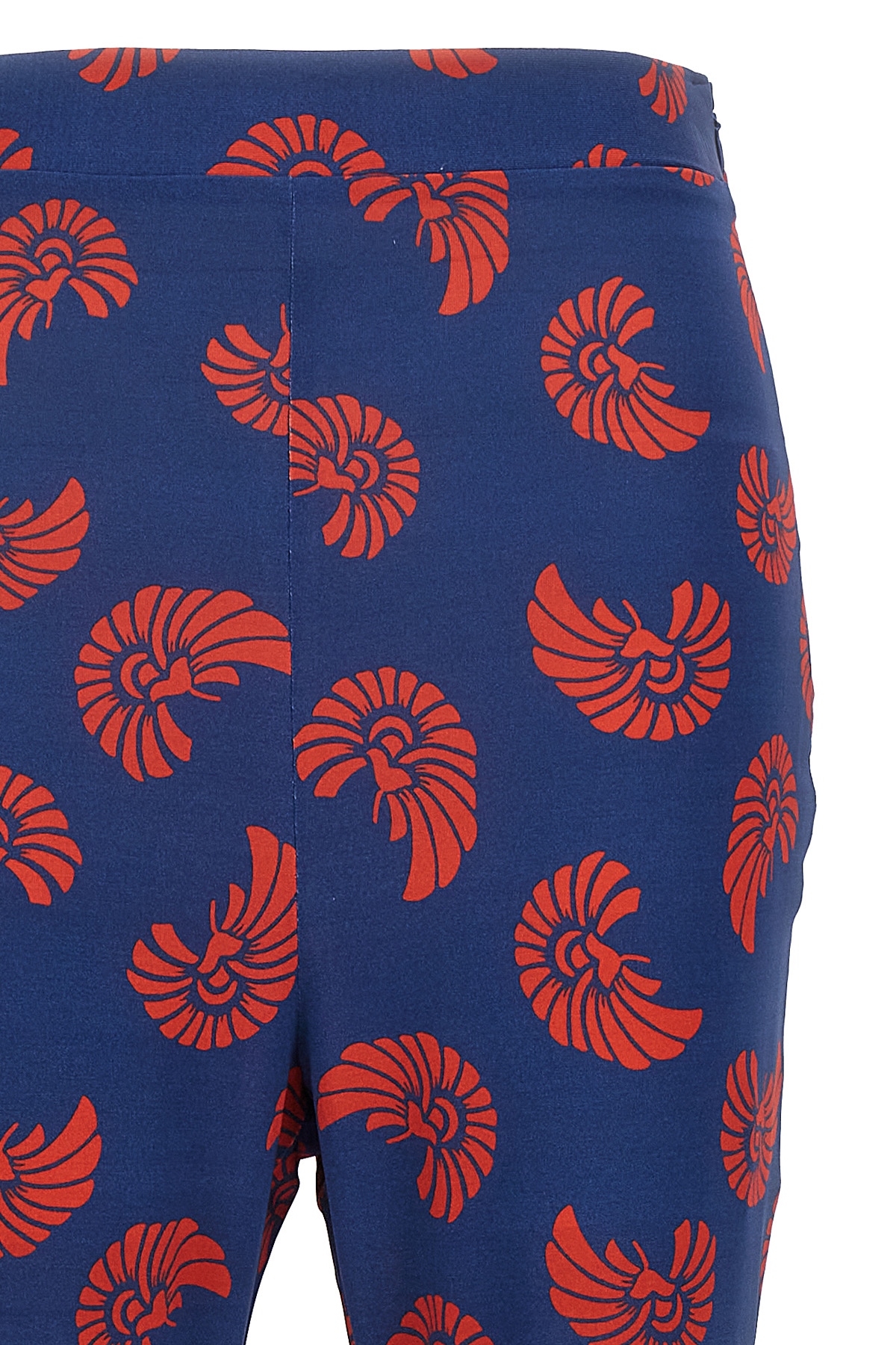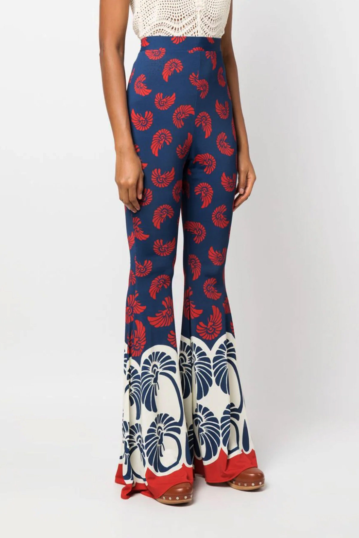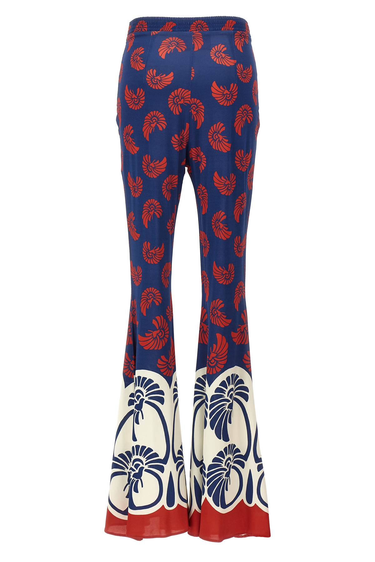 'Superflare' stretch jersey pants with patterned print, elastic waistband, side zip closure, flared leg.