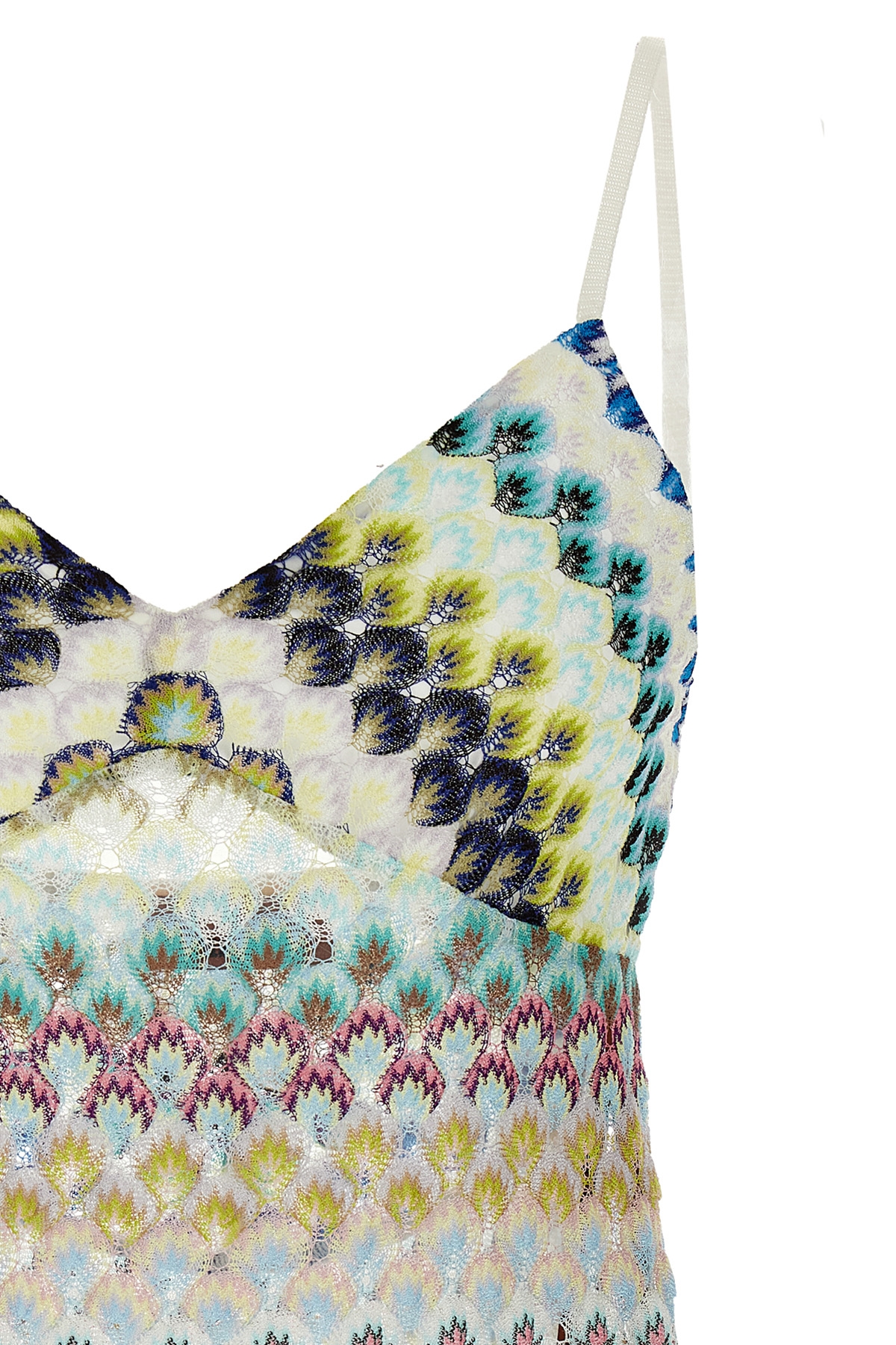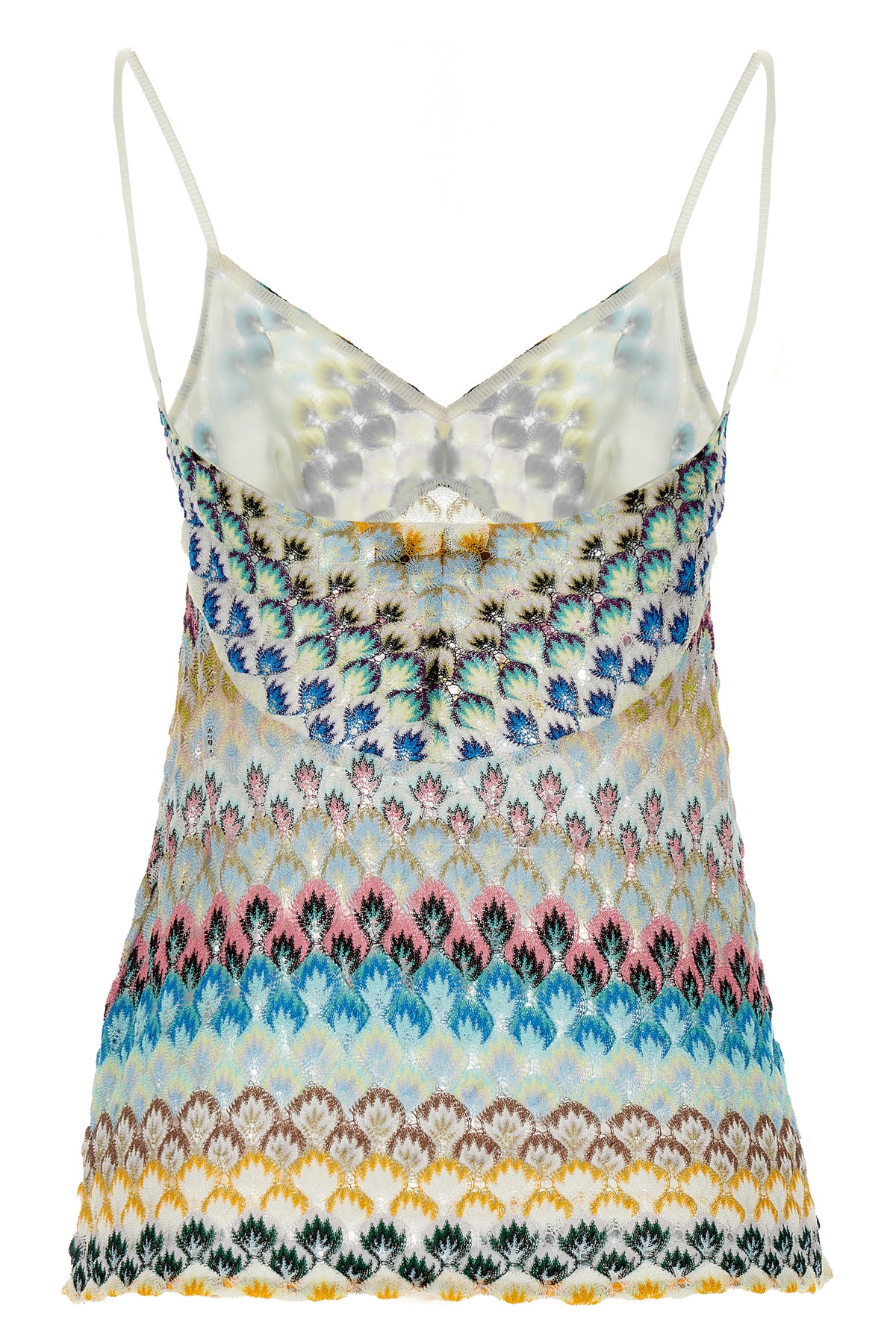 Semi-transparent degrade lace effect viscose knit top, V-neck, thin straps.
