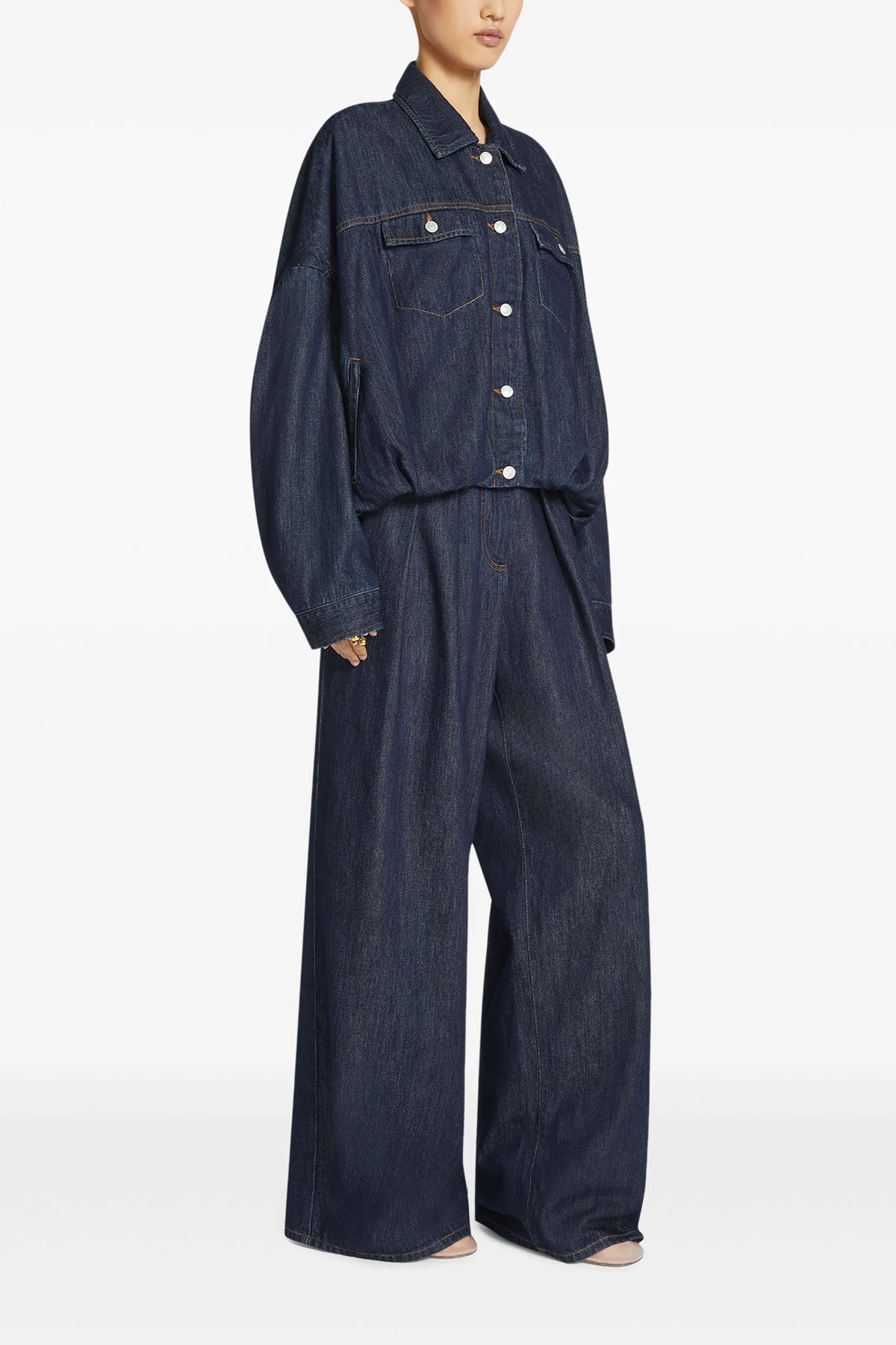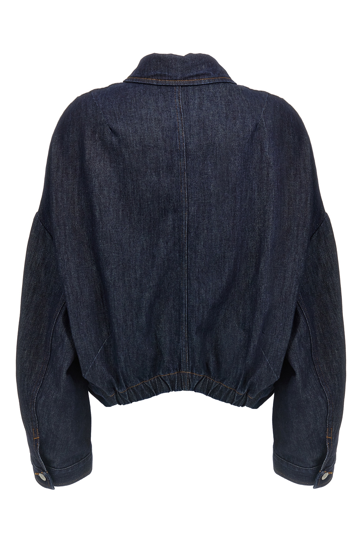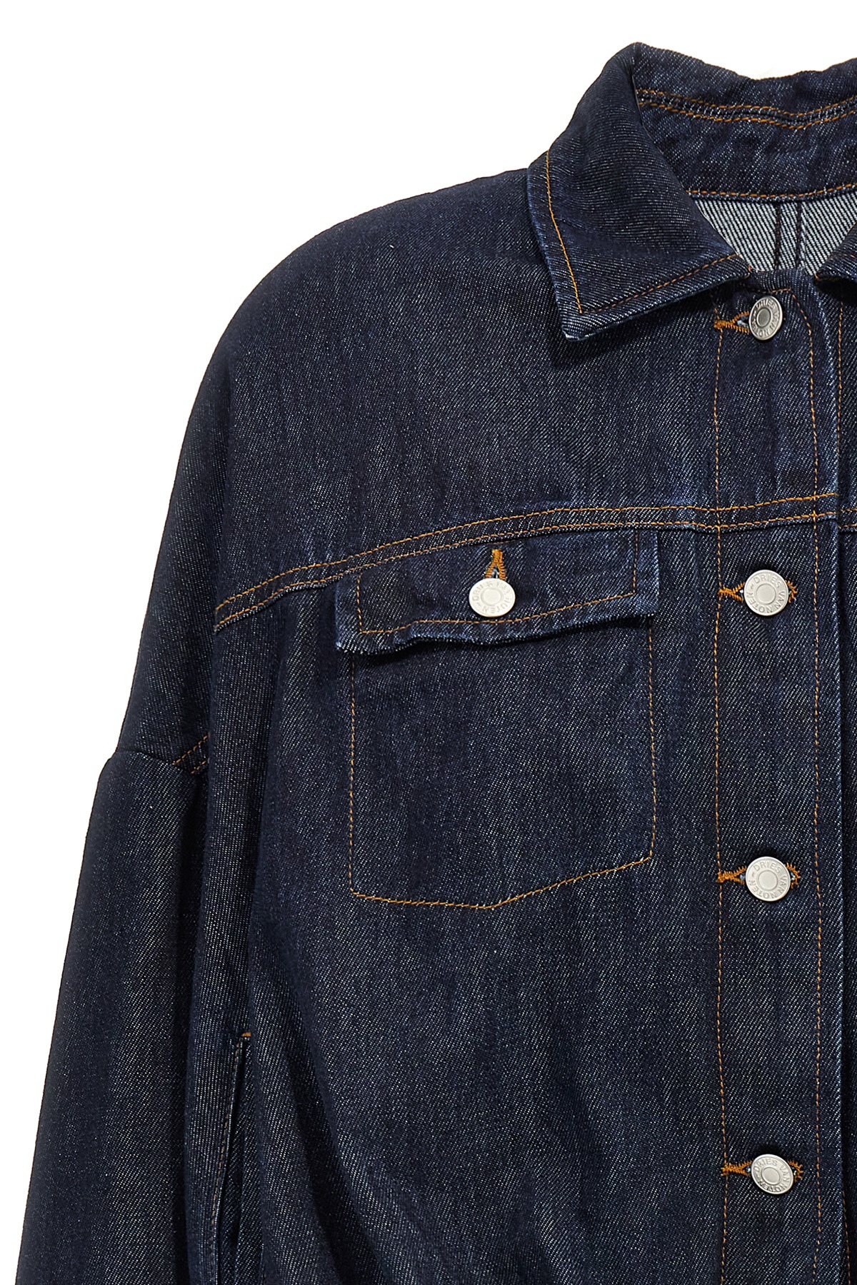 'Vesto' cotton denim jacket with contrast stitching, boxy model with rolled hem on the hem, shirt collar, front button closure, long sleeves with cuffs and dropped shoulder, elastic on the hem, pockets.