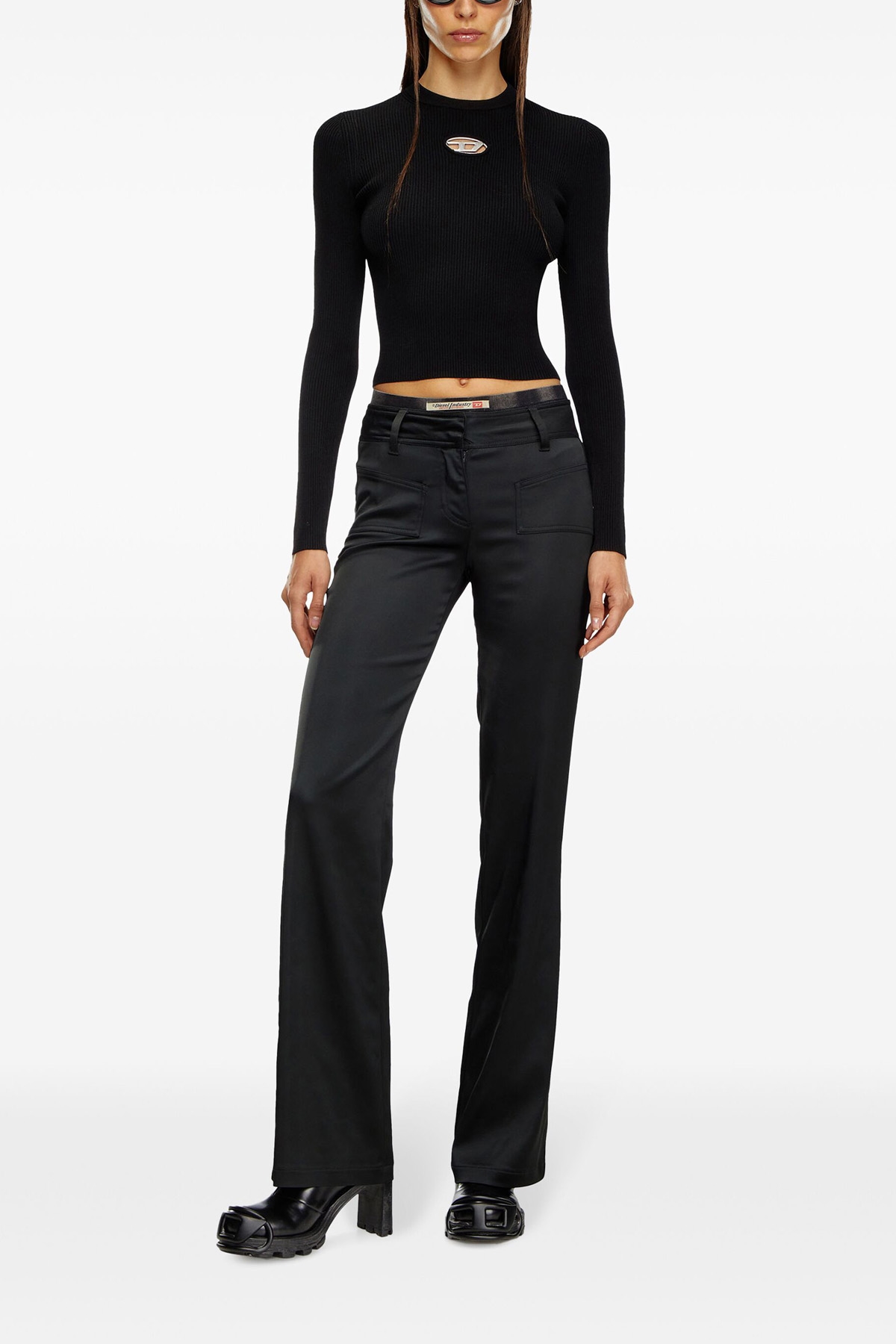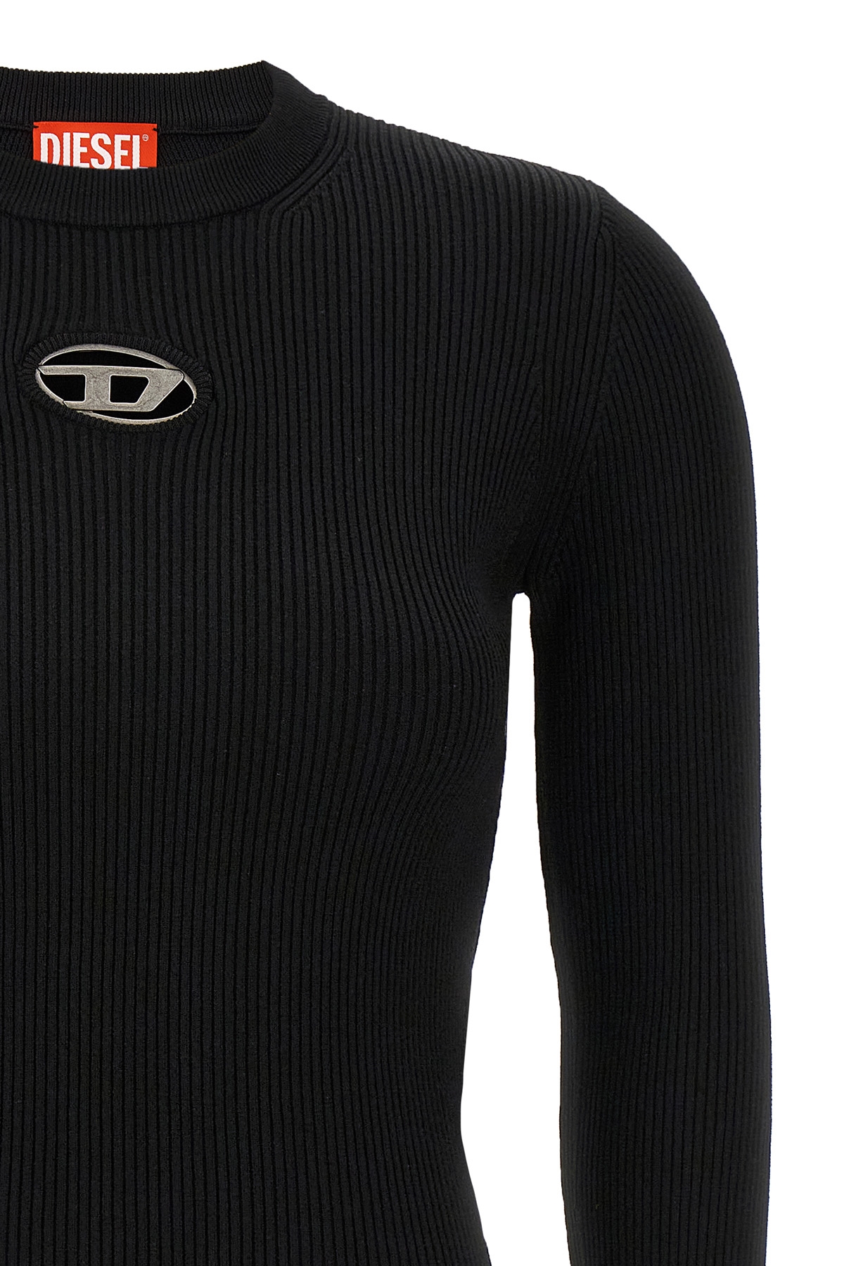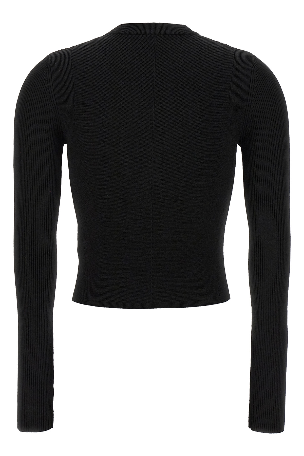 'M-Valari' ribbed knit top with front metal logo, long sleeves.
