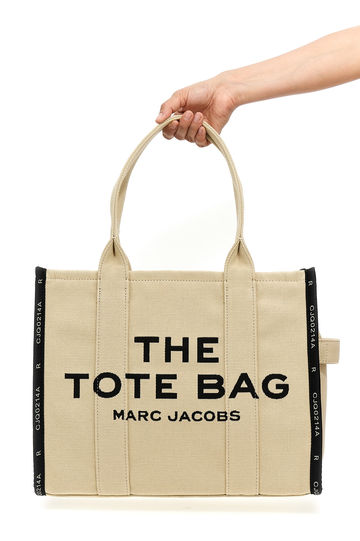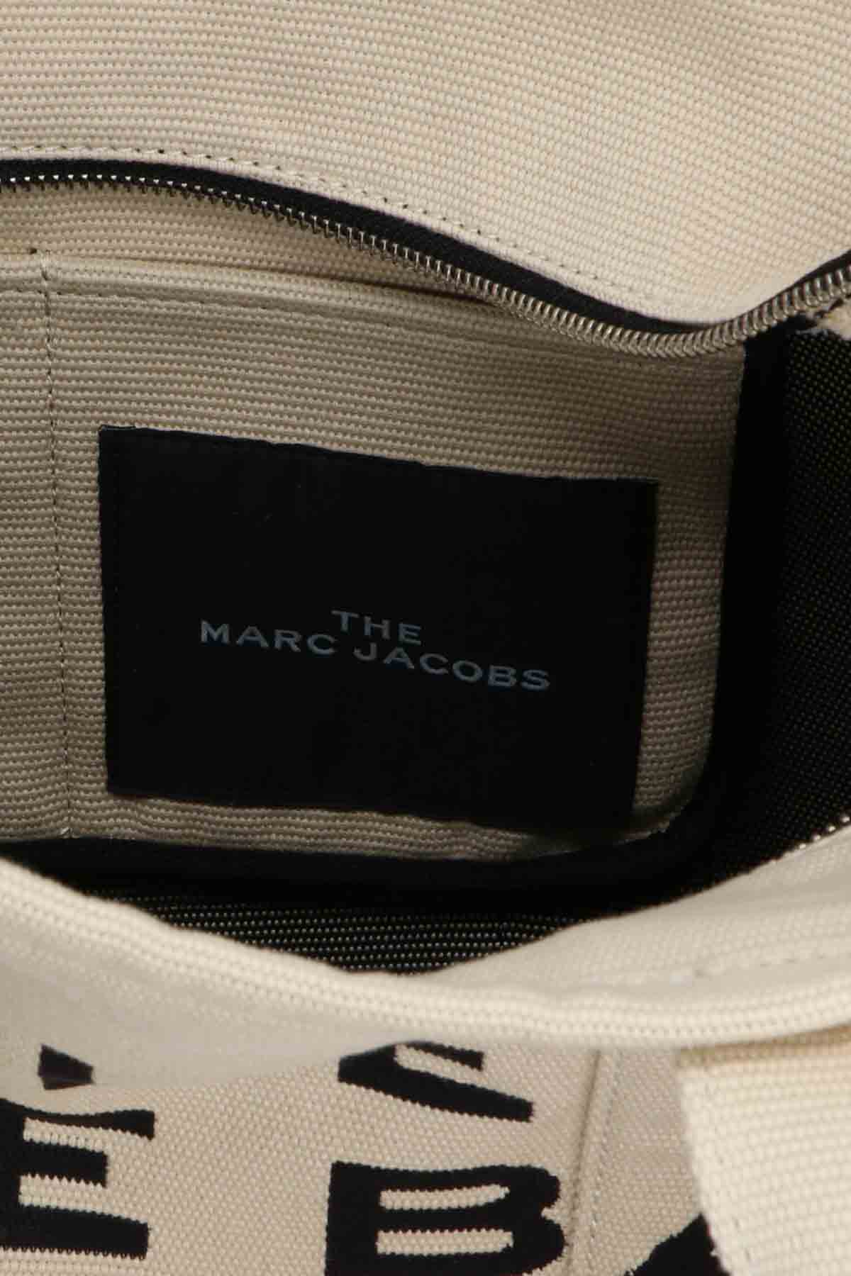 'Traveler tote' canvas shopping bag with front logo print, contrast trims, zip closure and double top handle.