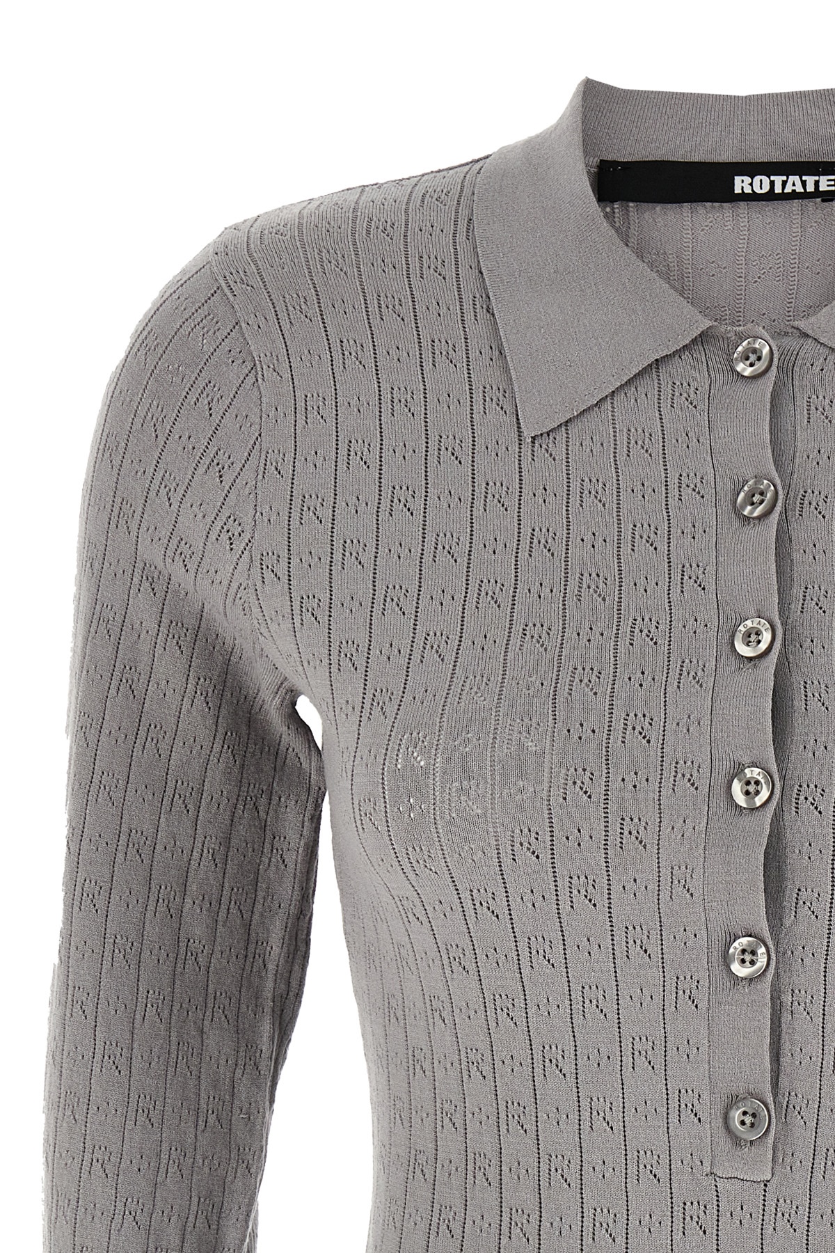 'Pointelle' viscose blend polo shirt with collar and buttons, 3/4 sleeves.