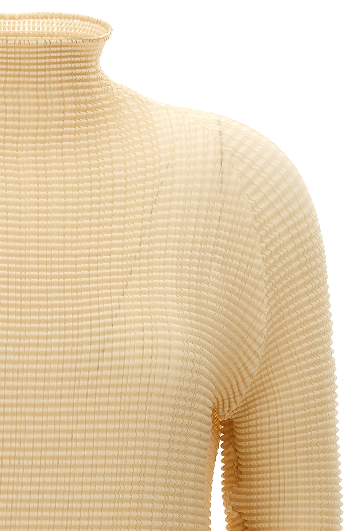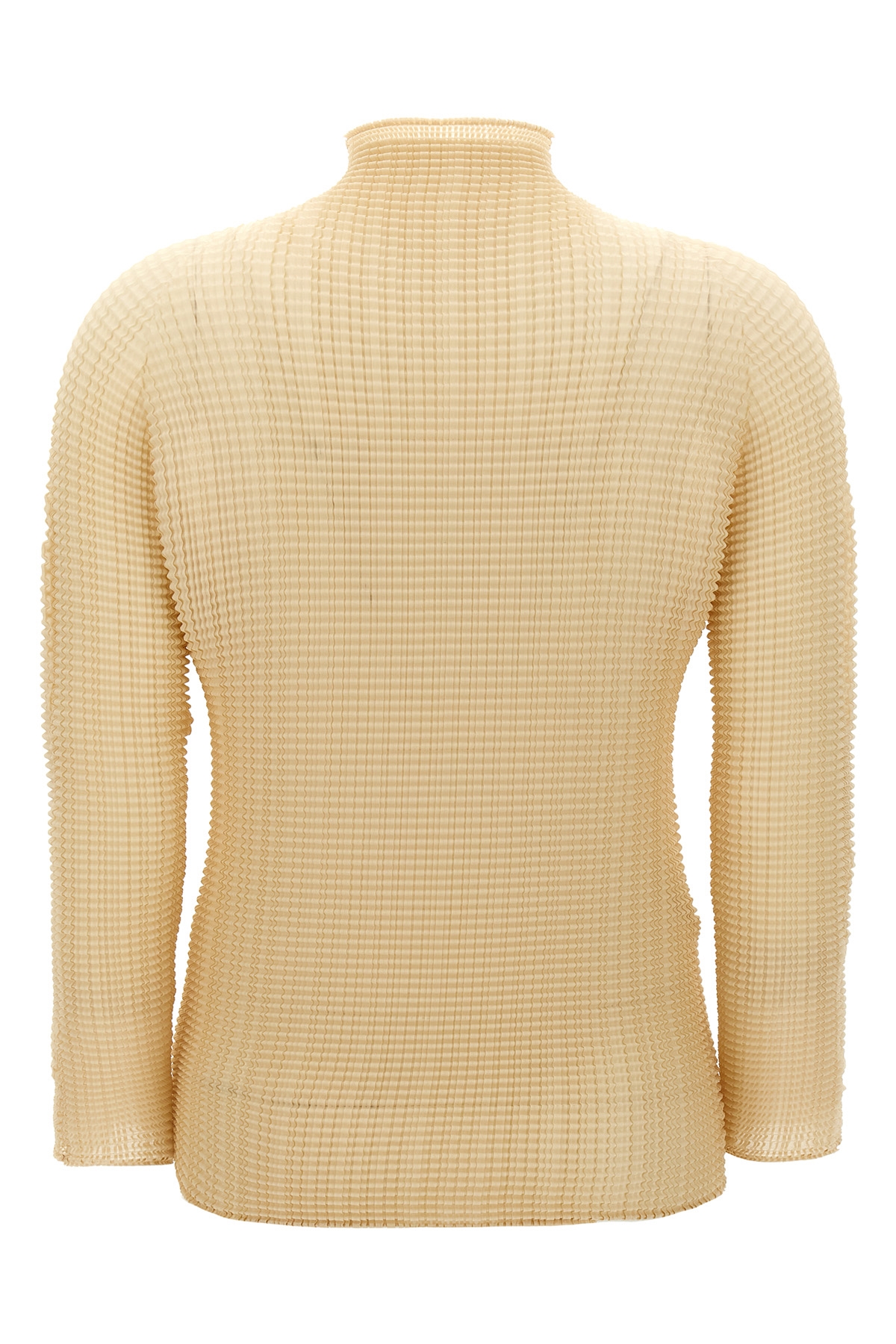 'Wooly Pleats-56' pleated fabric blouse with high neck and long sleeves. SUSTAINABLE: product made from recycled polyester.