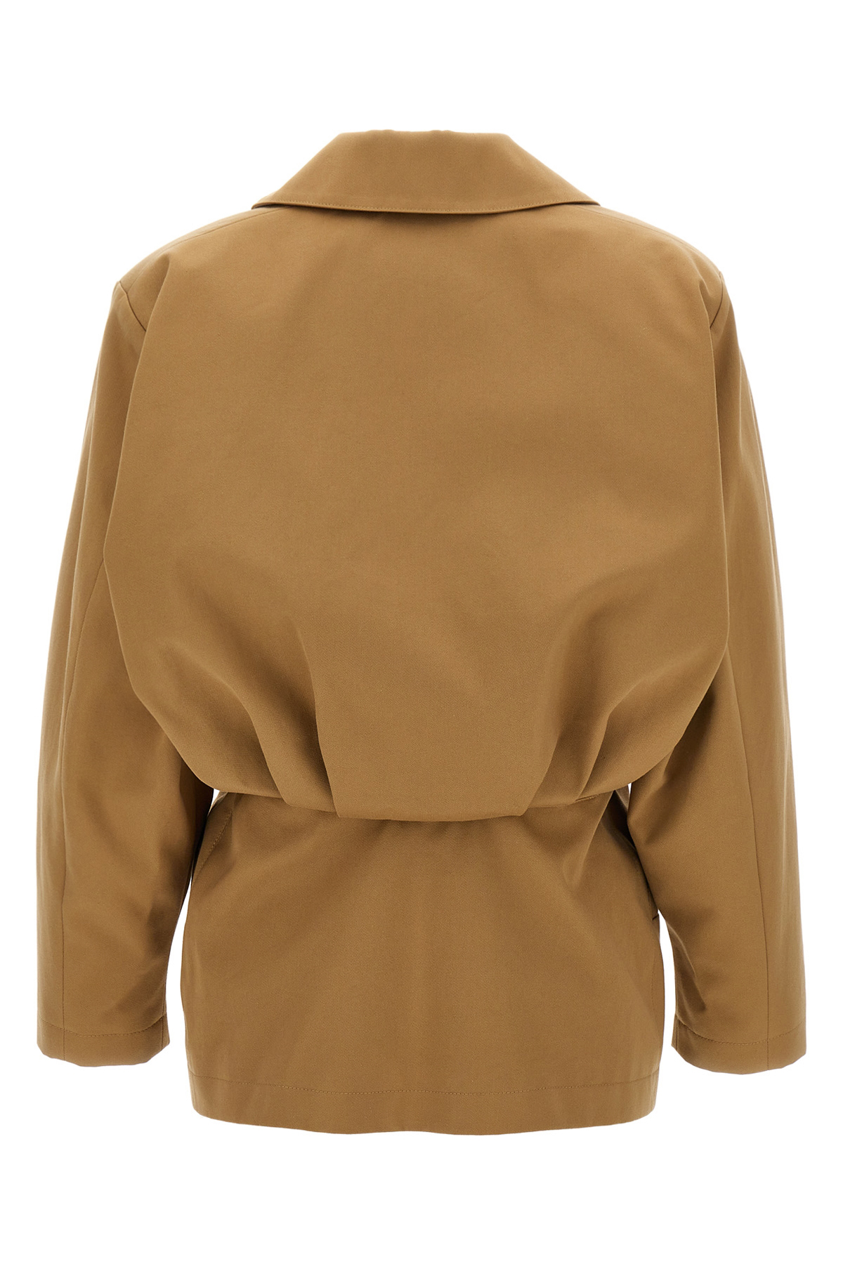 'Endurance Ares' cotton canvas blazer with hourglass silhouette, elastic waistband, double-breasted style with button closure, long sleeves with dropped shoulder, pockets, viscose lining.