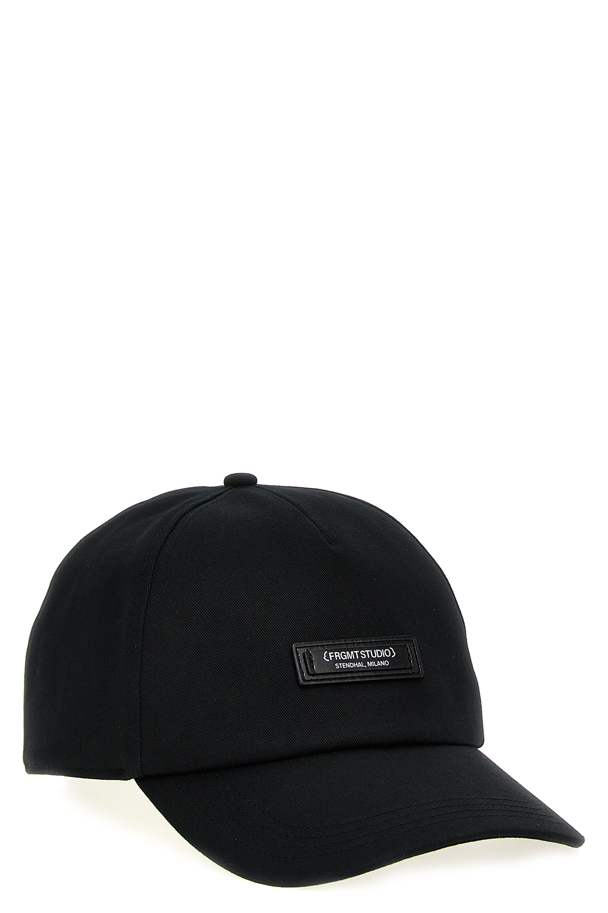 Moncler x FRGMT cotton gabardine cap with front leather logo, cotton canvas lining, adjustable back strap.