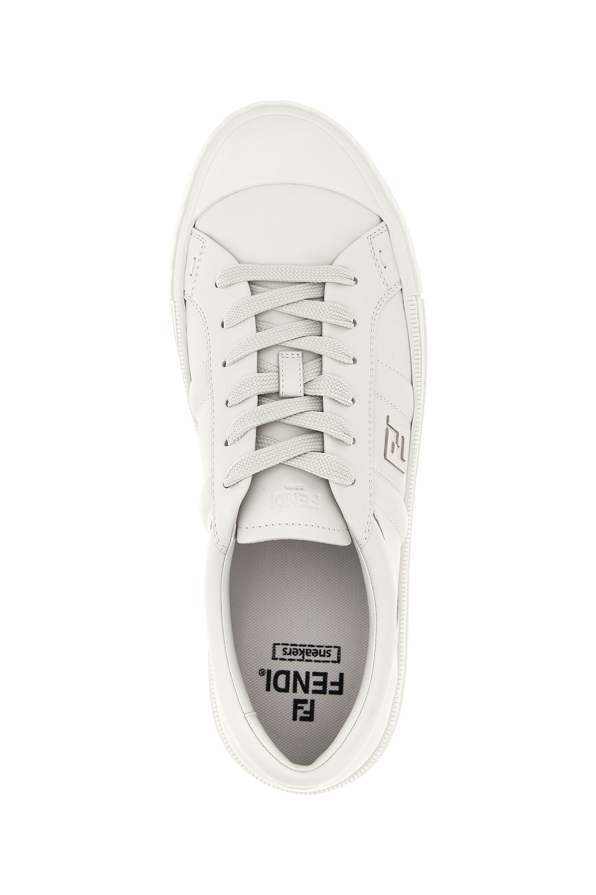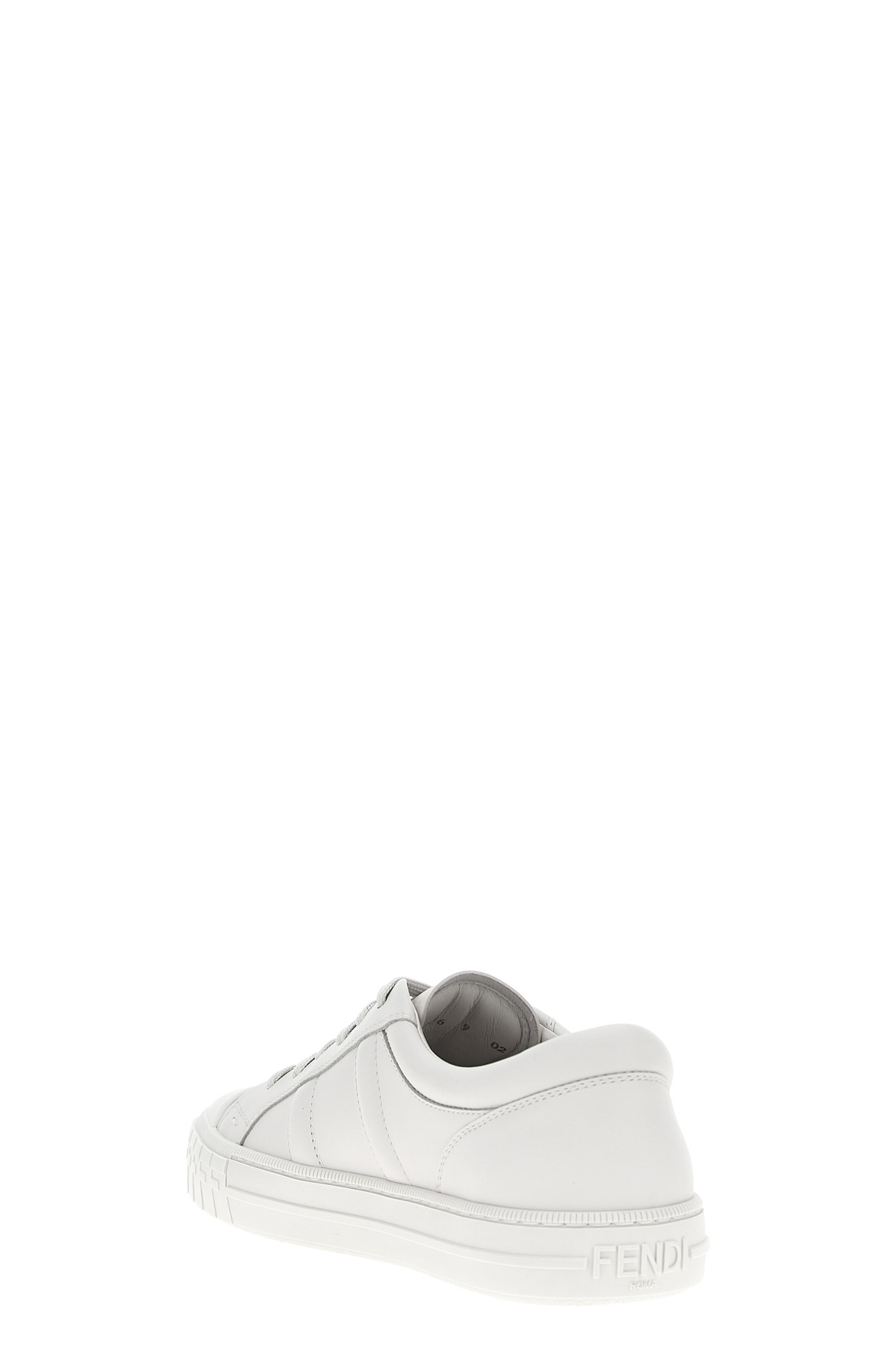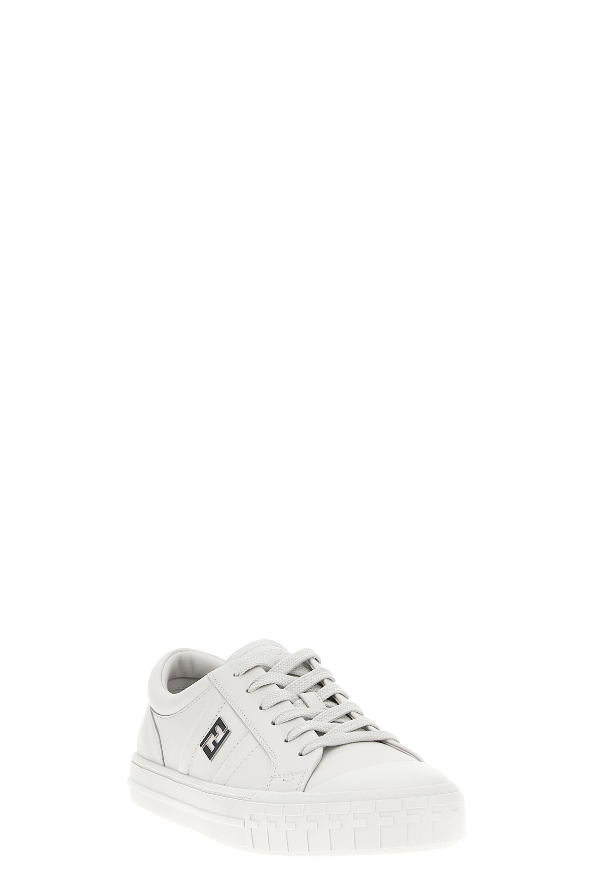 'Domino' leather sneakers with side metal logo, lace-up closure, rubber box sole with embossed FF pattern on the toe.