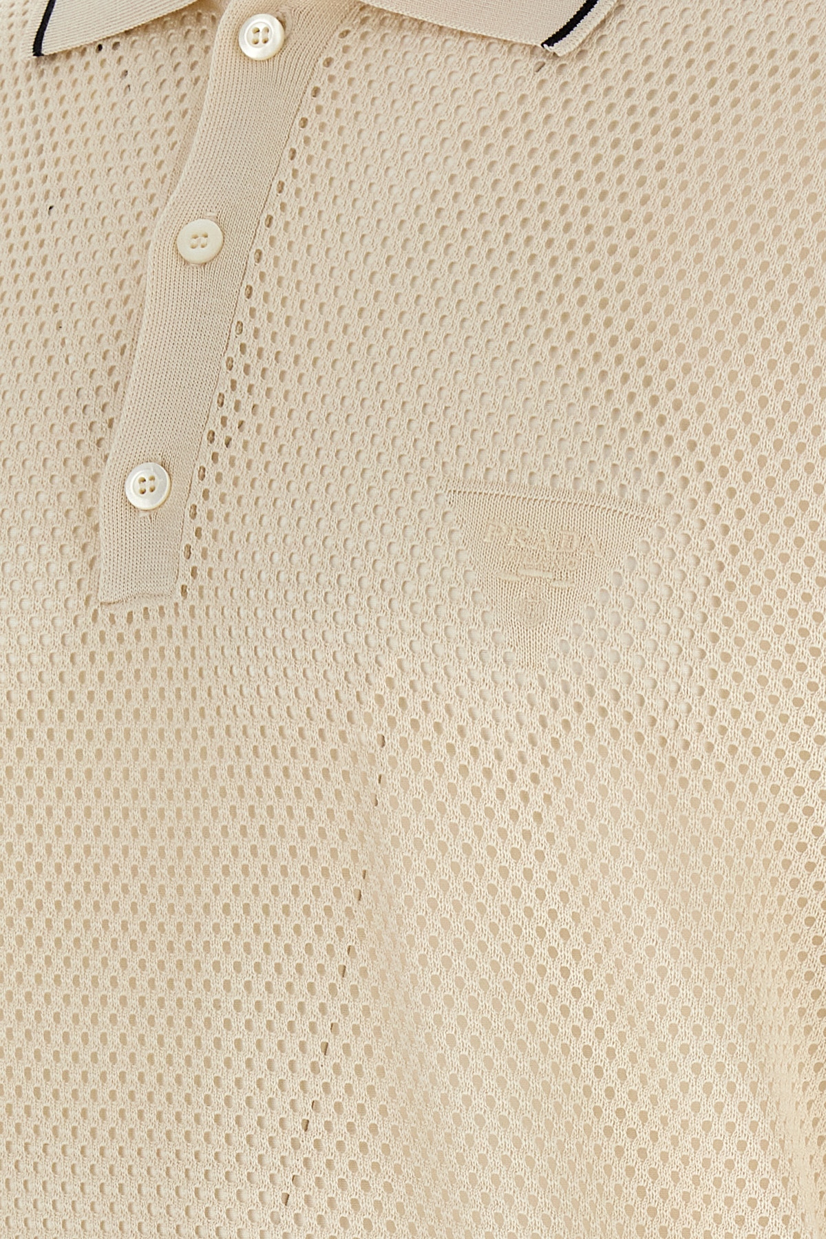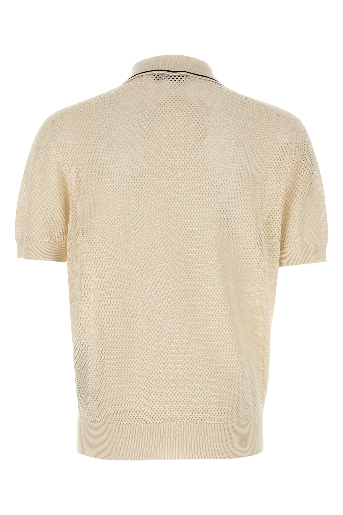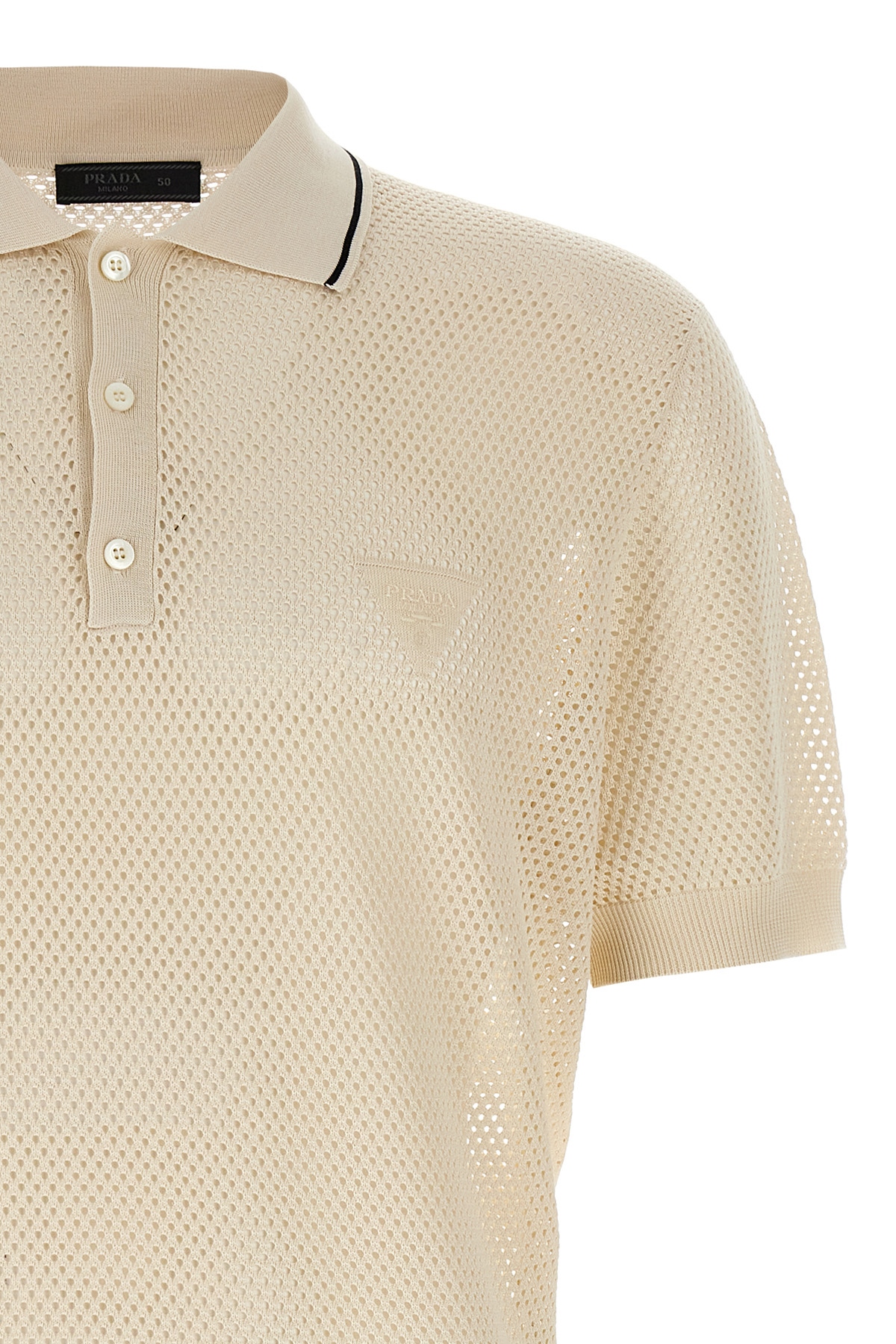 Polo shirt in perforated silk and cotton blend knit with front logo intarsia, collar and buttons, short sleeves with ribbed cuffs.