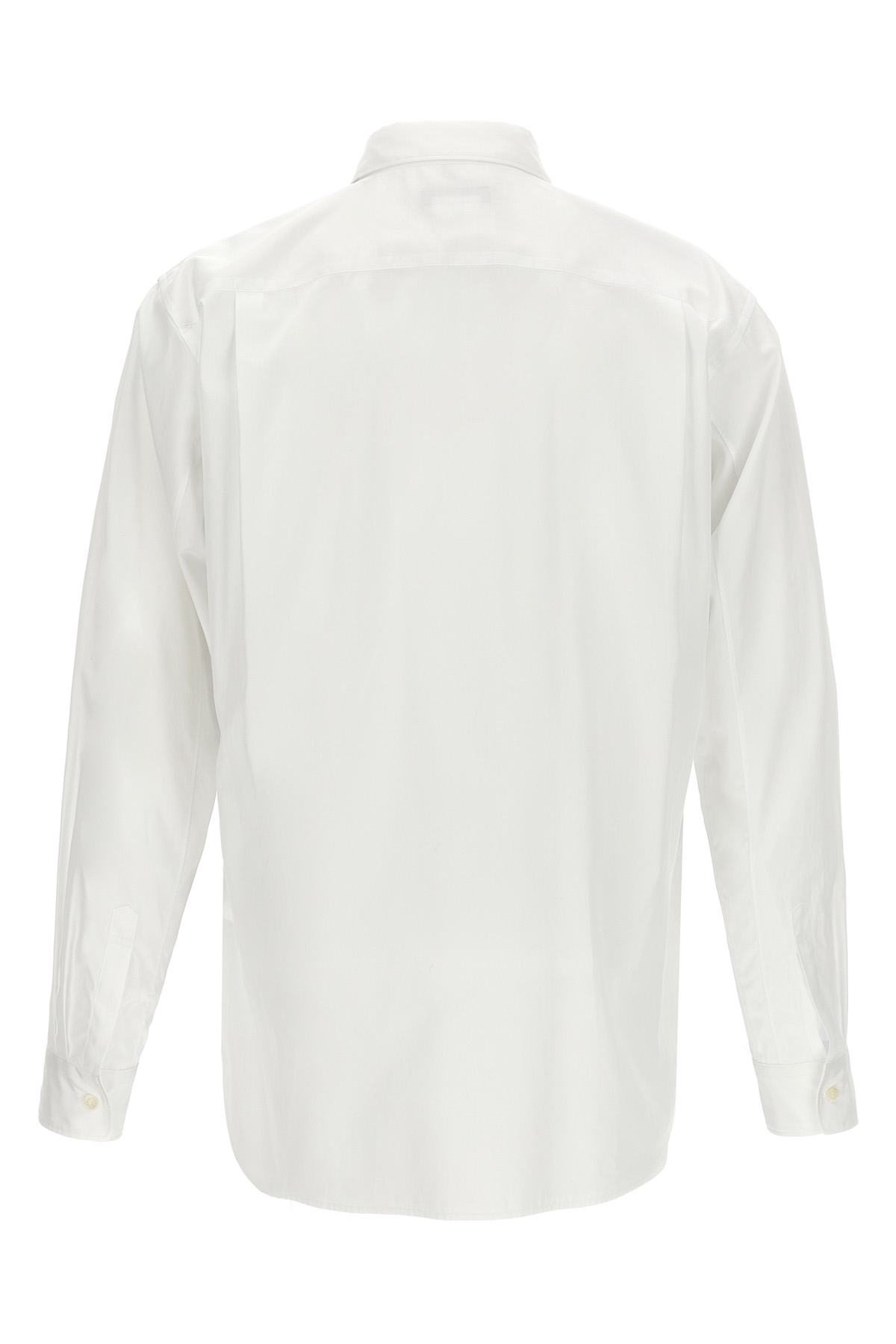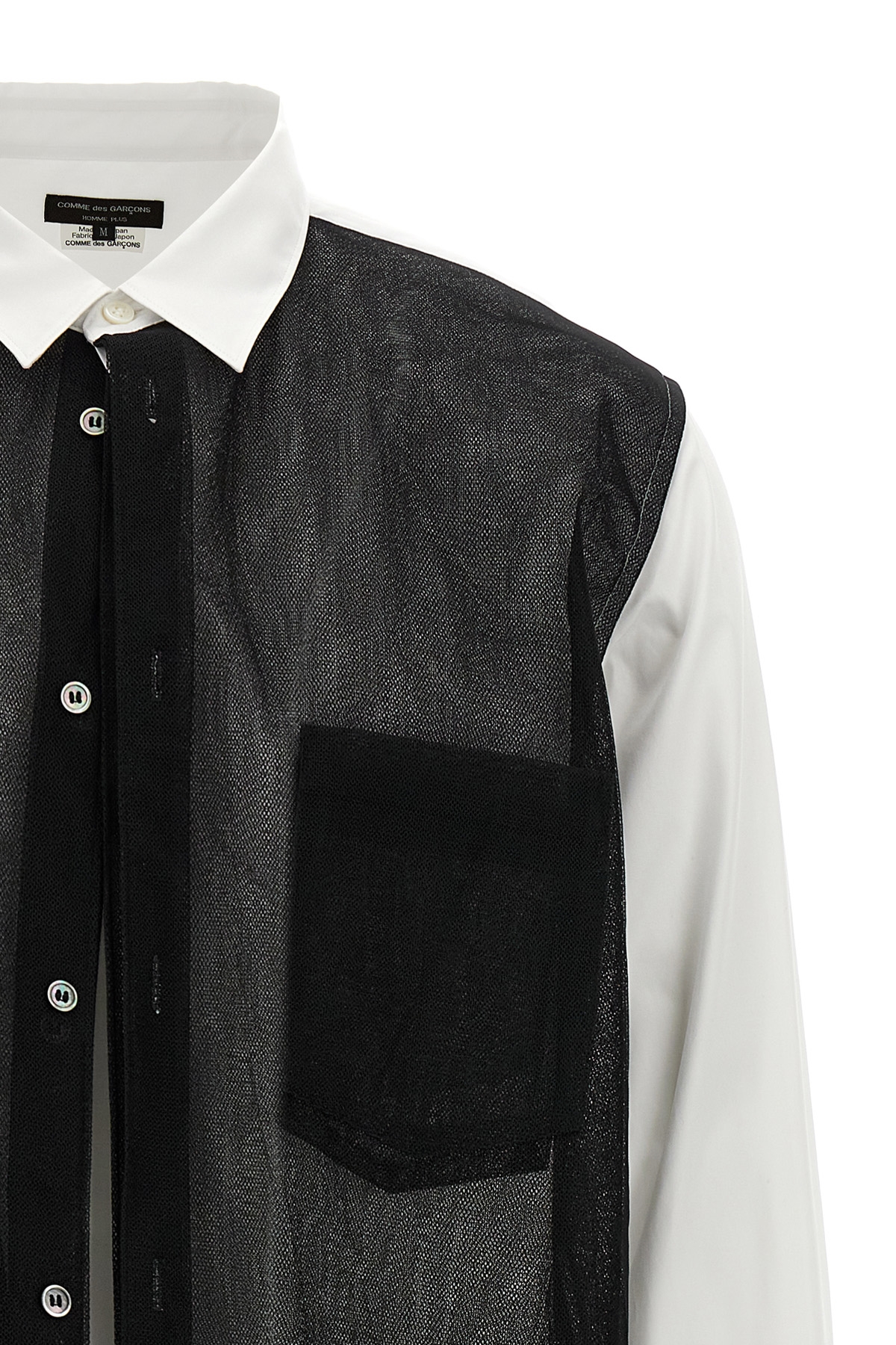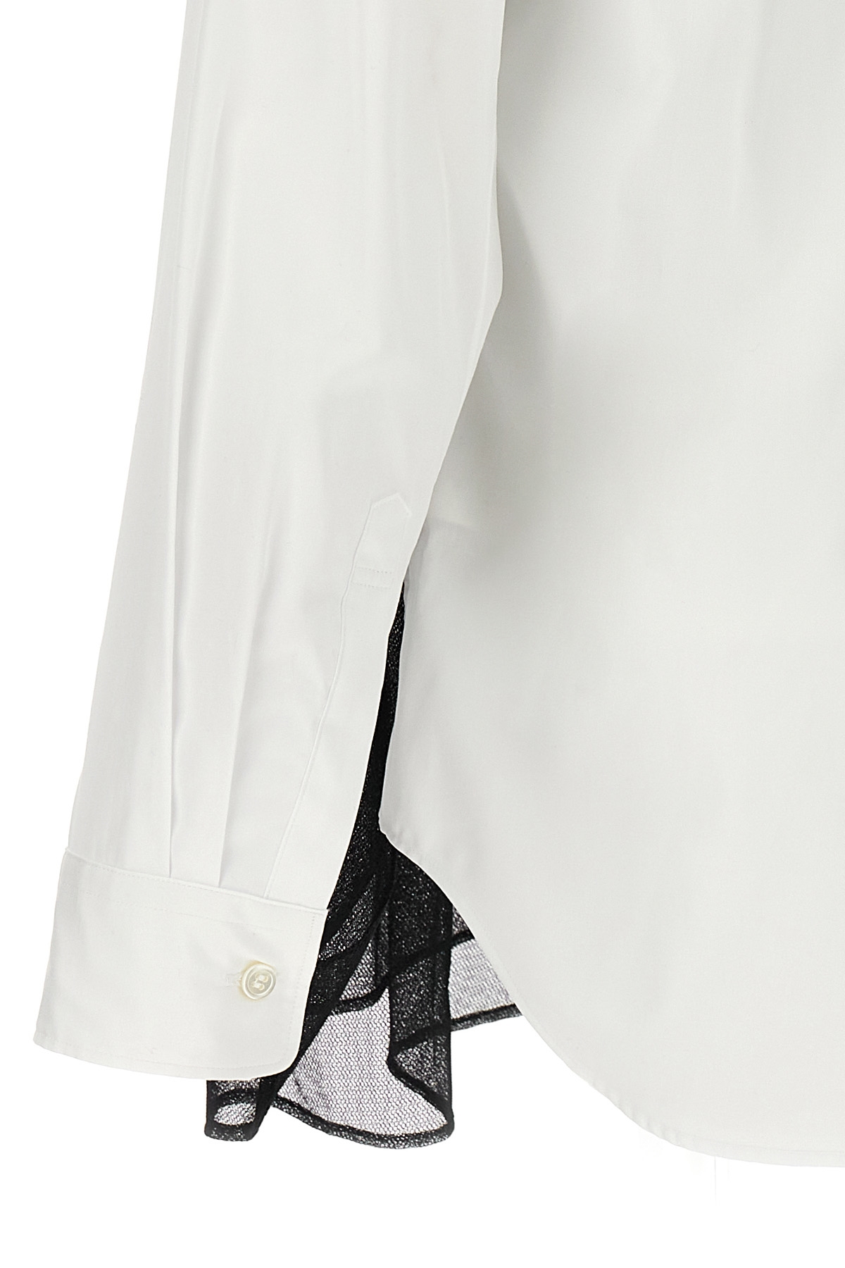 Cotton poplin shirt with two front layers of tulle, front button closure, breast pocket, long sleeves with cuffs.