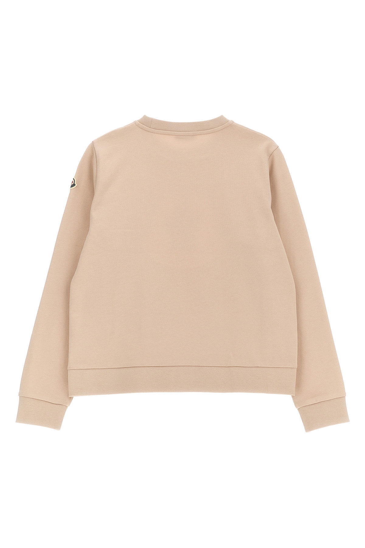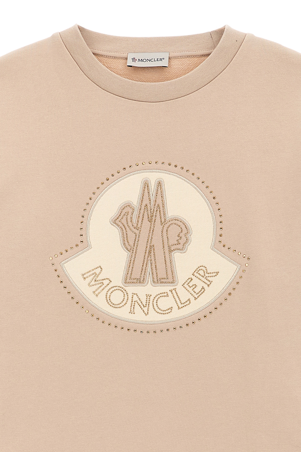 KIDS Brushed cotton sweatshirt, maxi logo embroidery with front rhinestone applique, crew neck, long cuffed sleeves and felt logo patch applique.