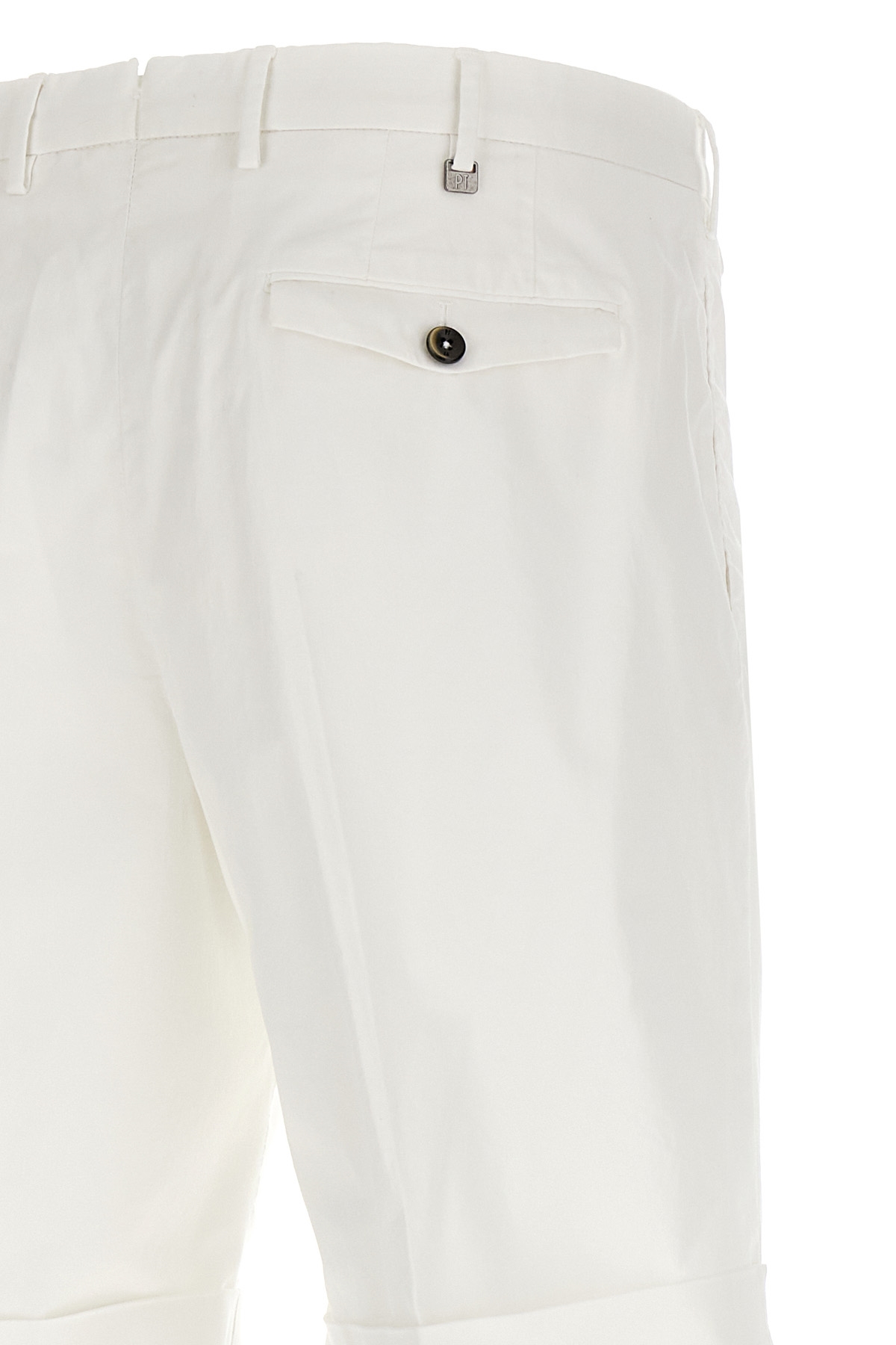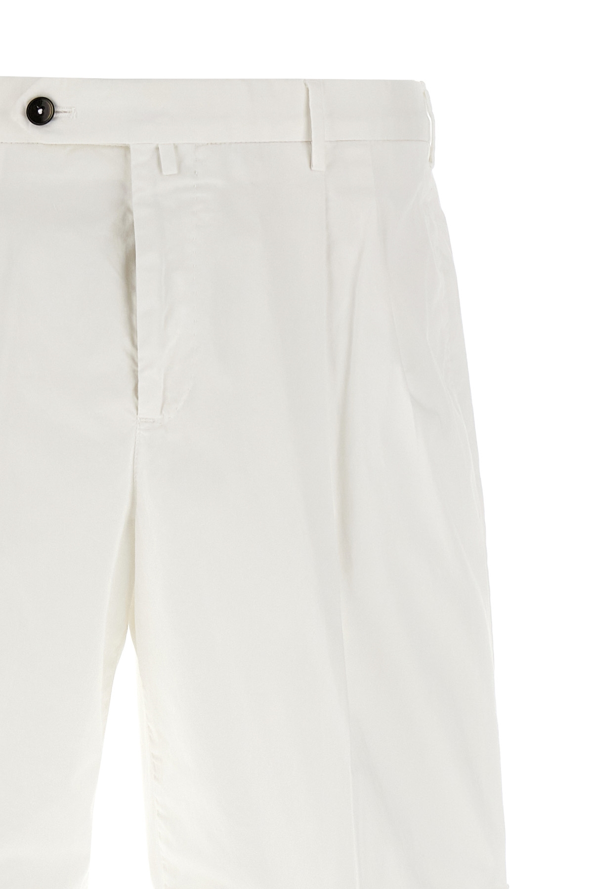 Cotton Bermuda shorts, pleat and ironed pleat, zip and button closure, pockets, turn-up hem.