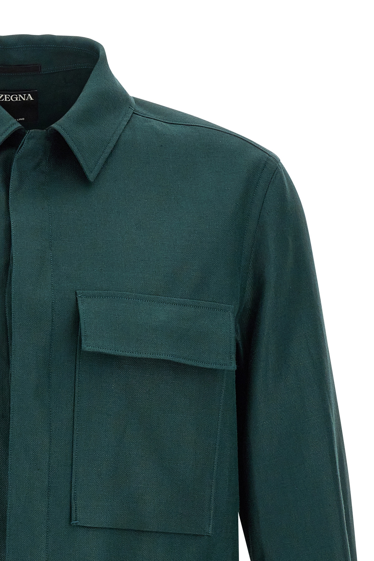 'Oasi' linen overshirt with button closure, pockets, long cuffed sleeves, side slits.