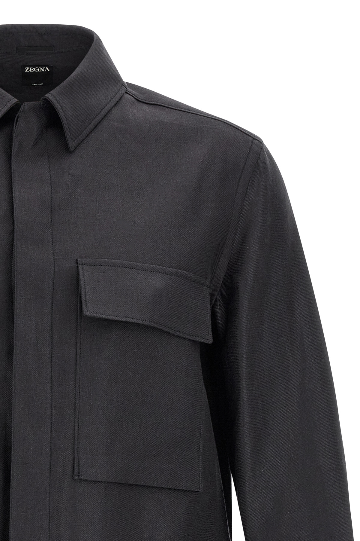 'Oasi' linen overshirt with button closure, pockets, long cuffed sleeves, side slits.