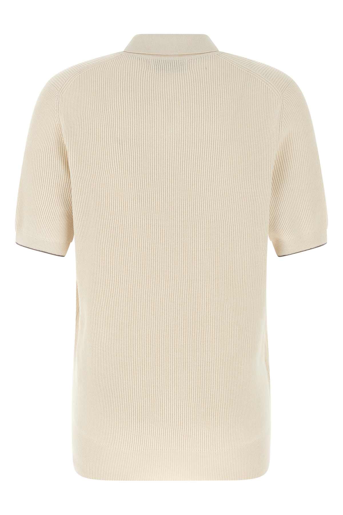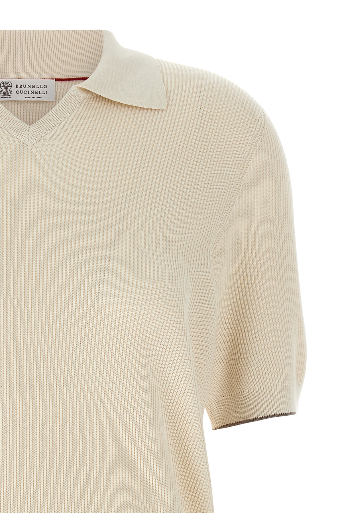 Ribbed cotton knit polo shirt with micro V-neck and piping in the sleeves.