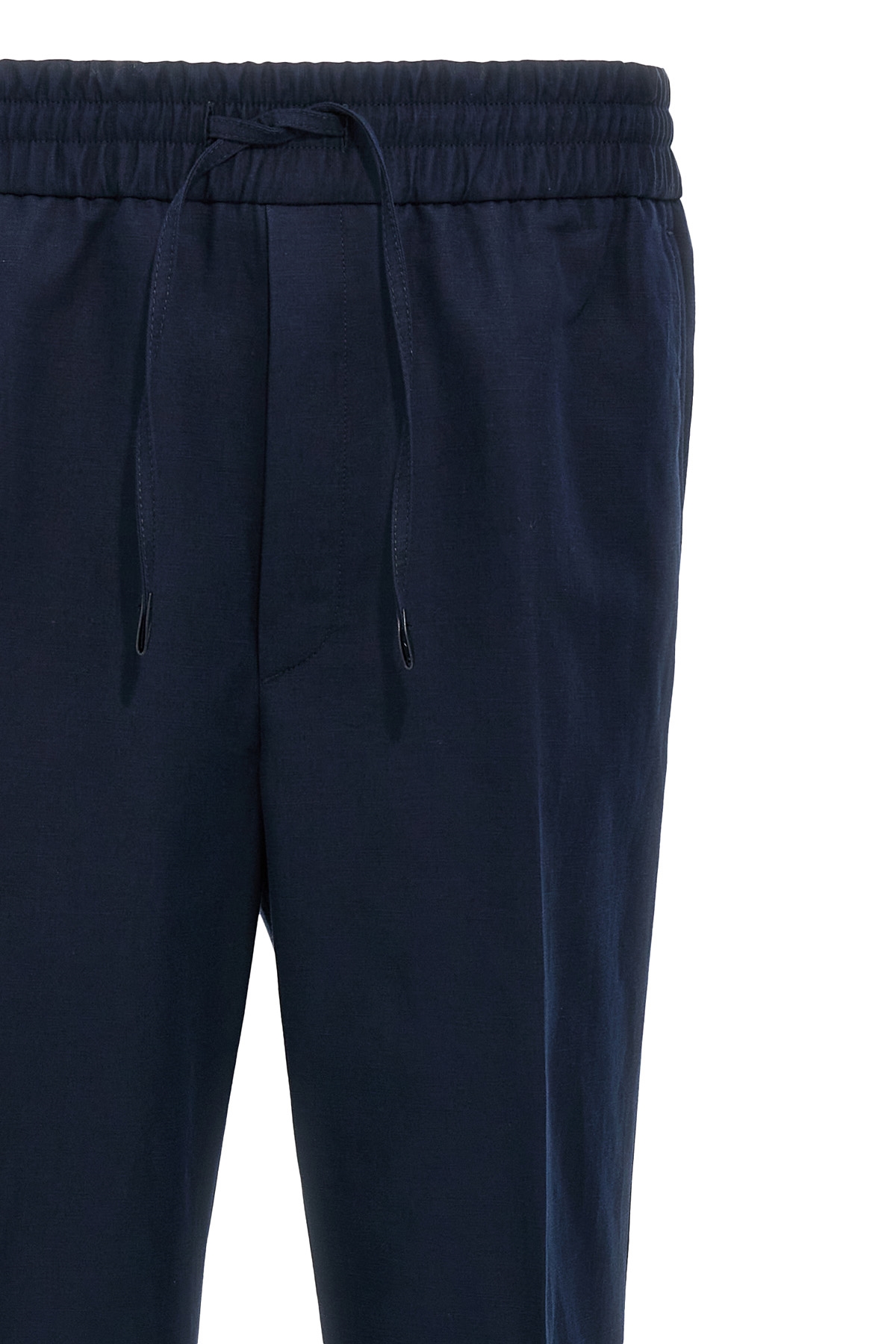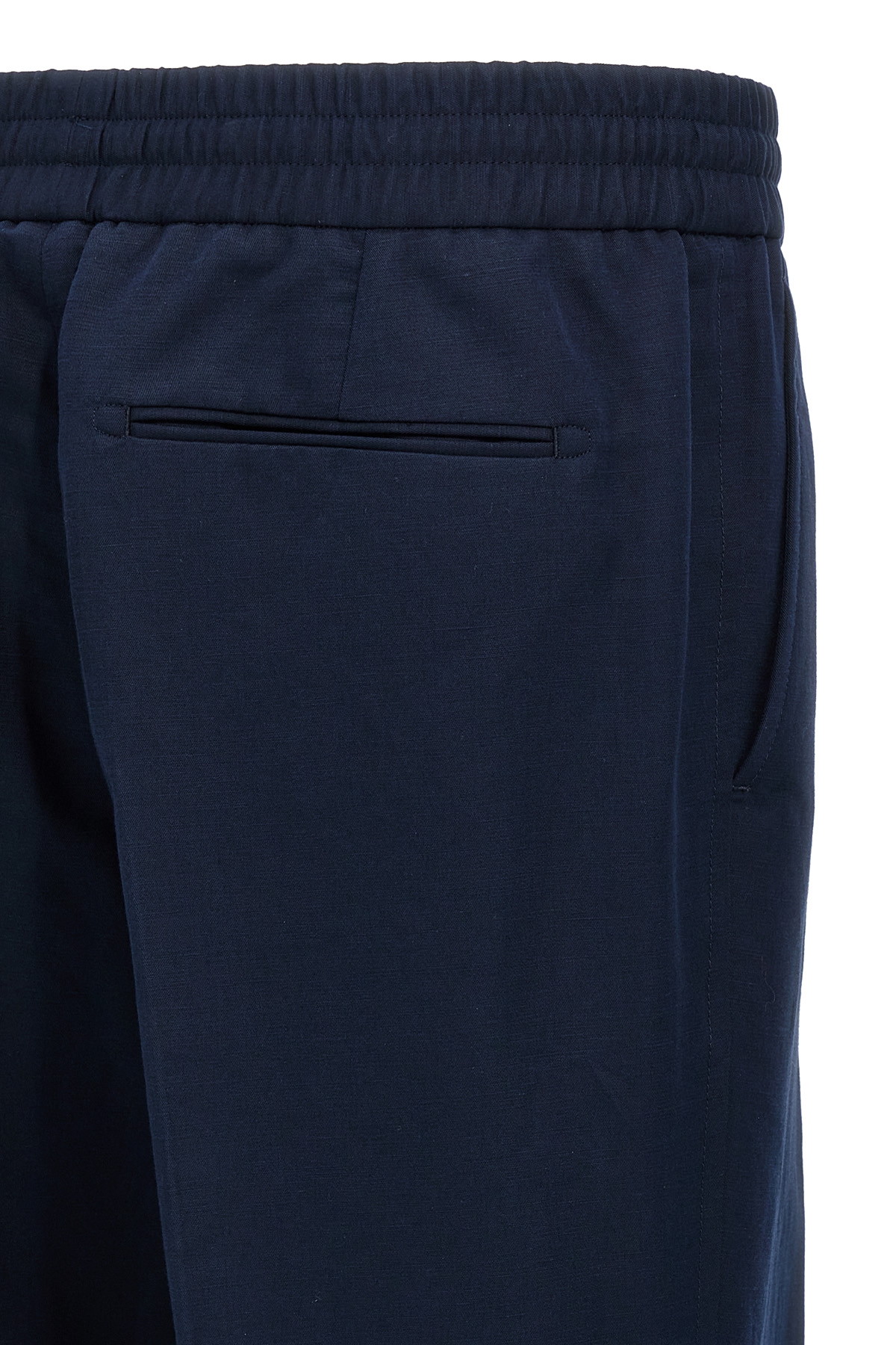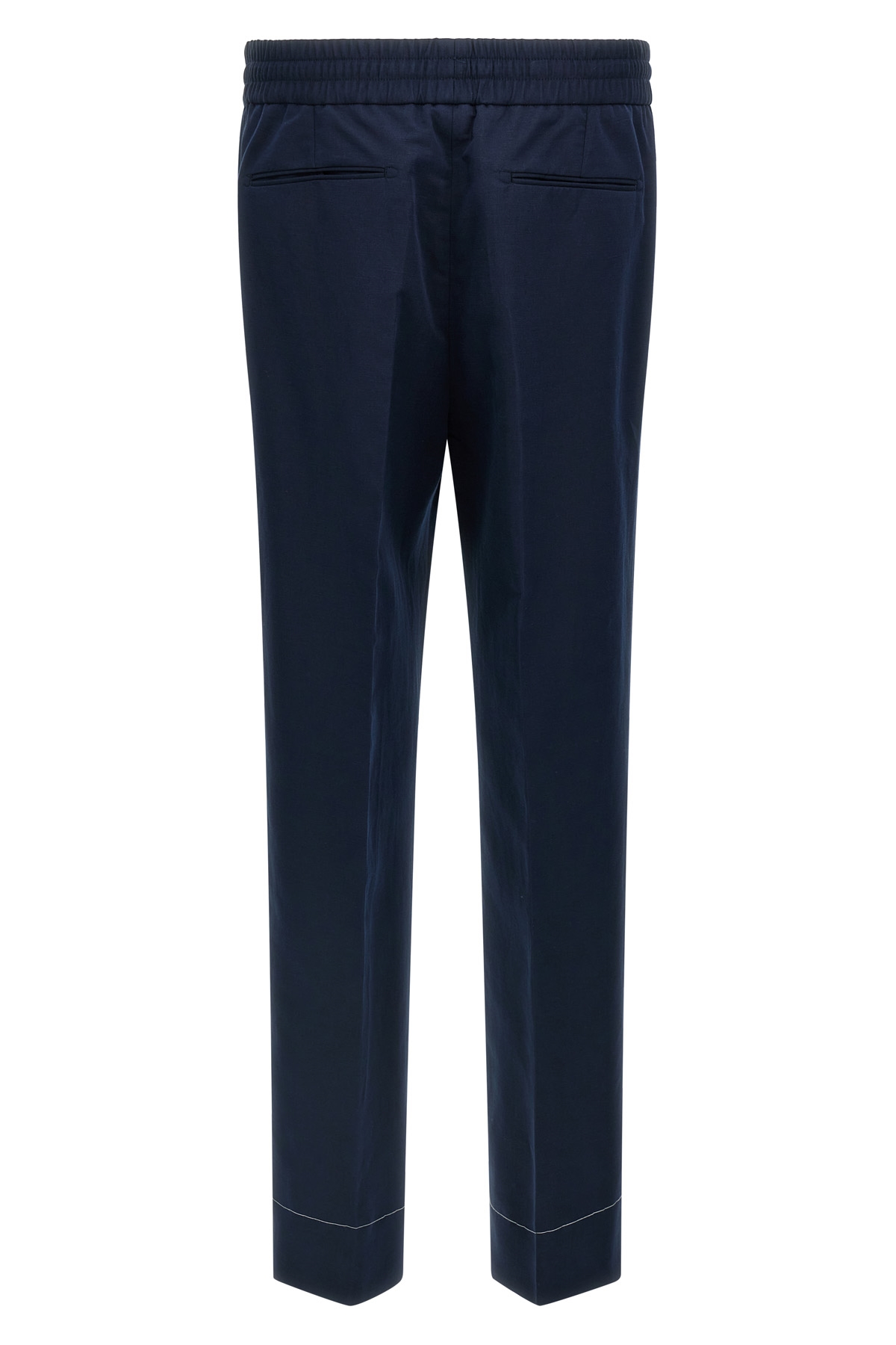 'Asolo' cotton blend linen pants with contrast stitching at the leg and drawstring at the waist.