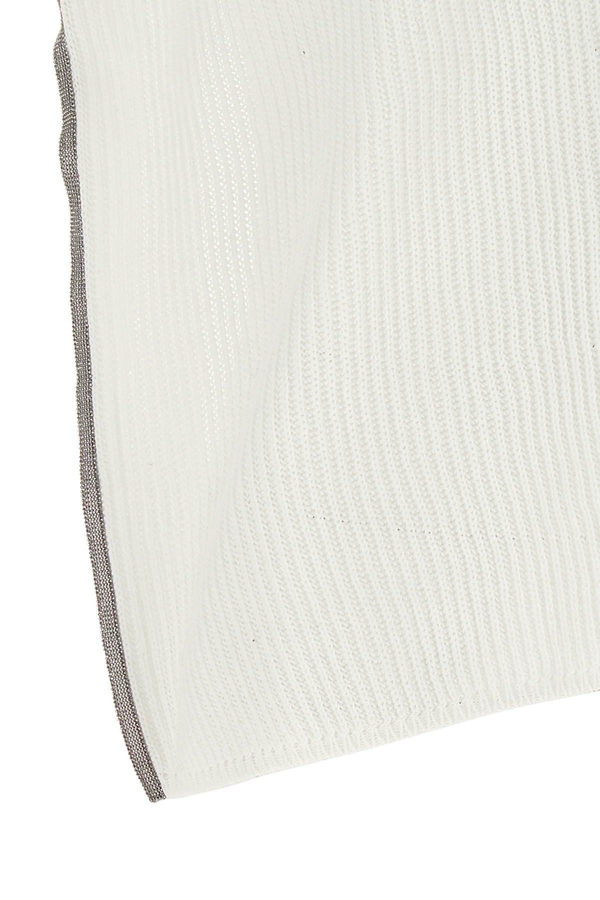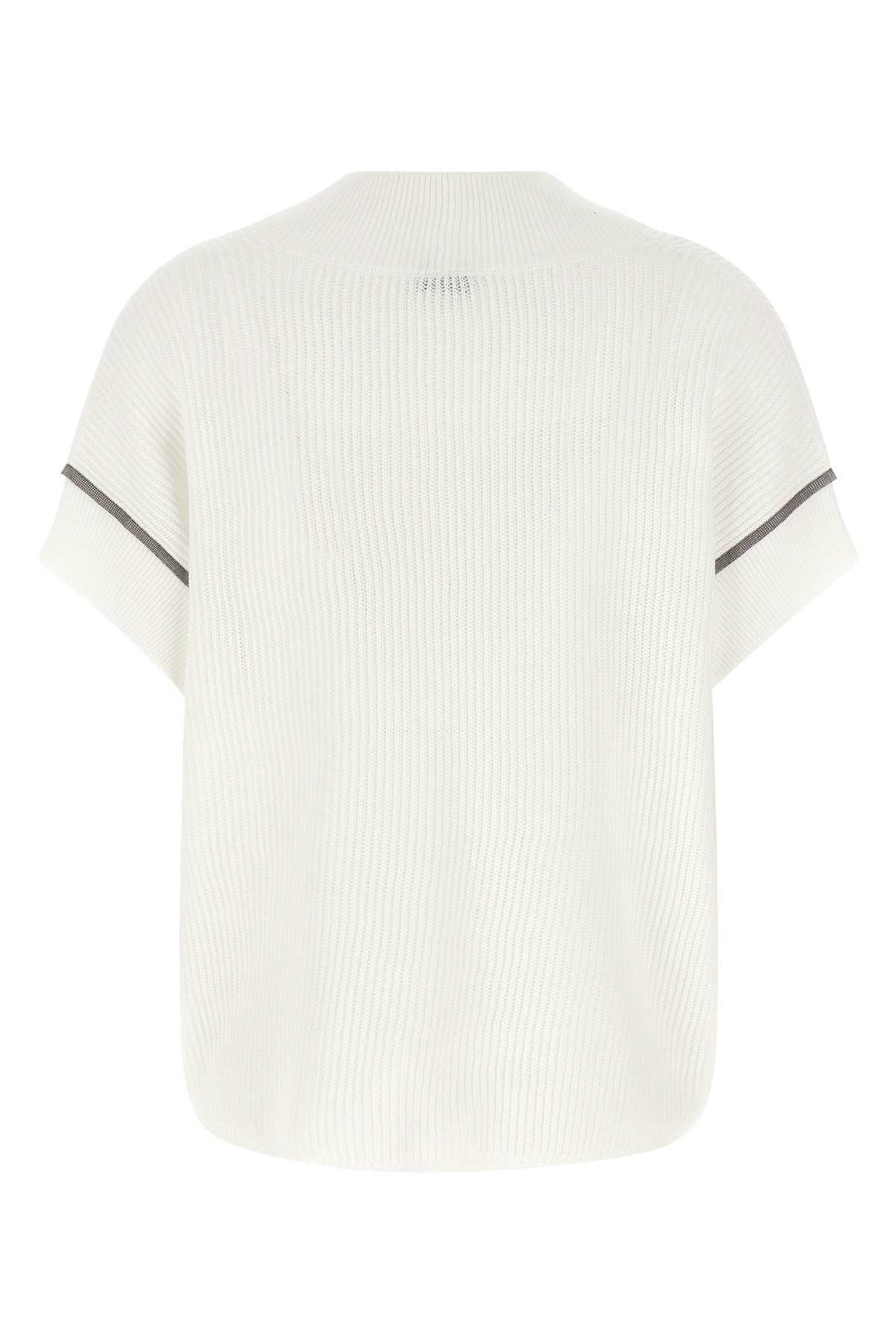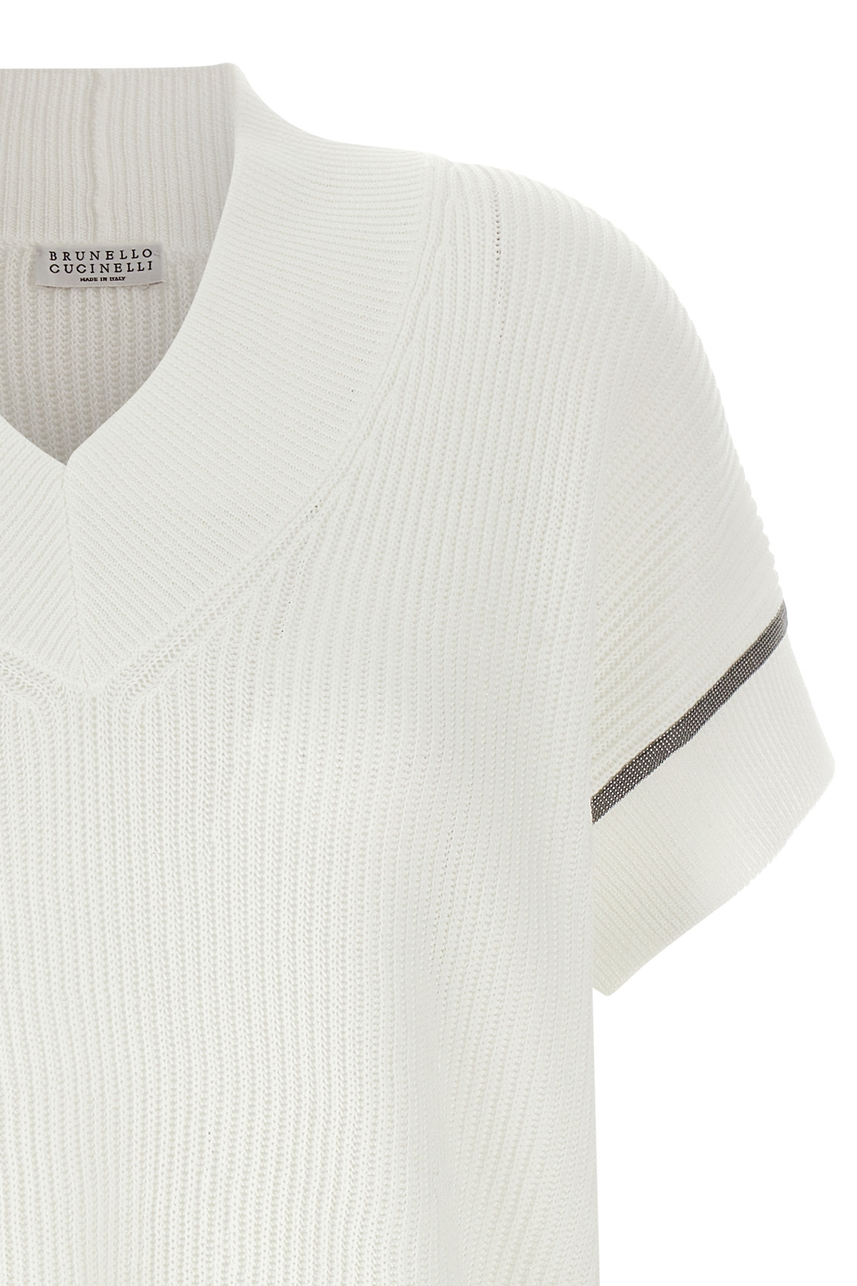 'Monile' ribbed cotton sweater with deep V-neck, short sleeves with jewel detail.