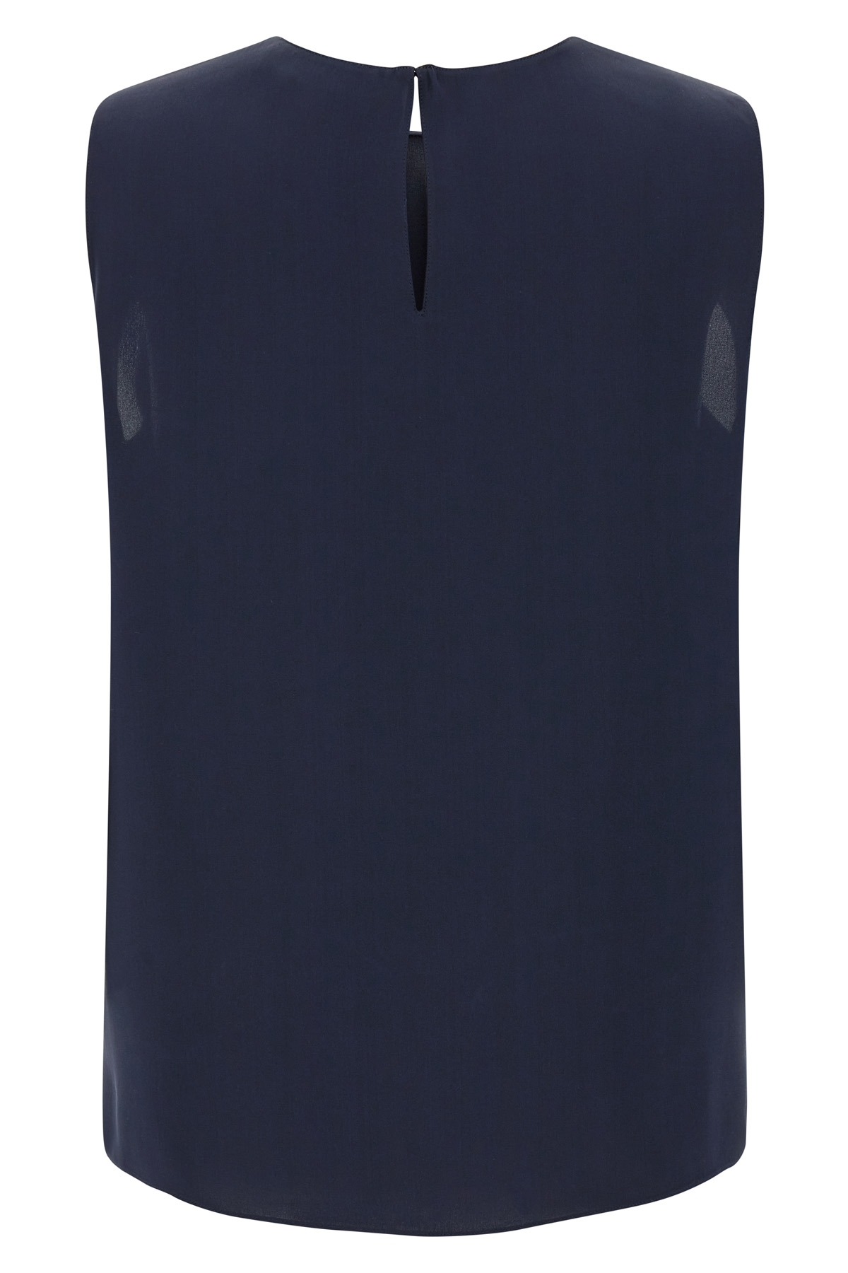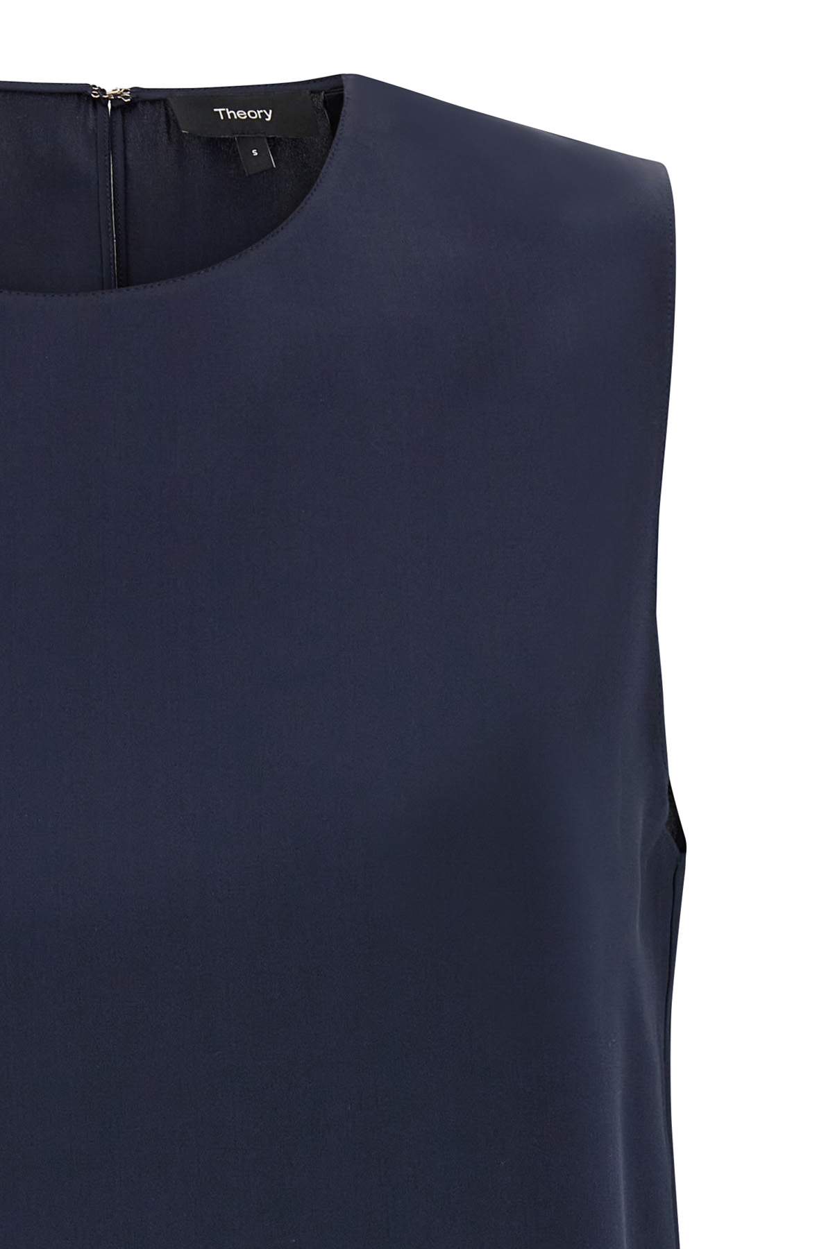 Silk top, crew neck, sleeveless.