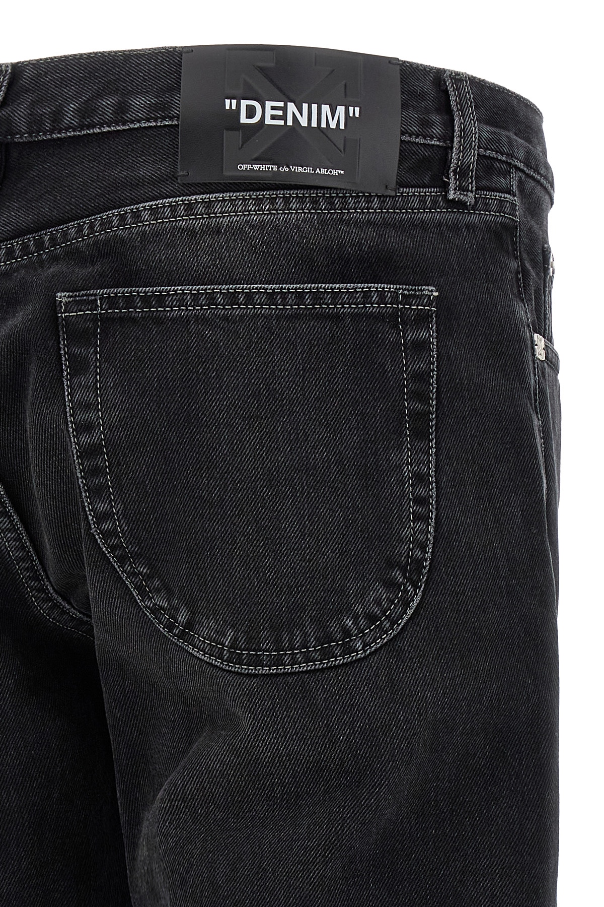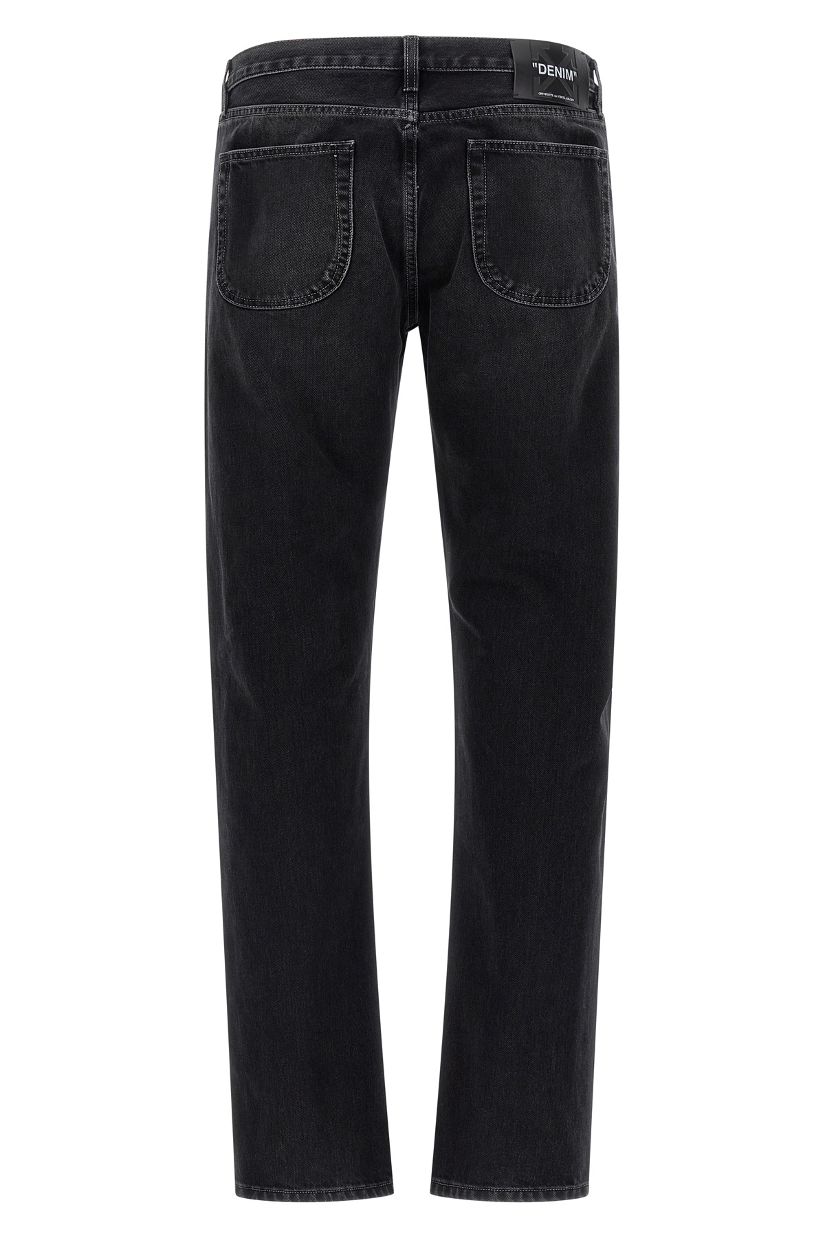 Vintage cotton denim jeans with zip and button closure, five pockets, straight leg, back logo tag.