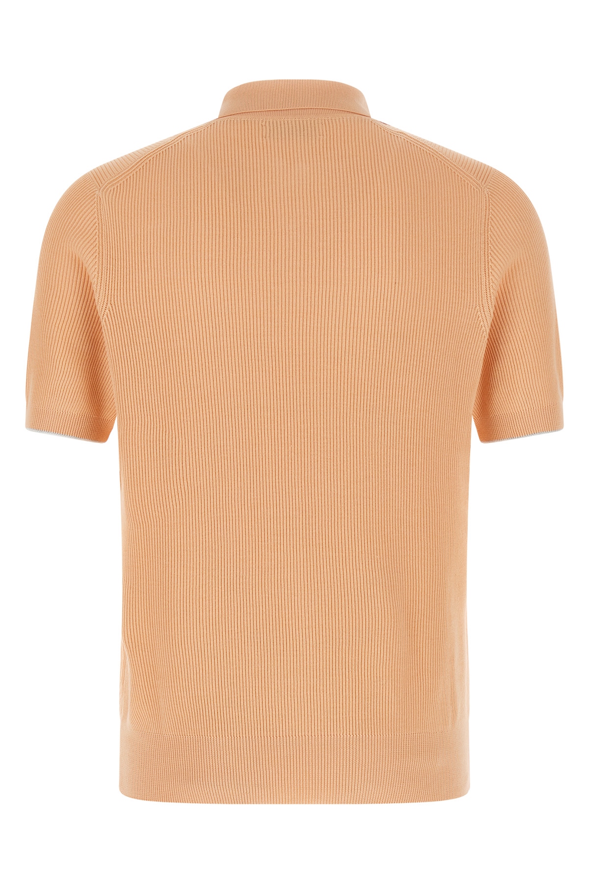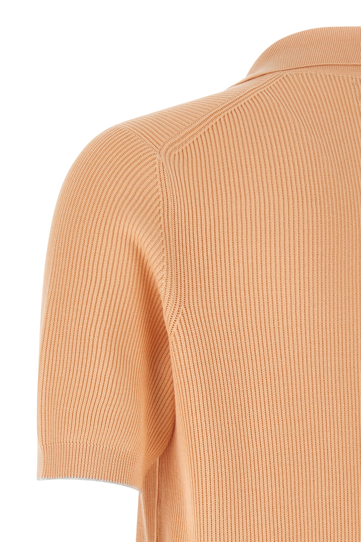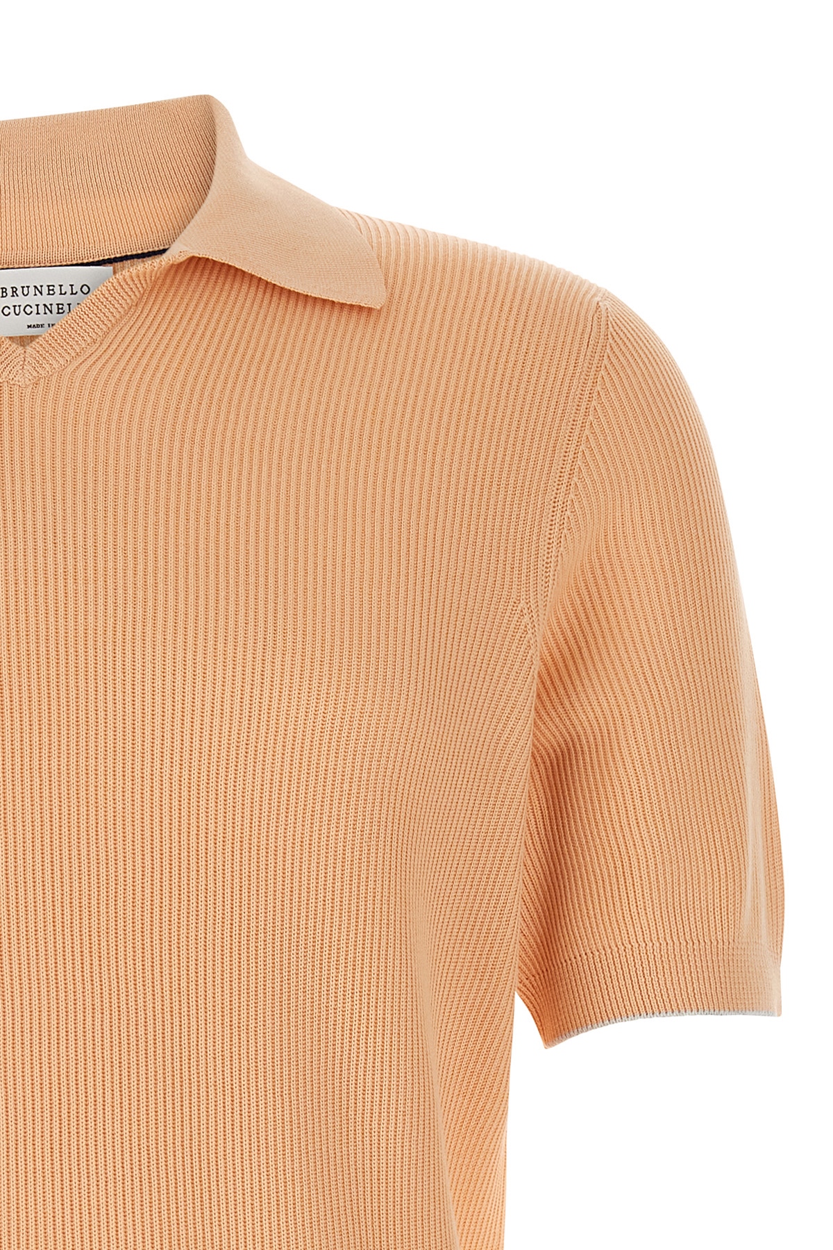 Ribbed cotton knit polo shirt with mini V-neck, short sleeves with contrasting piping.