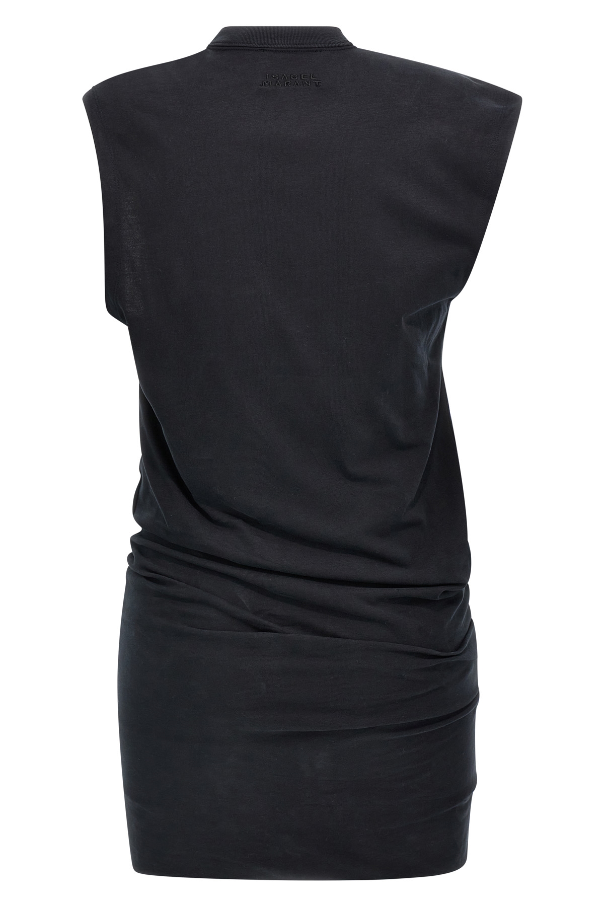 'Leany' asymmetrical cotton mini dress with wide armholes, round neckline with twisted detail, side curl.