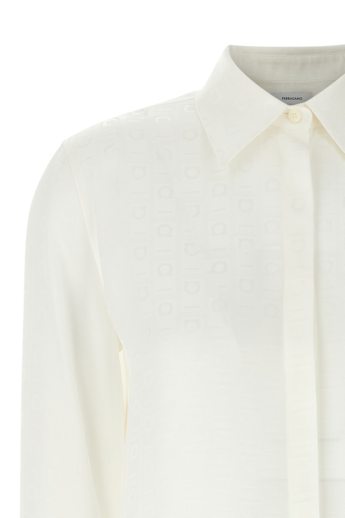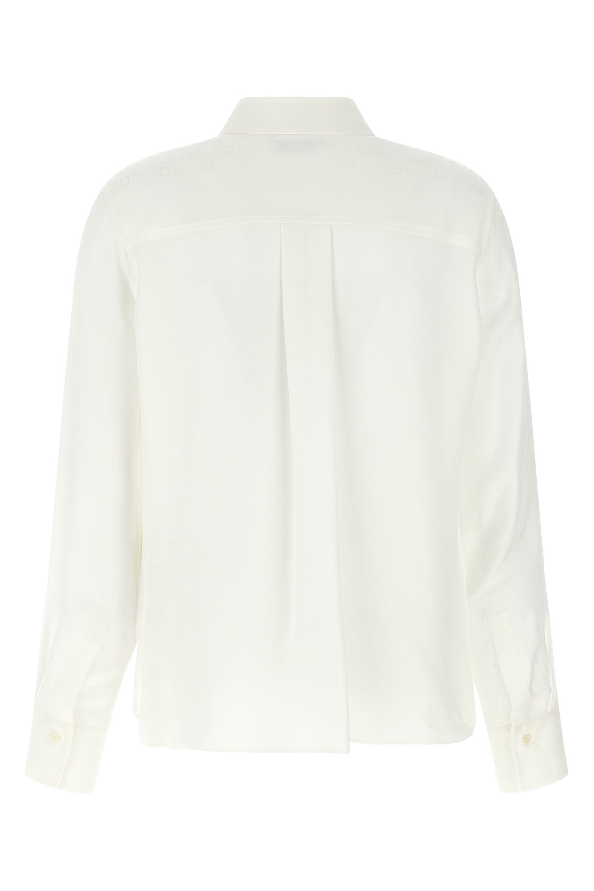Silk shirt with monogram jacquard logo, button closure, long cuffed sleeves.