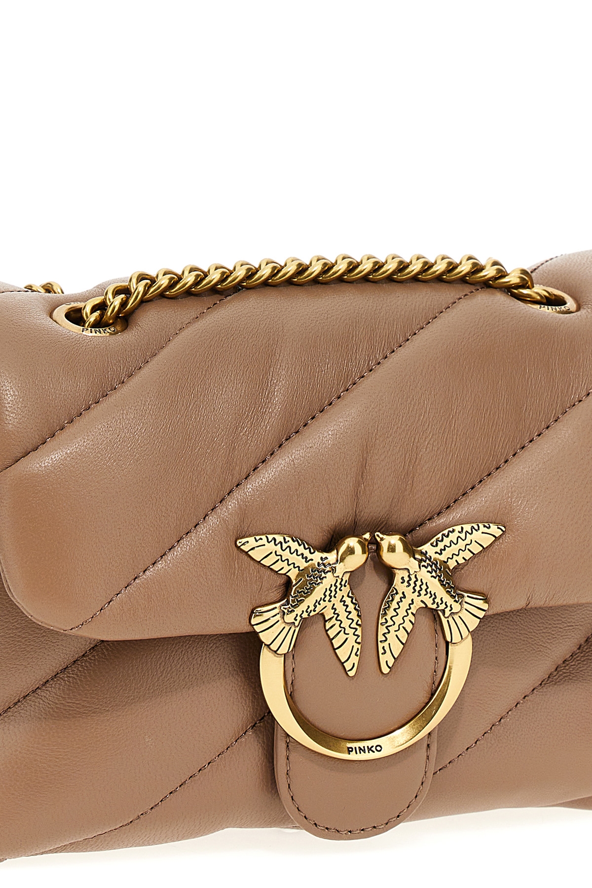 Love Mini Puff' quilted leather crossbody bag with flap closure with front metal logo applique, chain and leather shoulder strap.