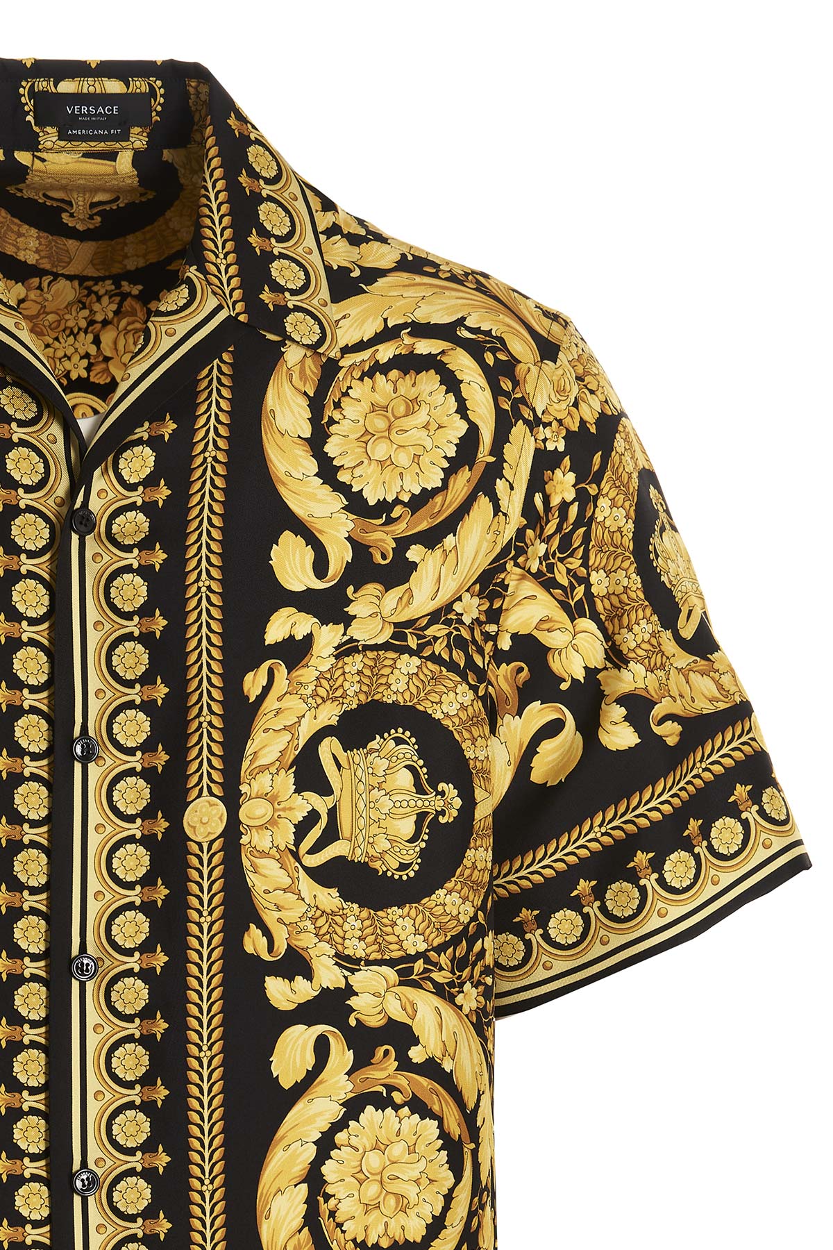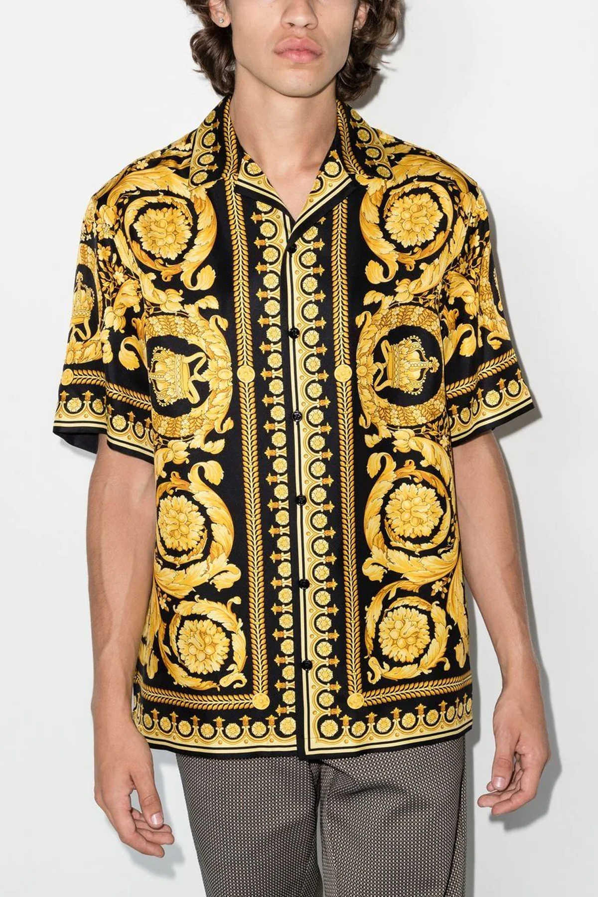 Silk shirt, with all-over 'Barocco' print, short sleeves and a button closure.