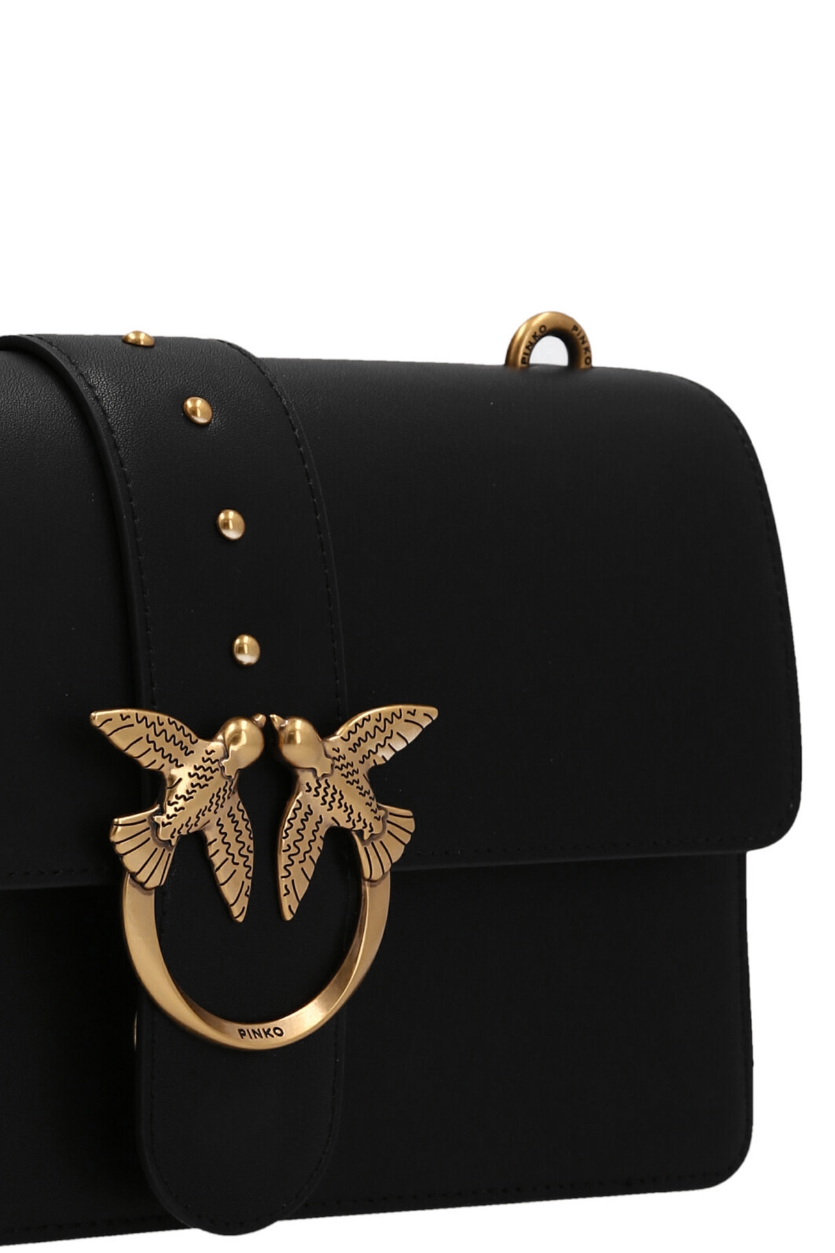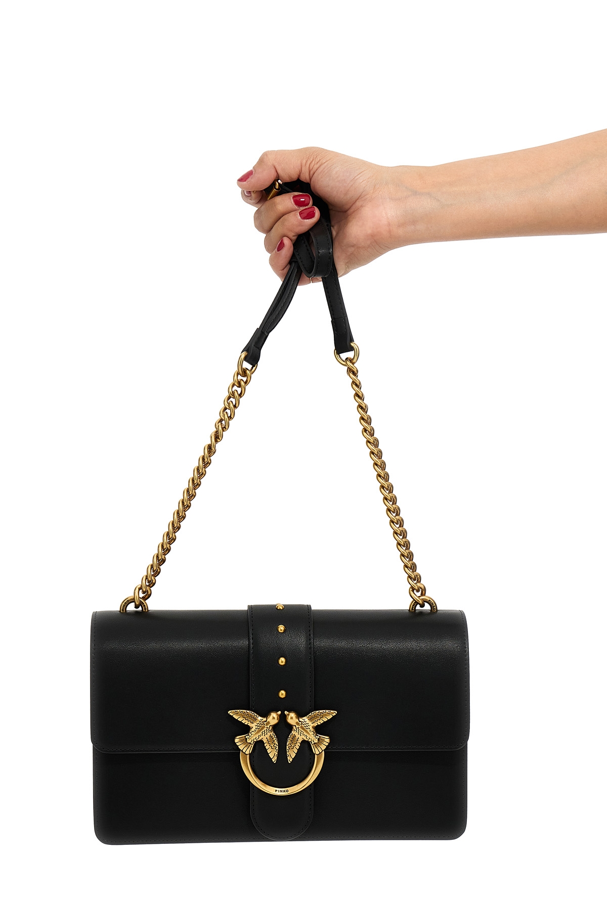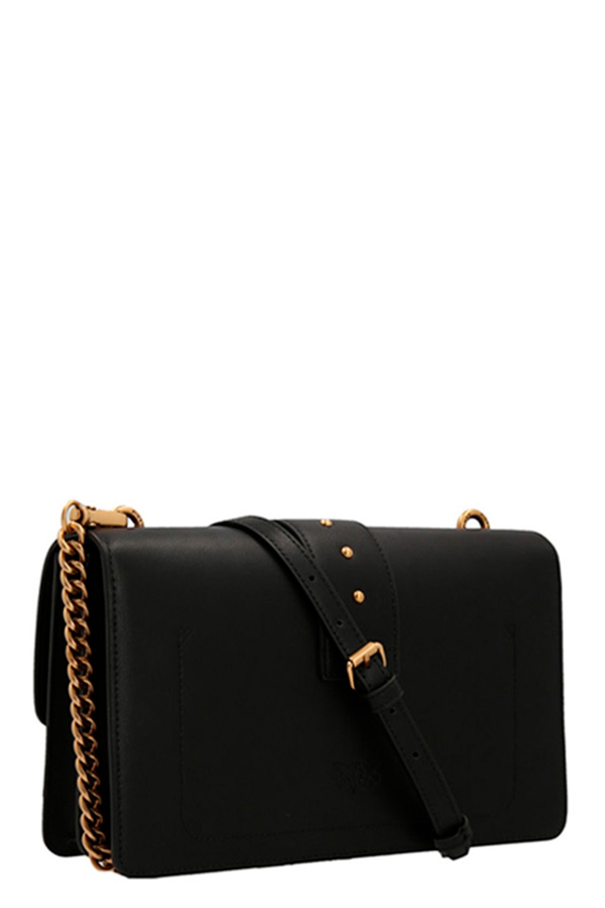 Love One' leather crossbody bag with magnetic closure with front metal logo application, leather shoulder strap and a removable chain.