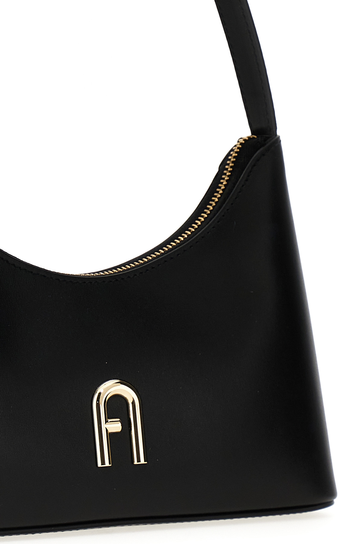 Diamante' leather mini shoulder bag with zip closure, and a front metal logo.
