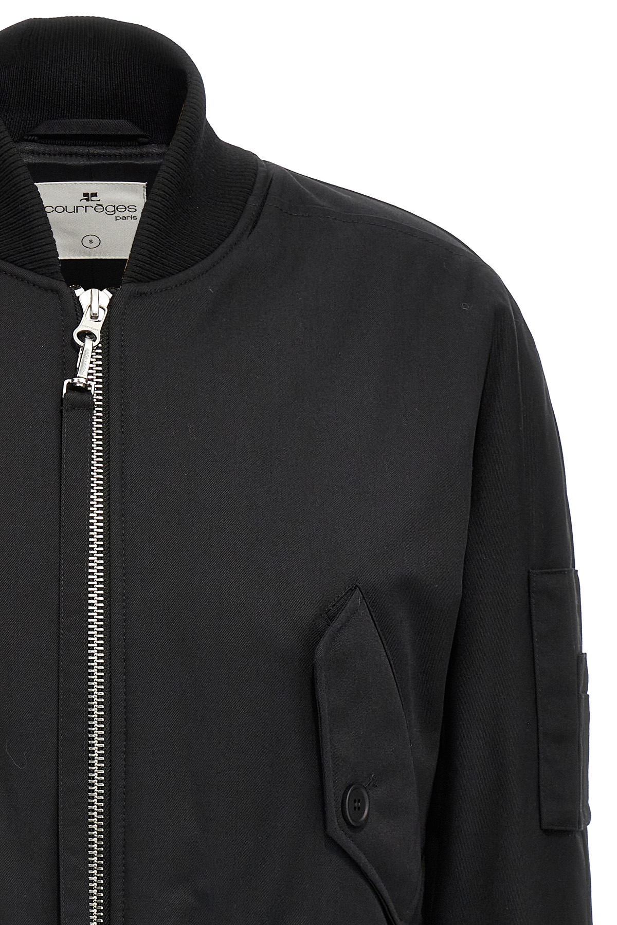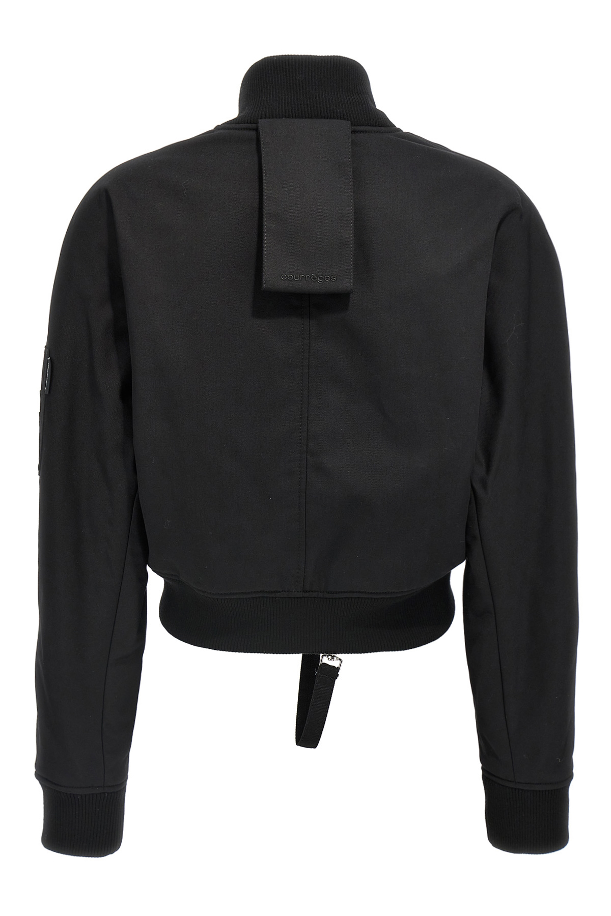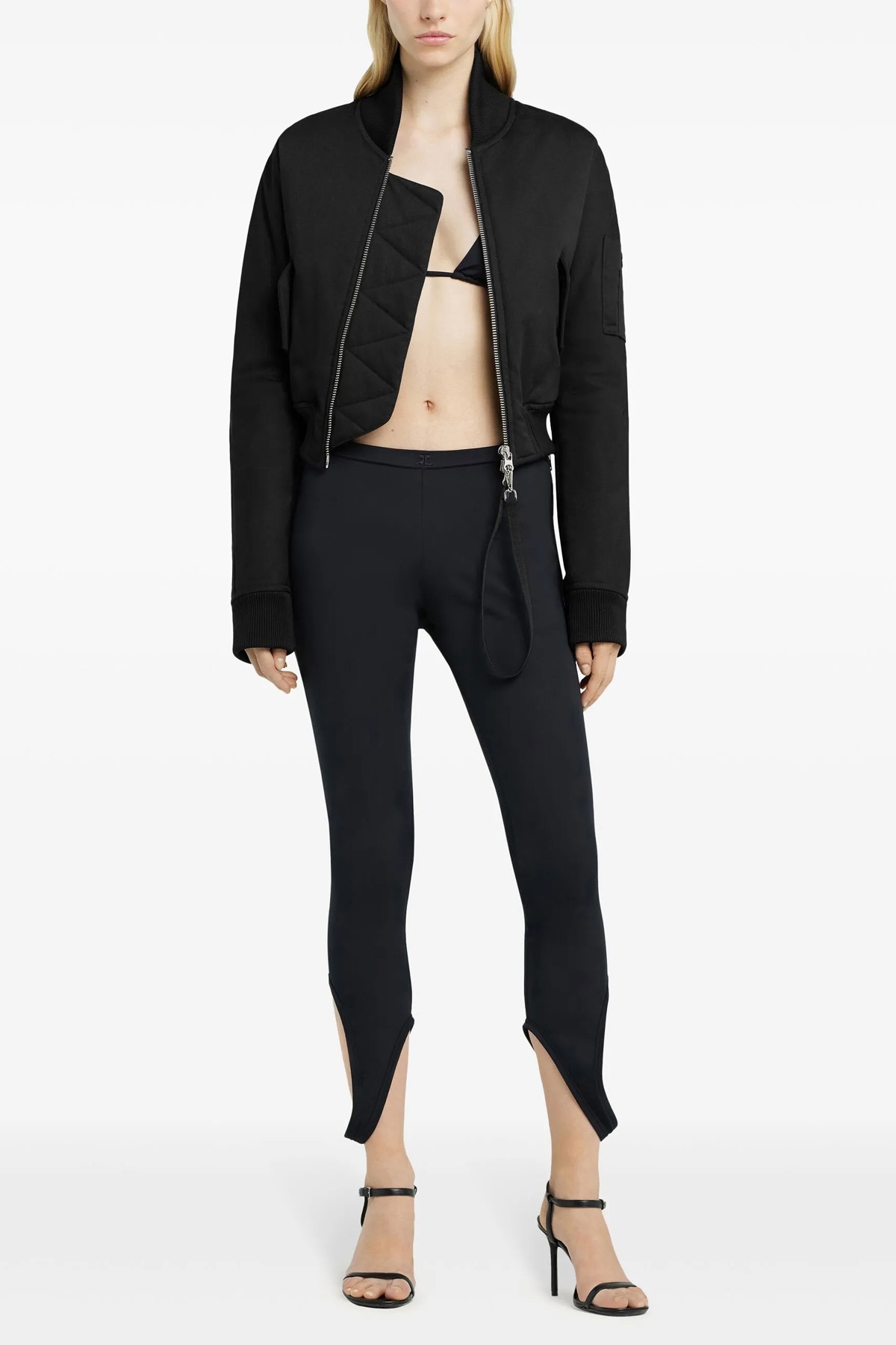 Scuba polycotton bomber jacket with ribbed knit details, crop pattern, zip closure, pockets.