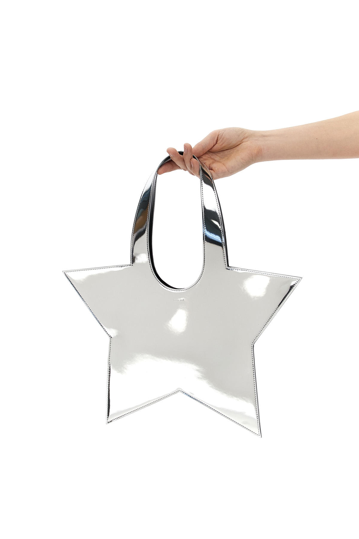 'Mini Star' shoulder bag in mirrored fabric, star-shaped pattern, front embossed logo, double fixed handle.